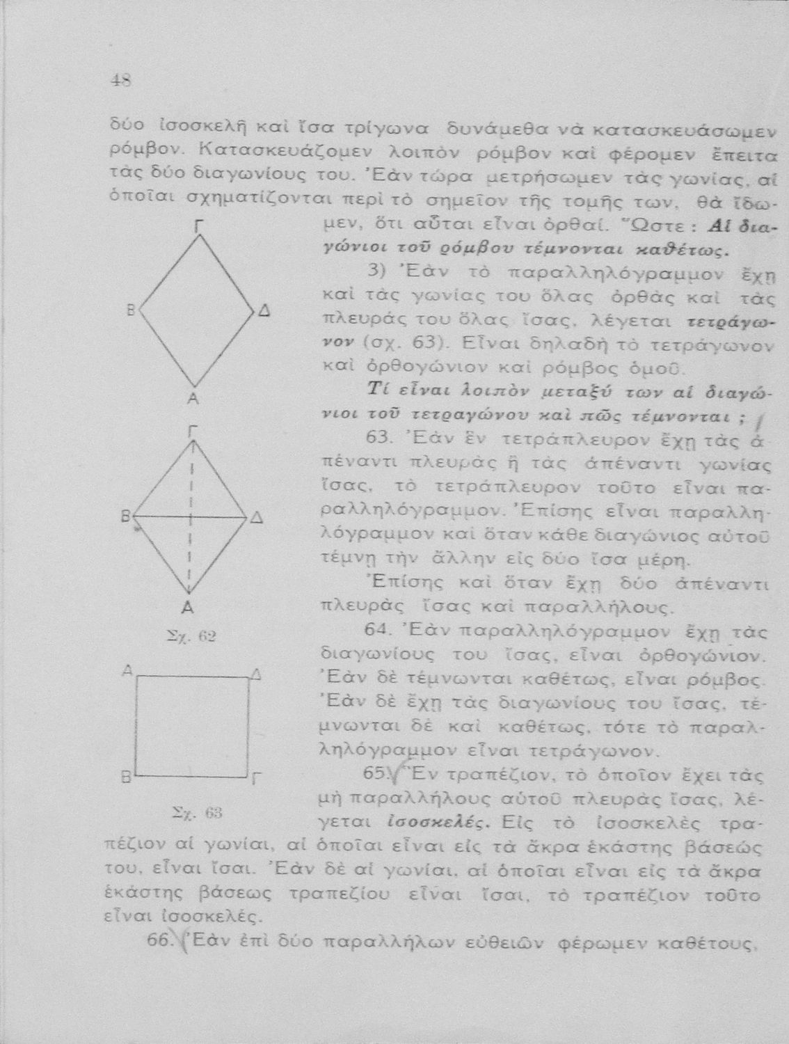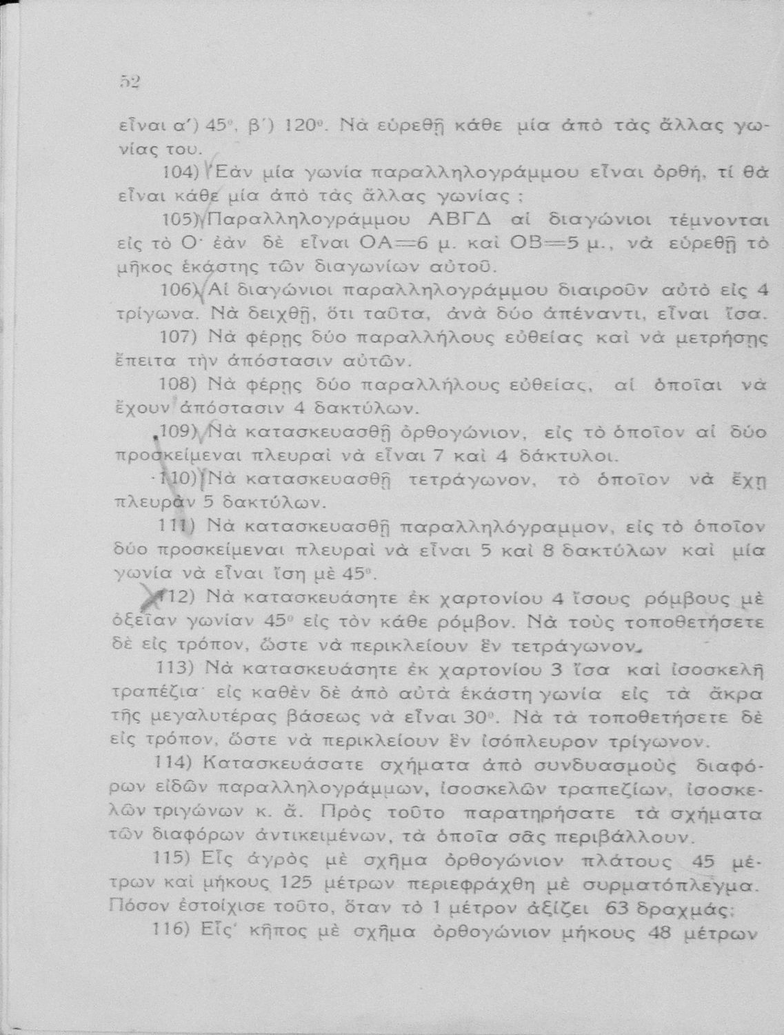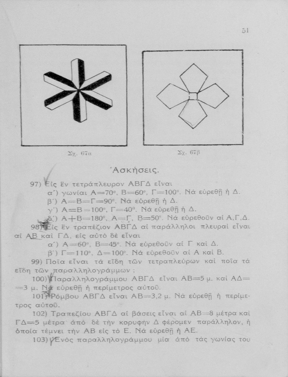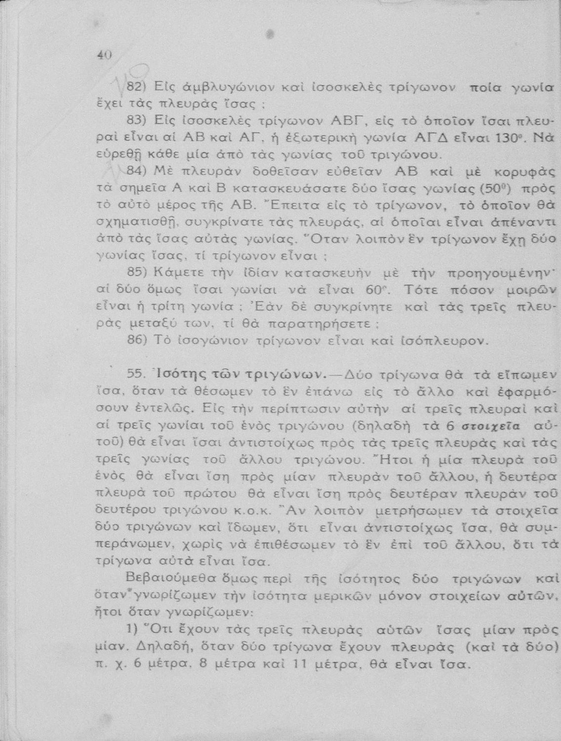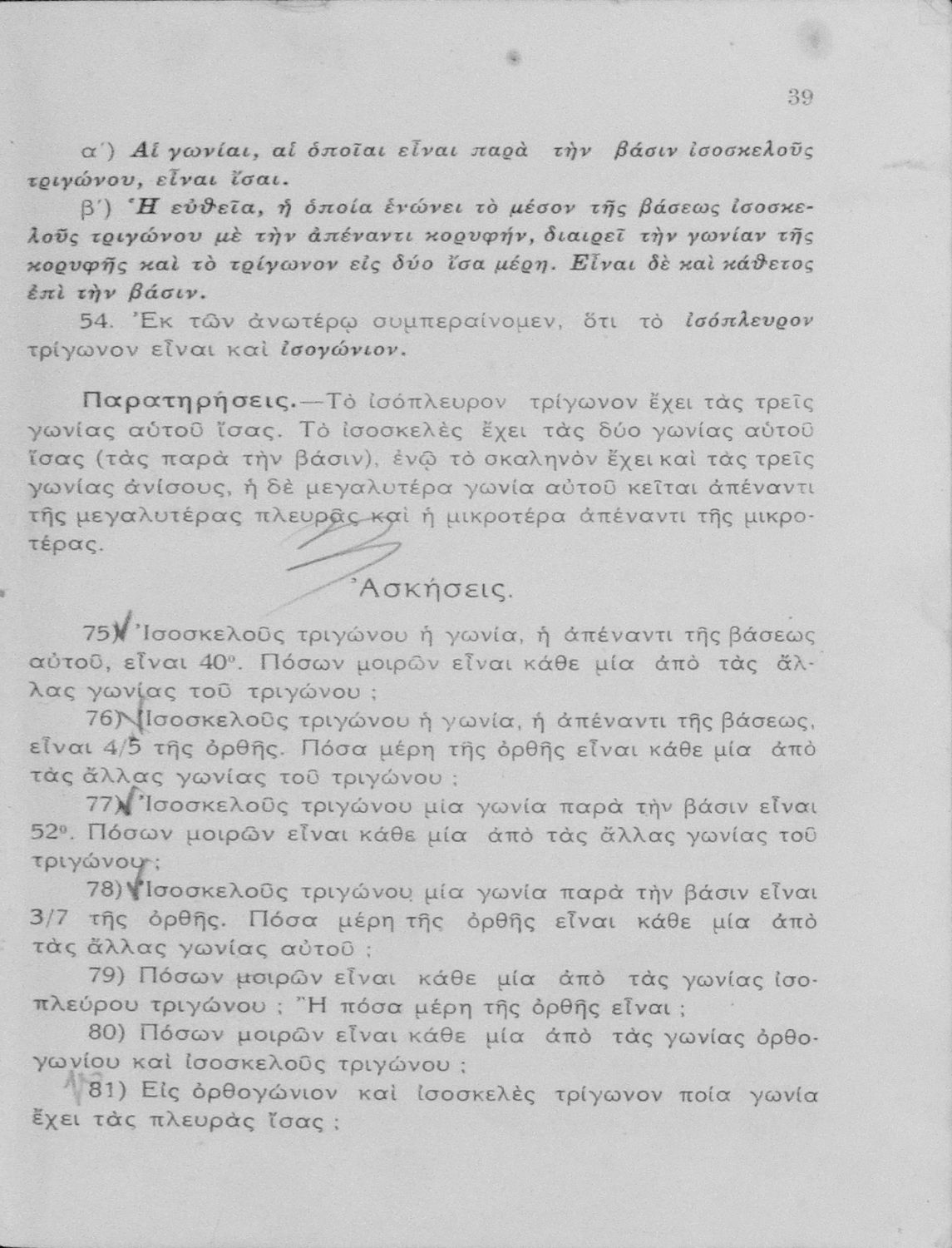 Σχολικό εγχειρίδιο Γεωμετρίας για τα Γυμνάσια και Αστικά Σχολεία που περιλαμβάνει θεωρία και ασκήσεις και είναι χωρισμένο σε Επιπεδομετρία και Στερεομετρία.