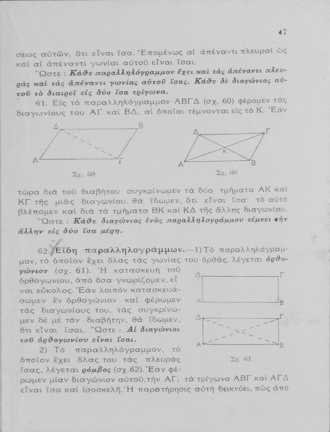 Παρουσίαση περιεχομένου: Σχολικό εγχειρίδιο Γεωμετρίας Γυμνασίων και Αστικών Σχολείων χωρισμένο σε Επιπεδομετρία και Στερεομετρία. Περιλαμβάνει και στοιχεία Χωρομετρίας.
