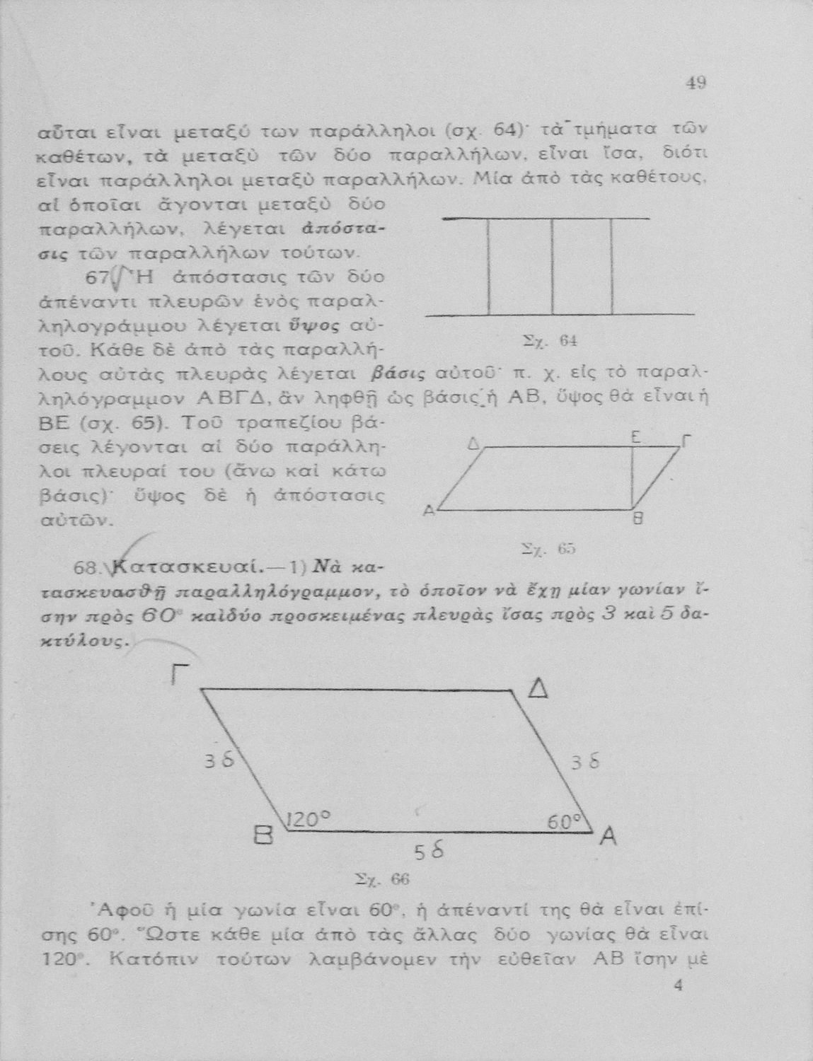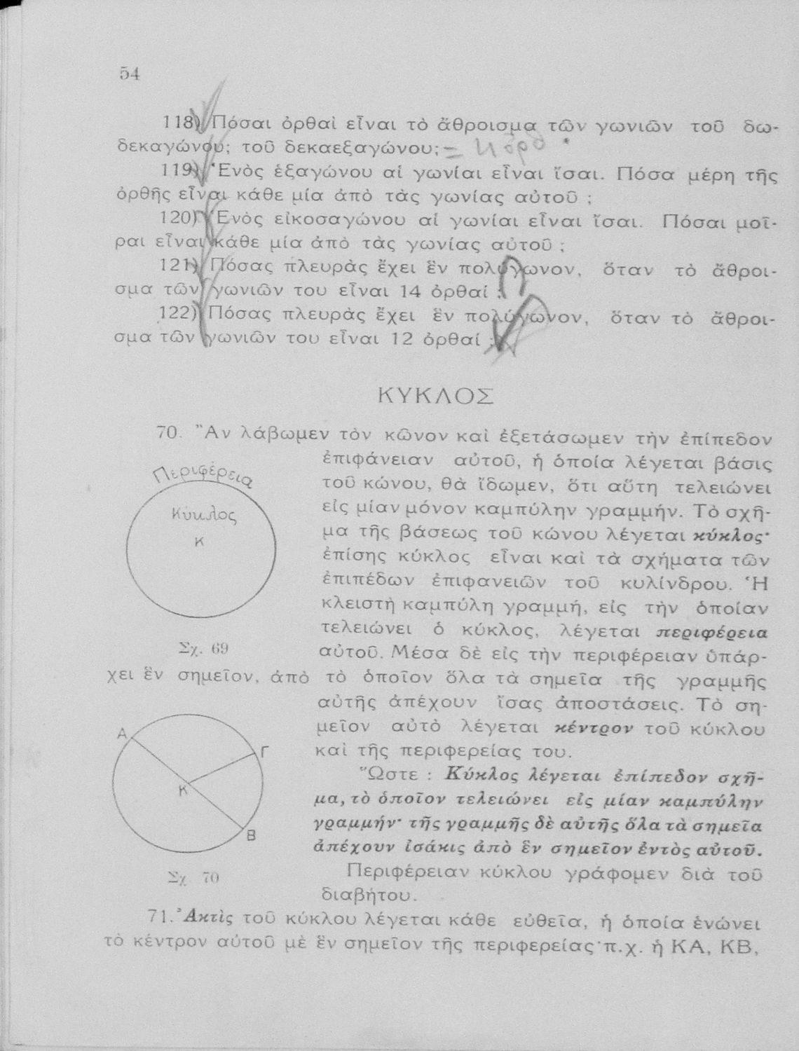 Σχολικό εγχειρίδιο Γεωμετρίας Γυμνασίων και Αστικών Σχολείων χωρισμένο σε Επιπεδομετρία και Στερεομετρία. Περιλαμβάνει και στοιχεία Χωρομετρίας.