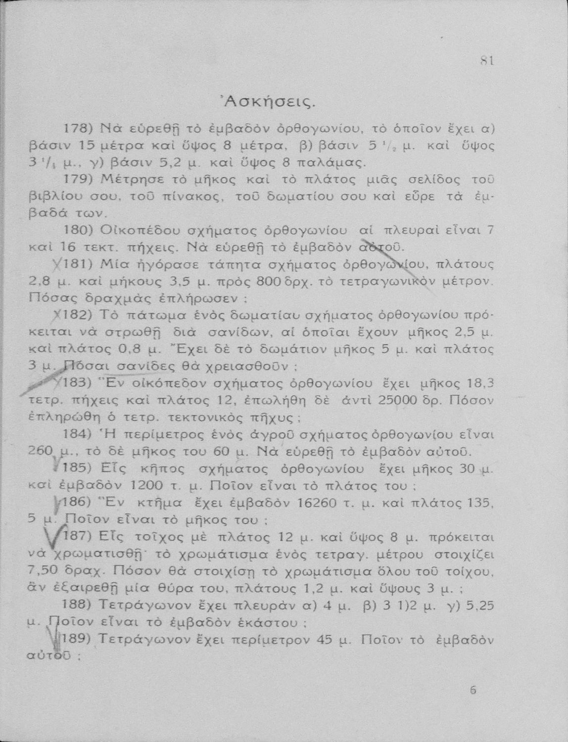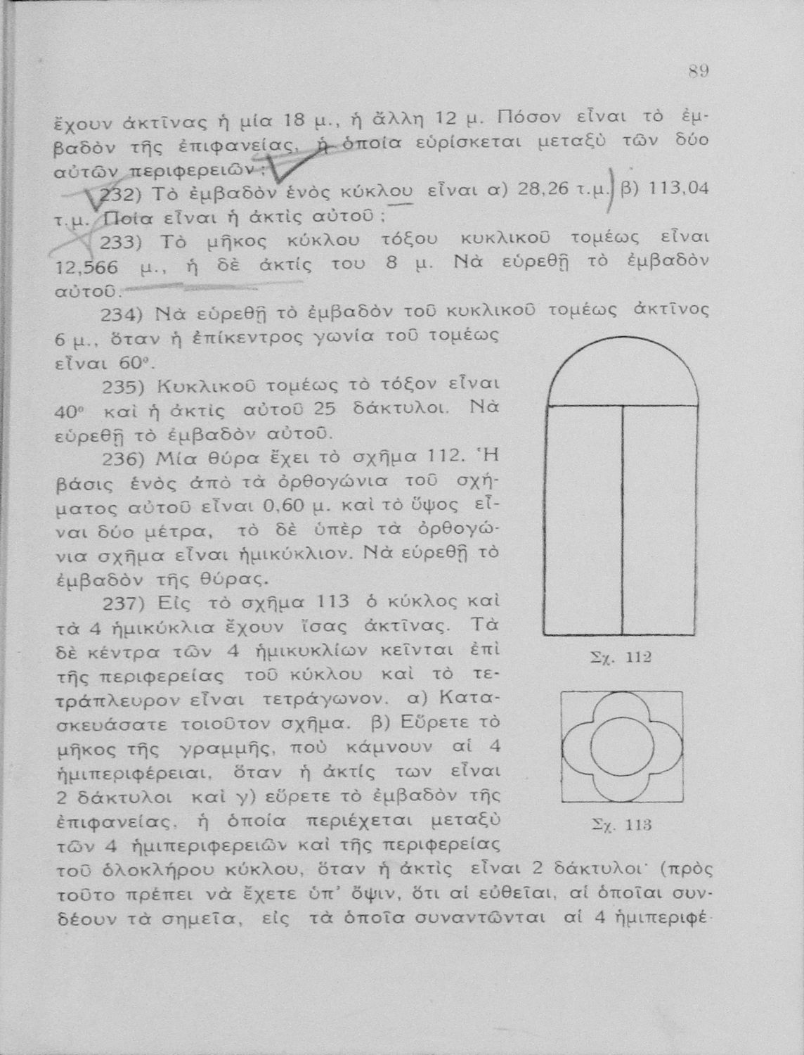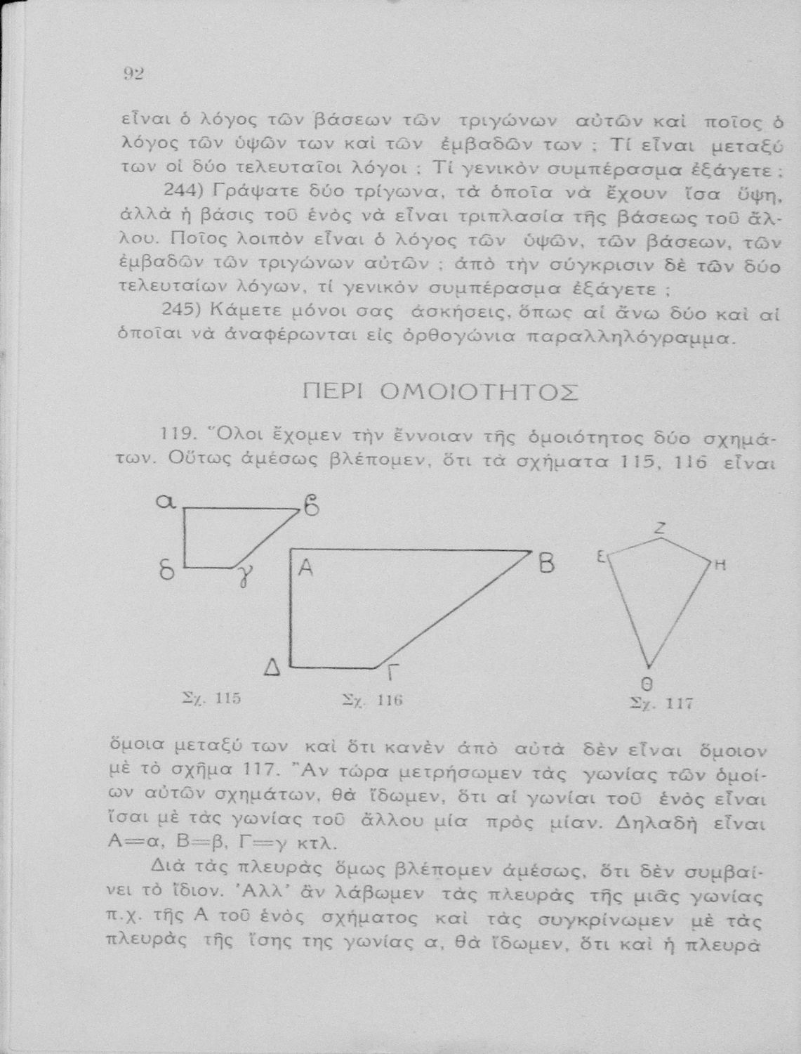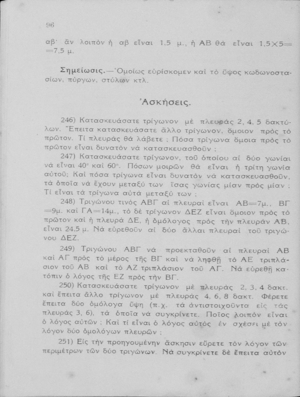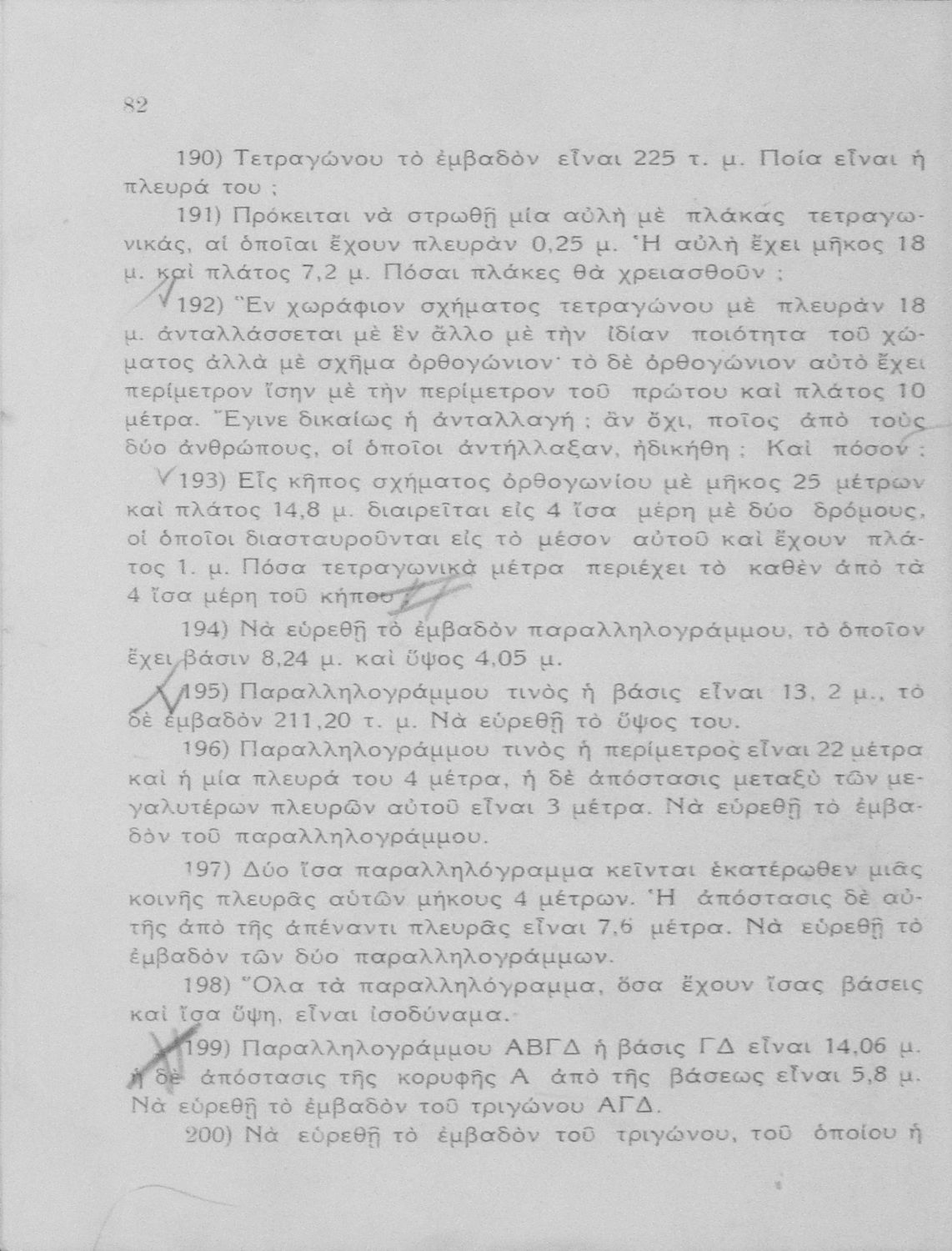 Σχολικό εγχειρίδιο Γεωμετρίας για τα Γυμνάσια και Αστικά Σχολεία που περιλαμβάνει θεωρία και ασκήσεις και είναι χωρισμένο σε Επιπεδομετρία και Στερεομετρία.