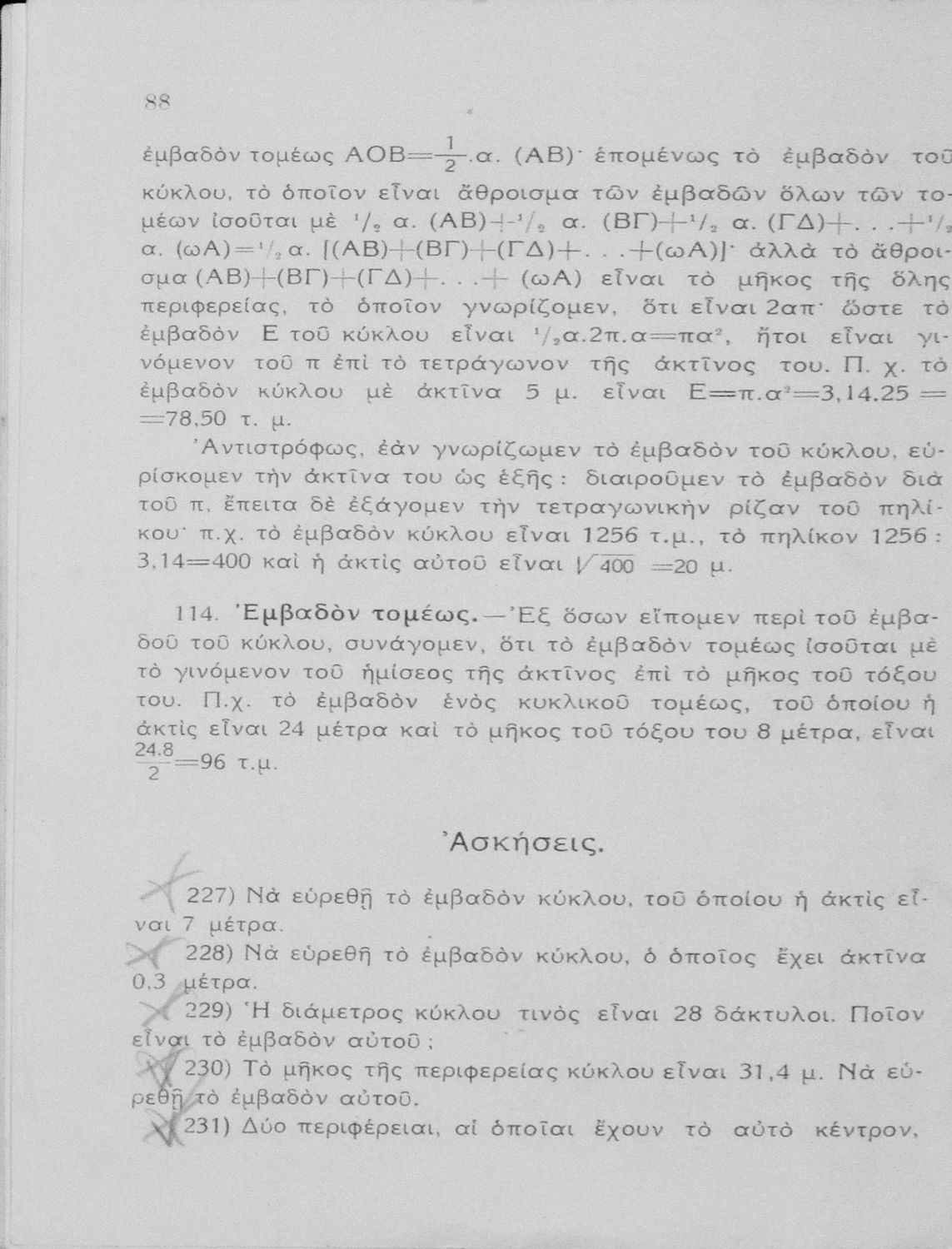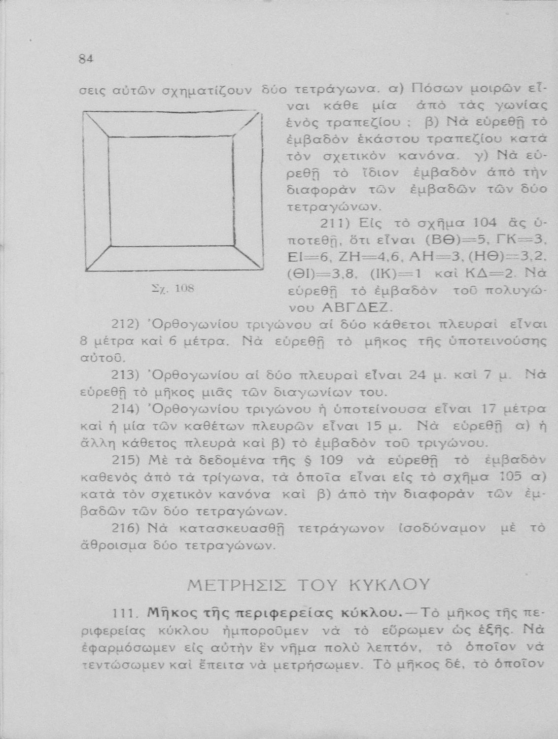 Σχολικό εγχειρίδιο Γεωμετρίας Γυμνασίων και Αστικών Σχολείων χωρισμένο σε Επιπεδομετρία και Στερεομετρία. Περιλαμβάνει και στοιχεία Χωρομετρίας.