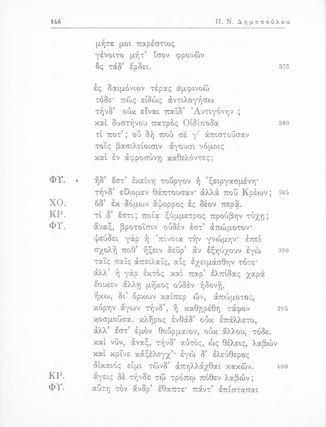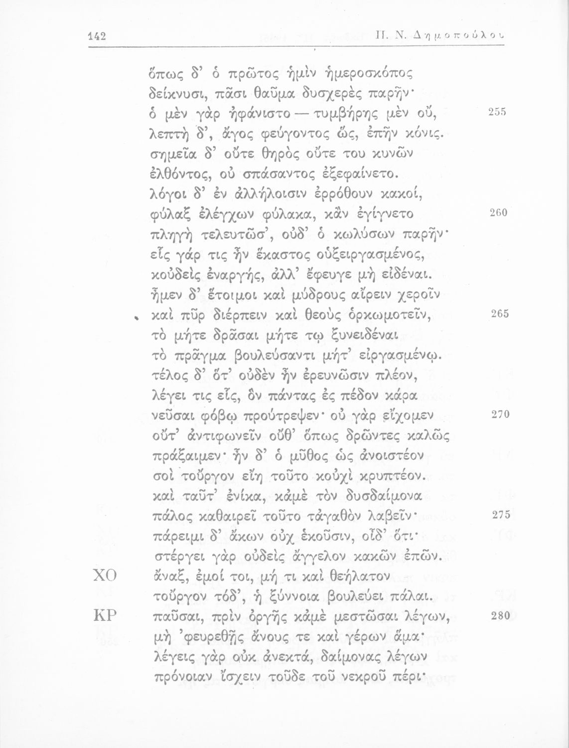 Σοφοκλής, Π. Ν Δημόπουλος (σχόλια)