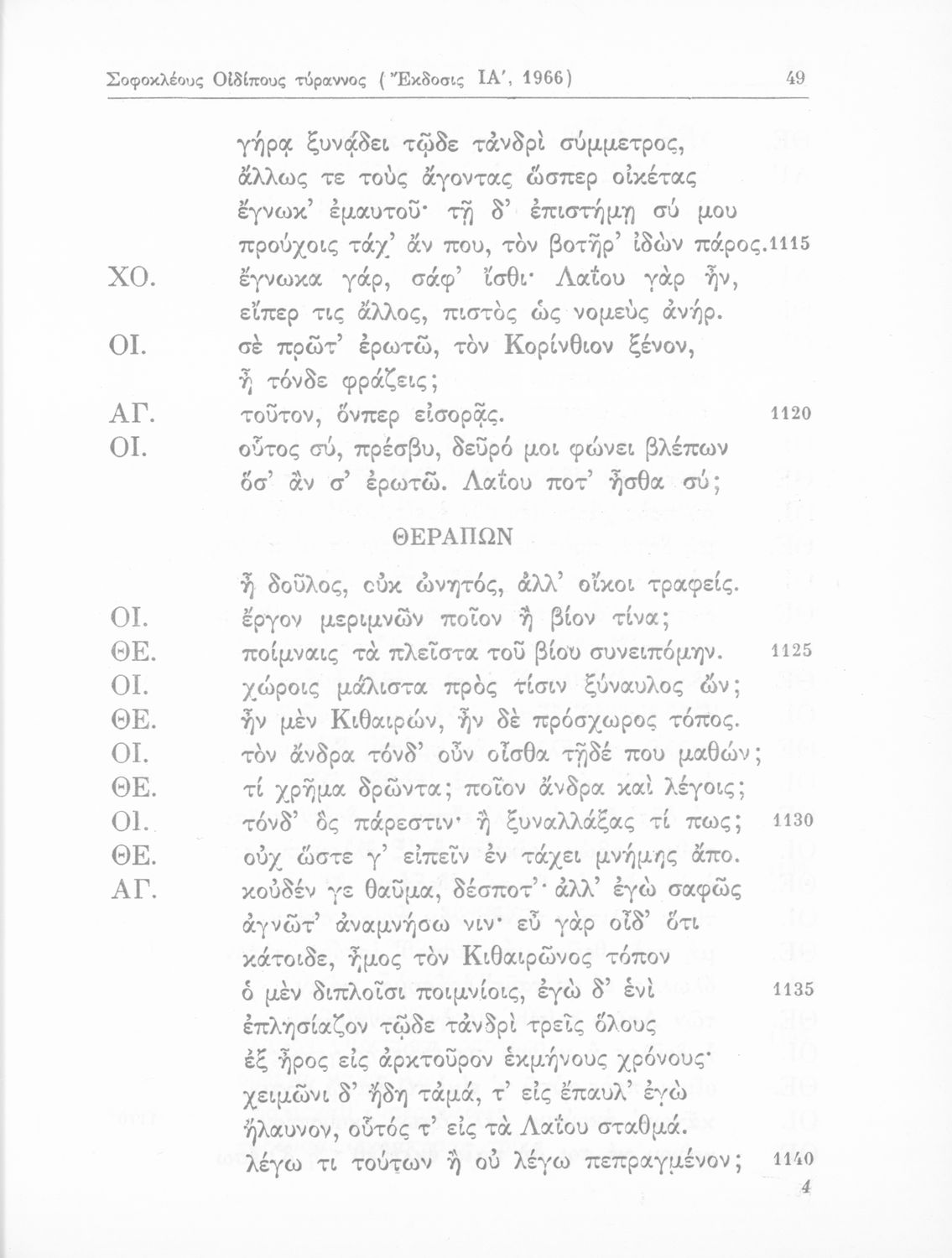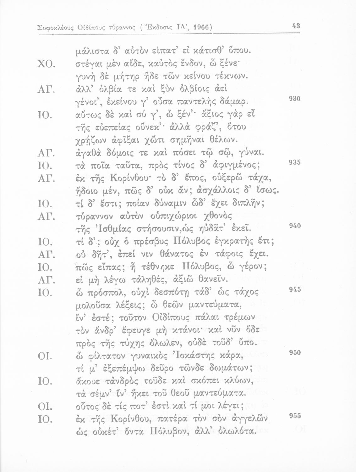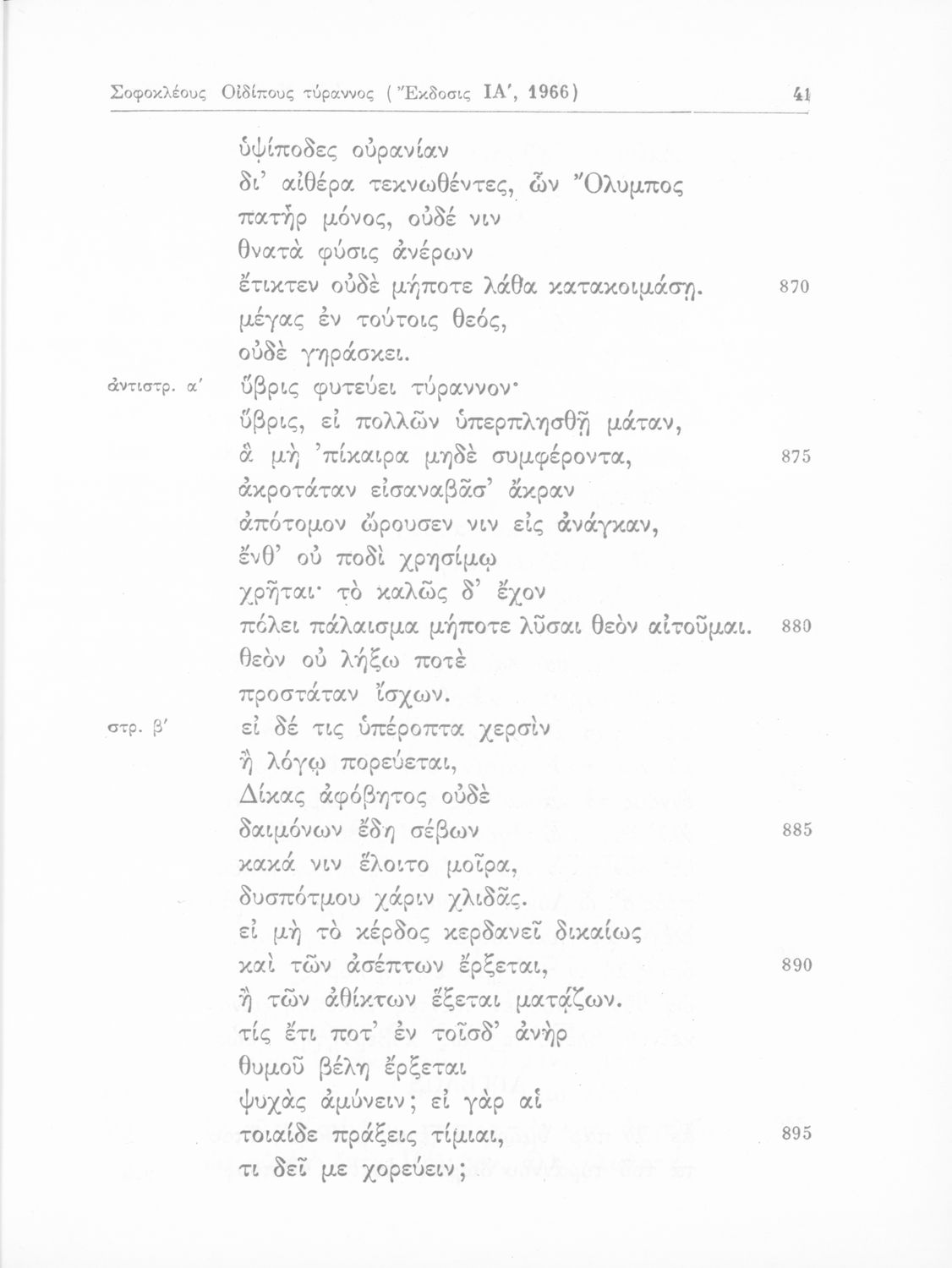 Σχολικό εγχειρίδιο του Γυμνασίου για το μάθημα των Αρχαίων Ελληνικών που περιέχει την τραγωδία του Σοφοκλή Οιδίπους Τύραννος, ερμηνευτικά και πραγματολογικά σχόλια και λεξιλογικές παρατηρήσεις.