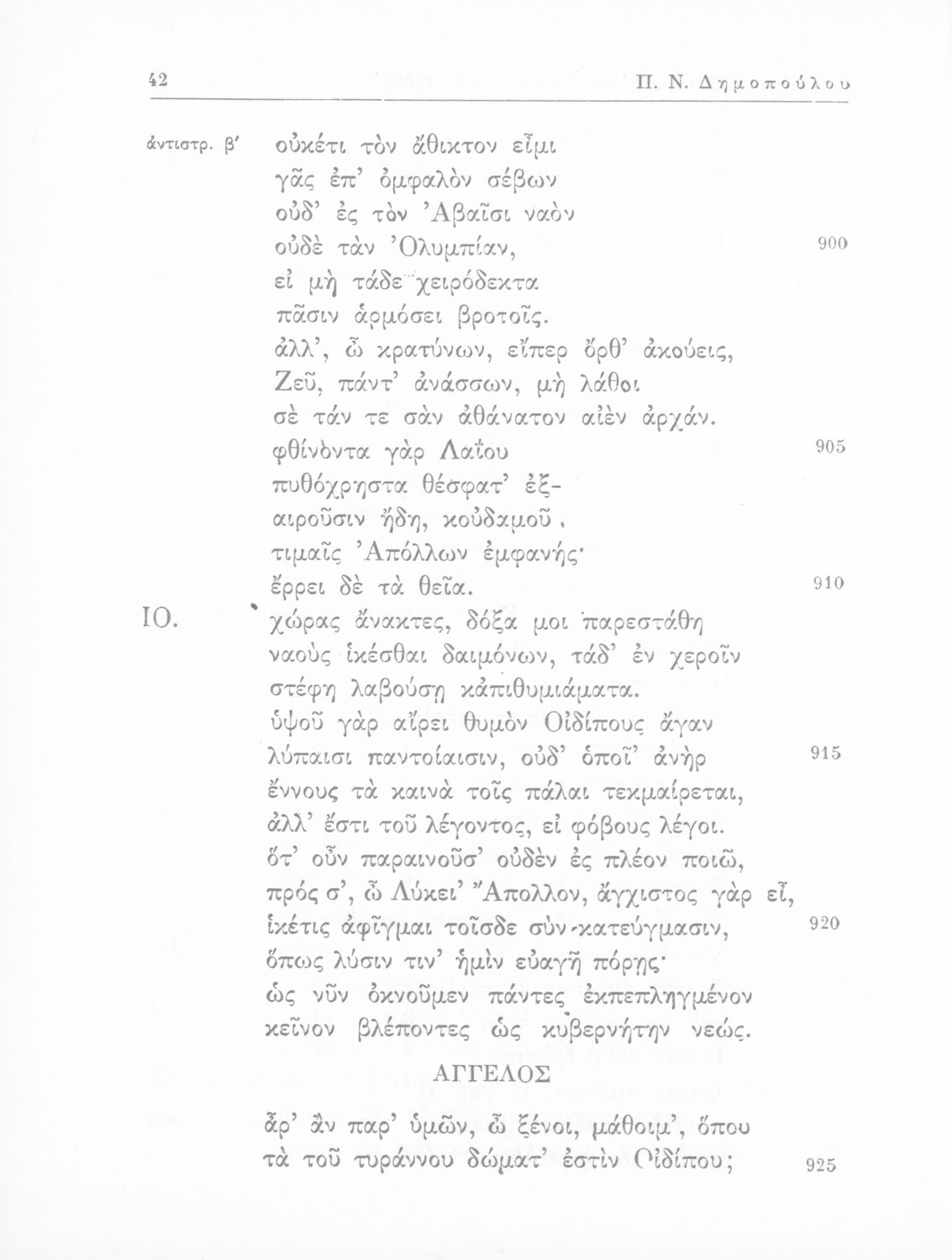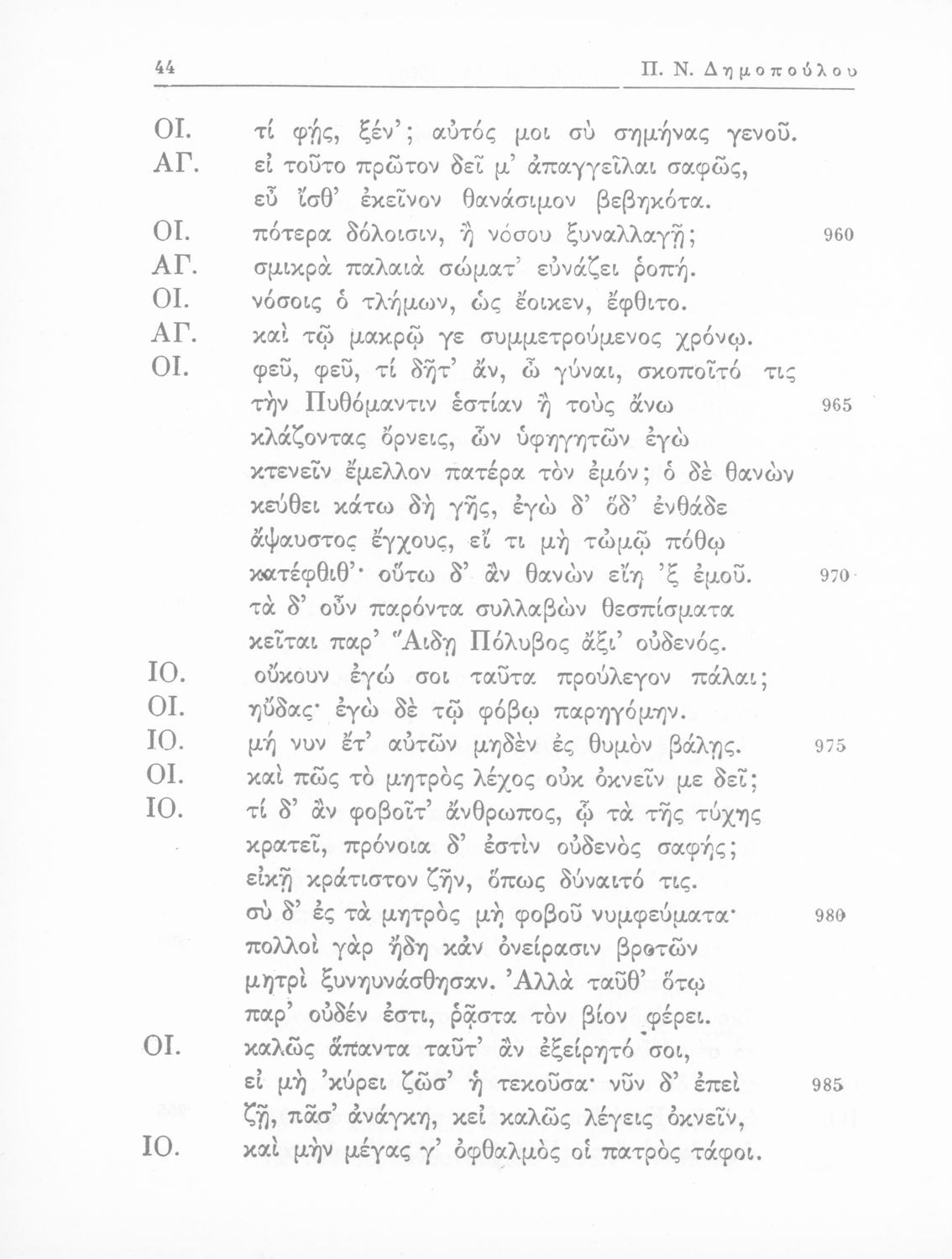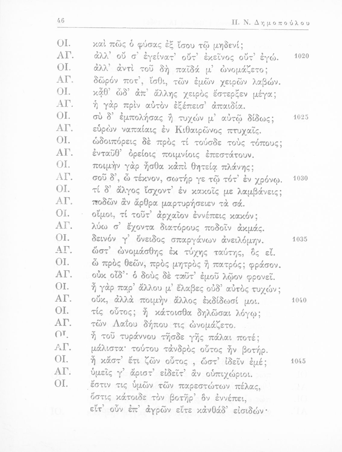 Σοφοκλής, Π. Ν. Δημόπουλος (σχόλια)