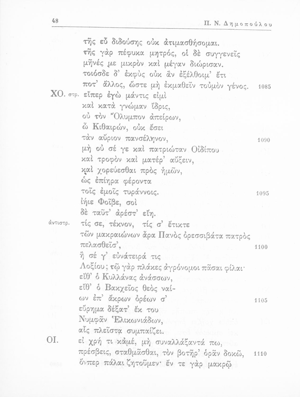 Σοφοκλής, Π. Ν Δημόπουλος (σχόλια)