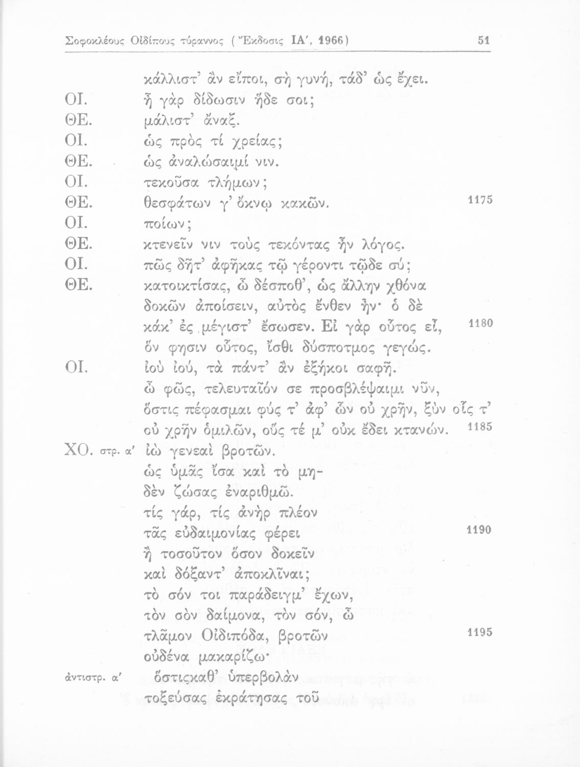 Σχολικό εγχειρίδιο Αρχαίων Ελληνικών που περιλαμβάνει τις τραγωδίες του Σοφοκλή Οιδίπους Τύραννος και Αντιγόνη, εισαγωγή και ερμηνευτικά σχόλια.