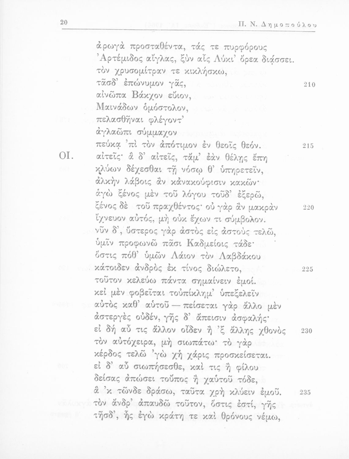 Σοφοκλής, Π. Ν Δημόπουλος (σχόλια)
