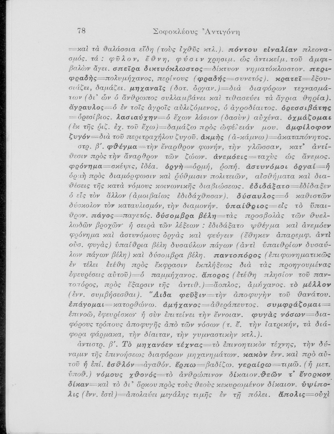 Σχολικό εγχειρίδιο Αρχαίων Ελληνικών της ΣΤ΄ Γυμνασίου. Το βιβλίο παρουσιάζει το έργο του Σοφοκλή, Αντιγόνη. Στο δεύτερο μέρος περιλαμβάνει λεξιλογικά και ερμηνευτικά σχόλια.