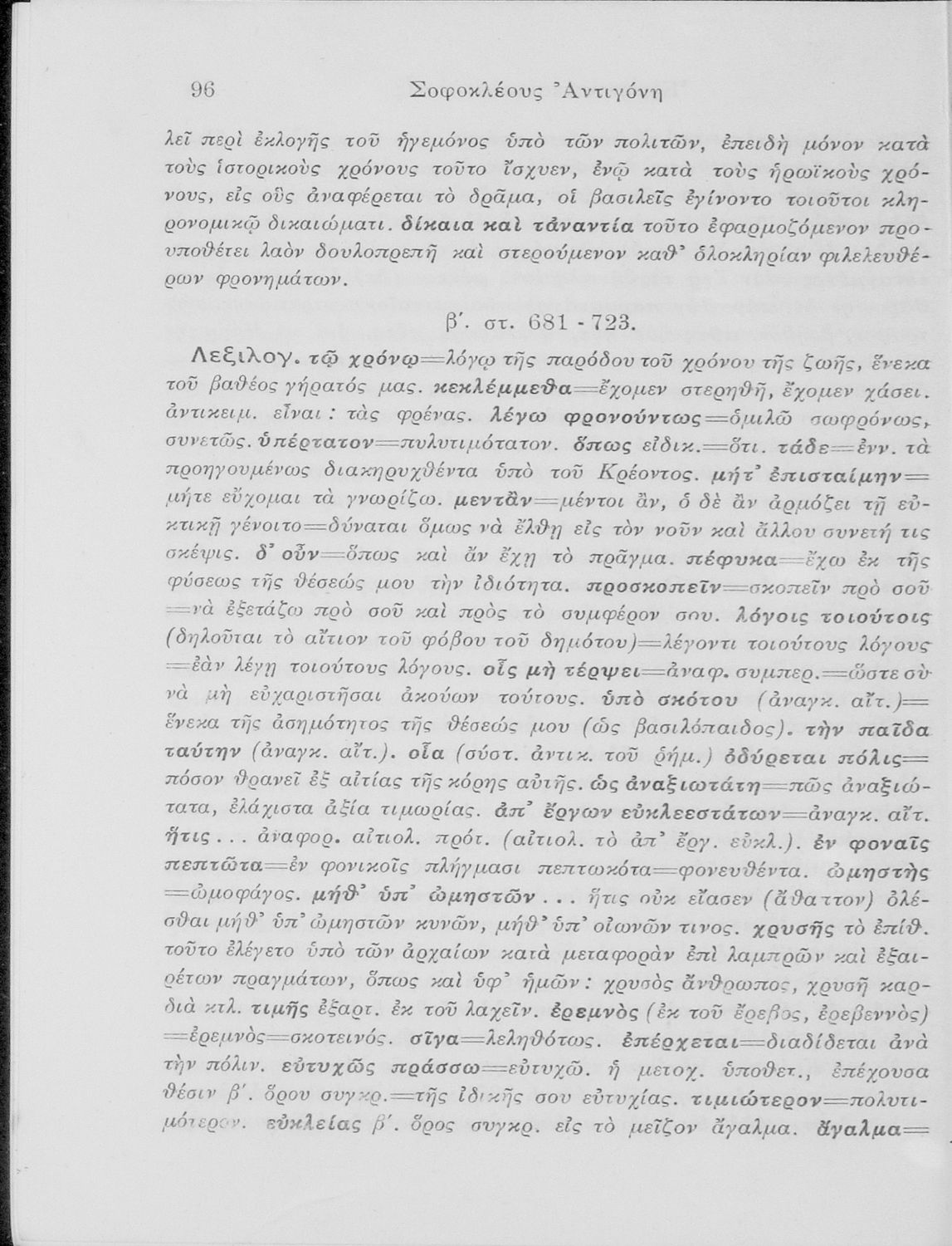 Σχολικό εγχειρίδιο Αρχαίων Ελληνικών της ΣΤ΄ Γυμνασίου. Το βιβλίο παρουσιάζει το έργο του Σοφοκλή, Αντιγόνη. Στο δεύτερο μέρος περιλαμβάνει λεξιλογικά και ερμηνευτικά σχόλια.