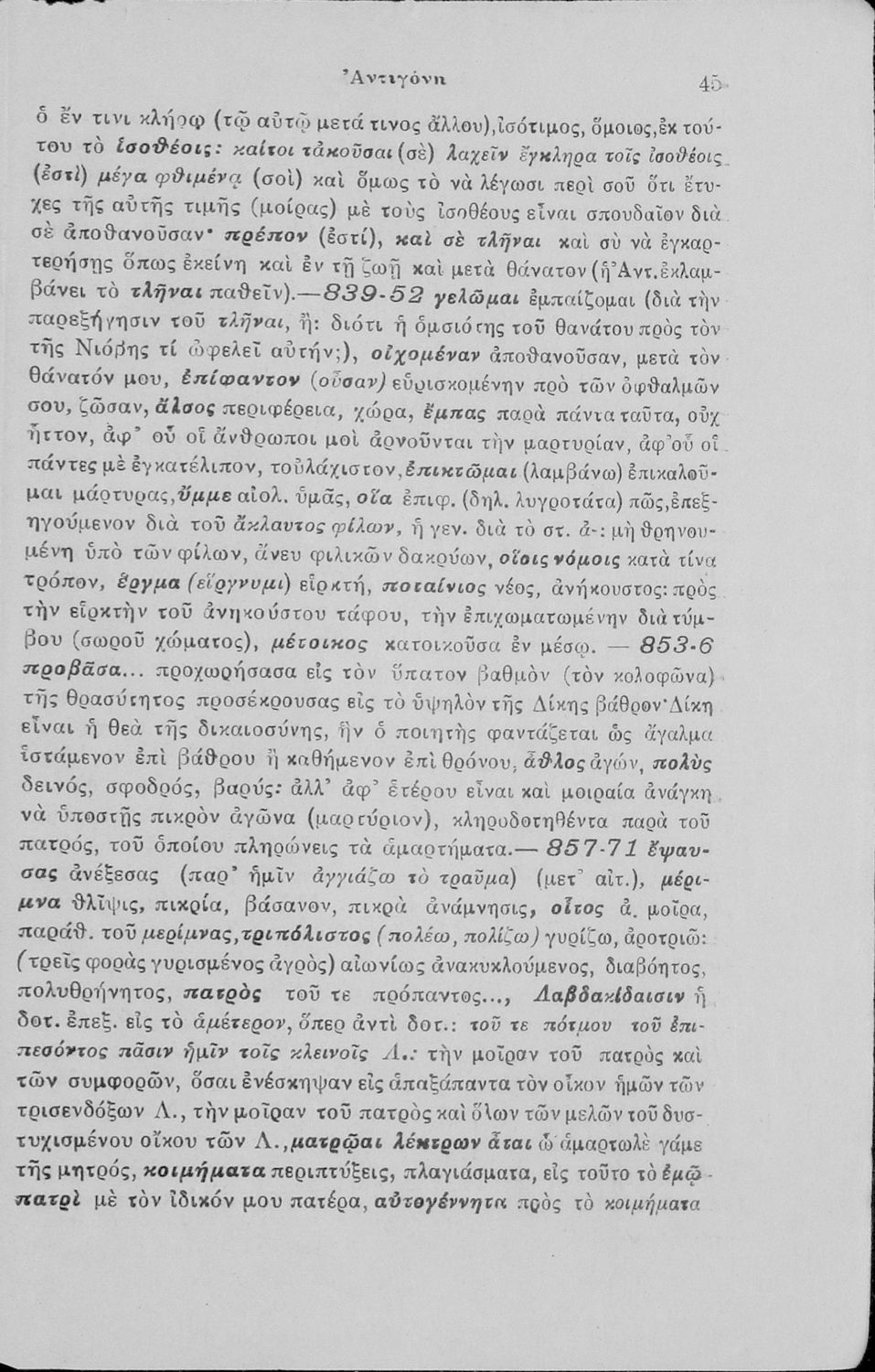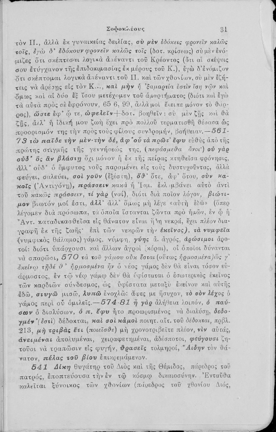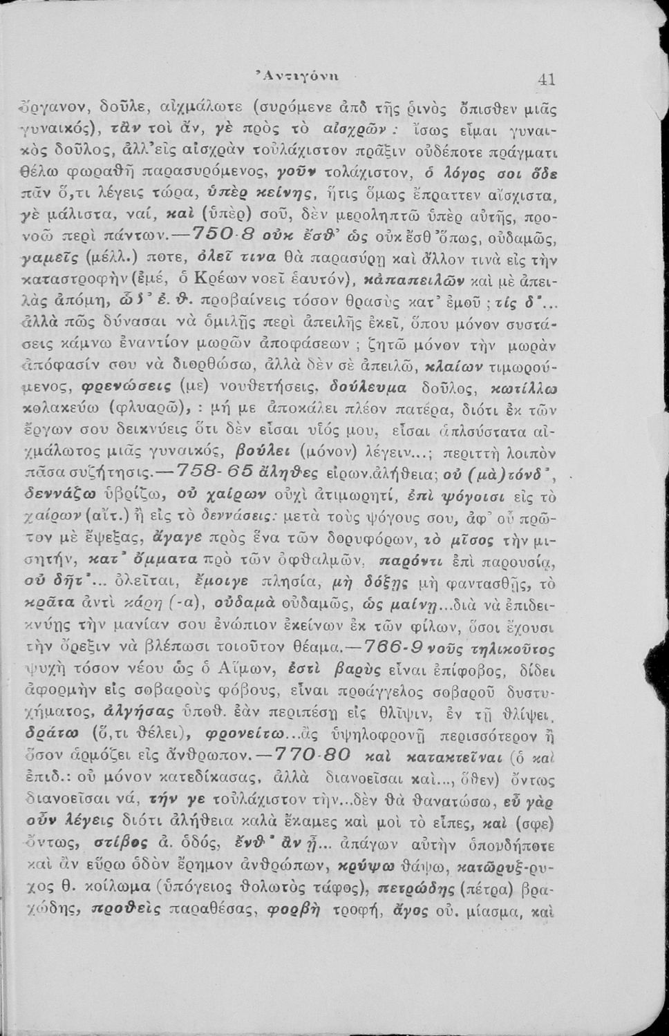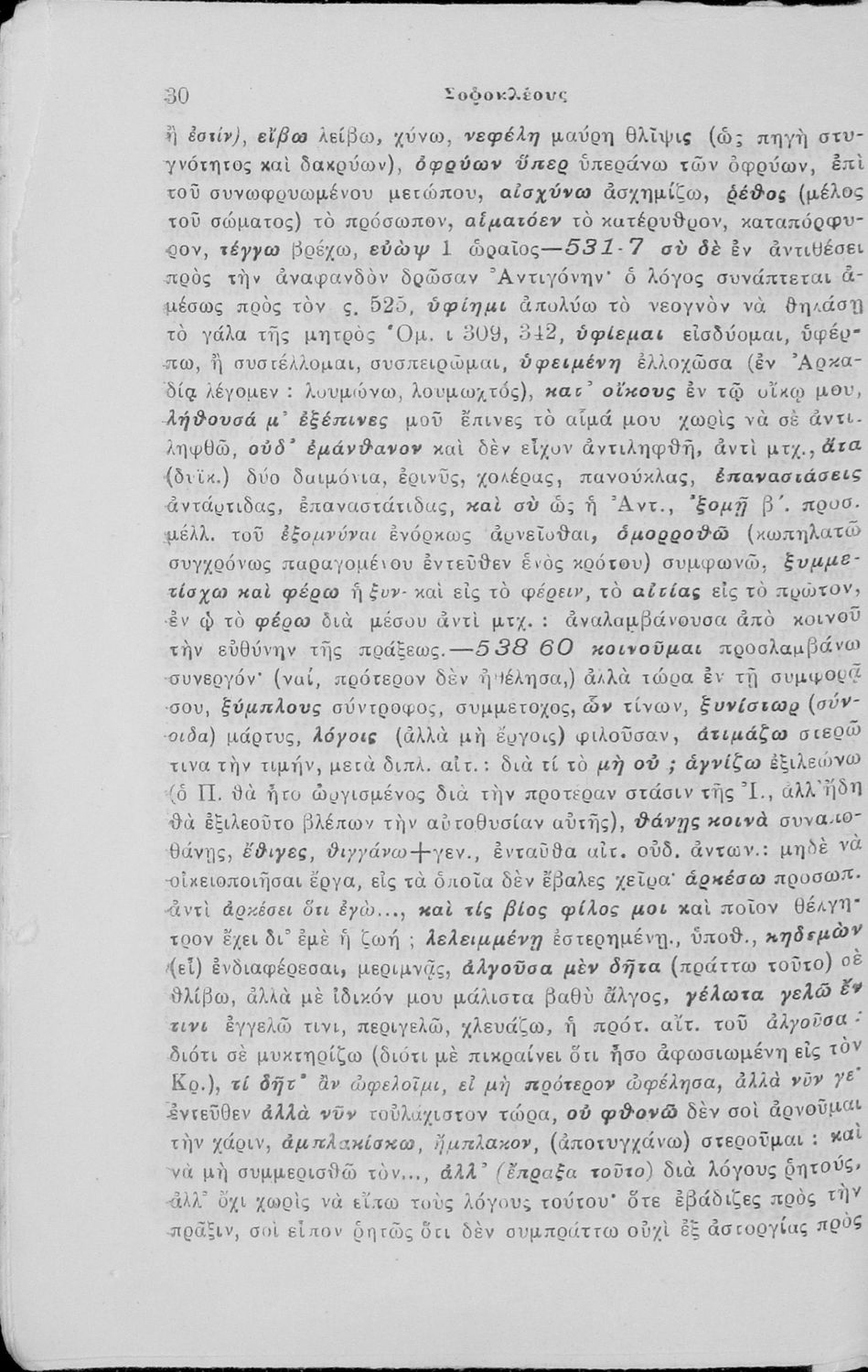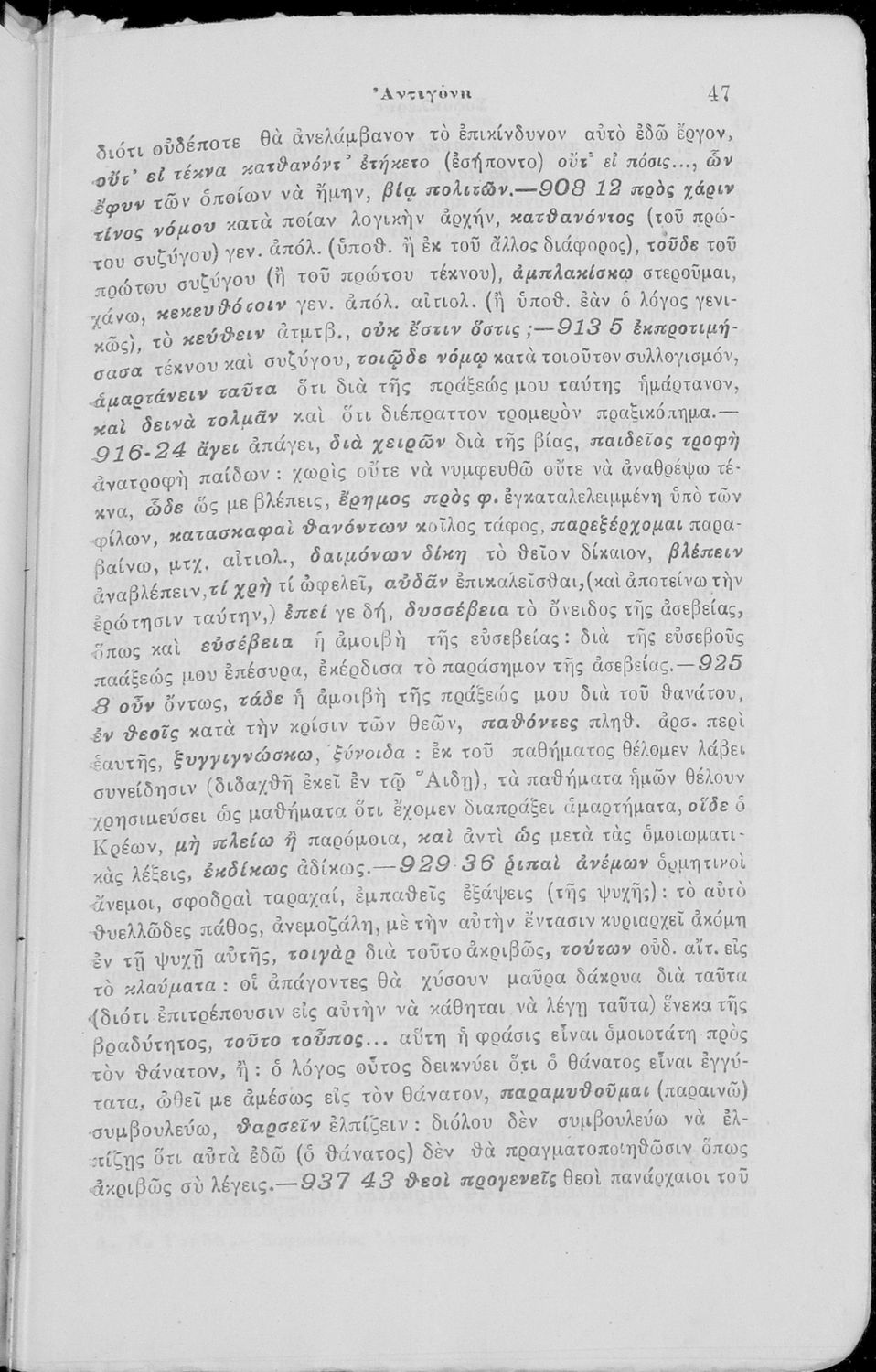 Μαθητικό βοήθημα Αρχαίων Ελληνικών που περιλαμβάνει την τραγωδία του Σοφοκλή Αντιγόνη με εισαγωγή, ερμηνευτικές και πραγματολογικές σημειώσεις. Ο συγγραφέας ήταν πρώτος Γυμνασιάρχης του Πρότυπου Κλασσικού Γυμνασίου και πρώτος Διευθυντής στη Βαρβάκειο Πρότυπο Σχολή.