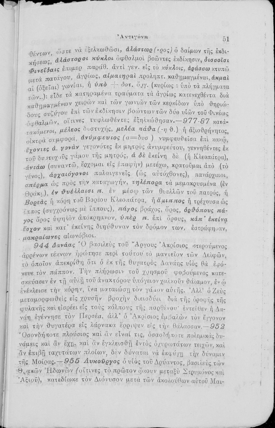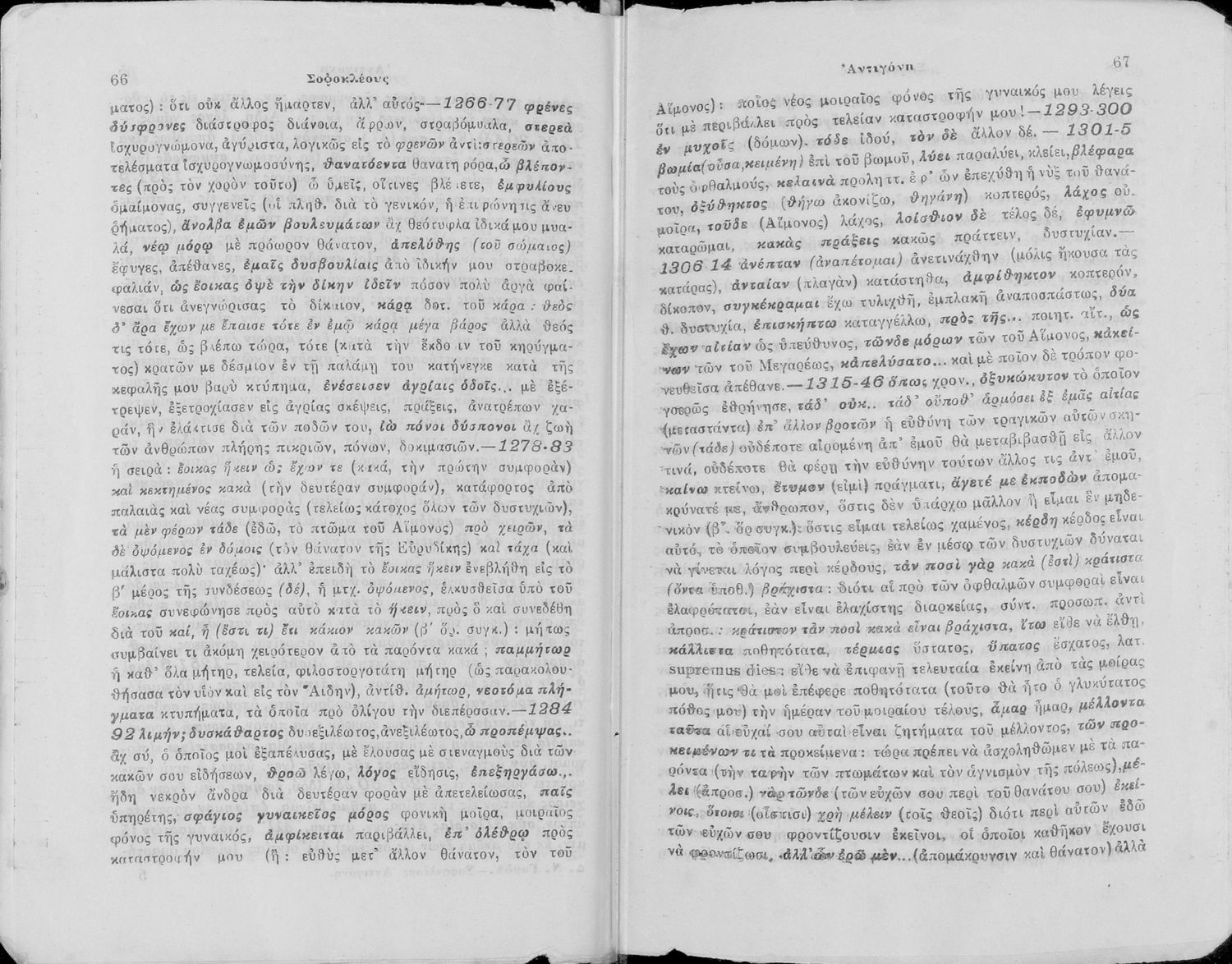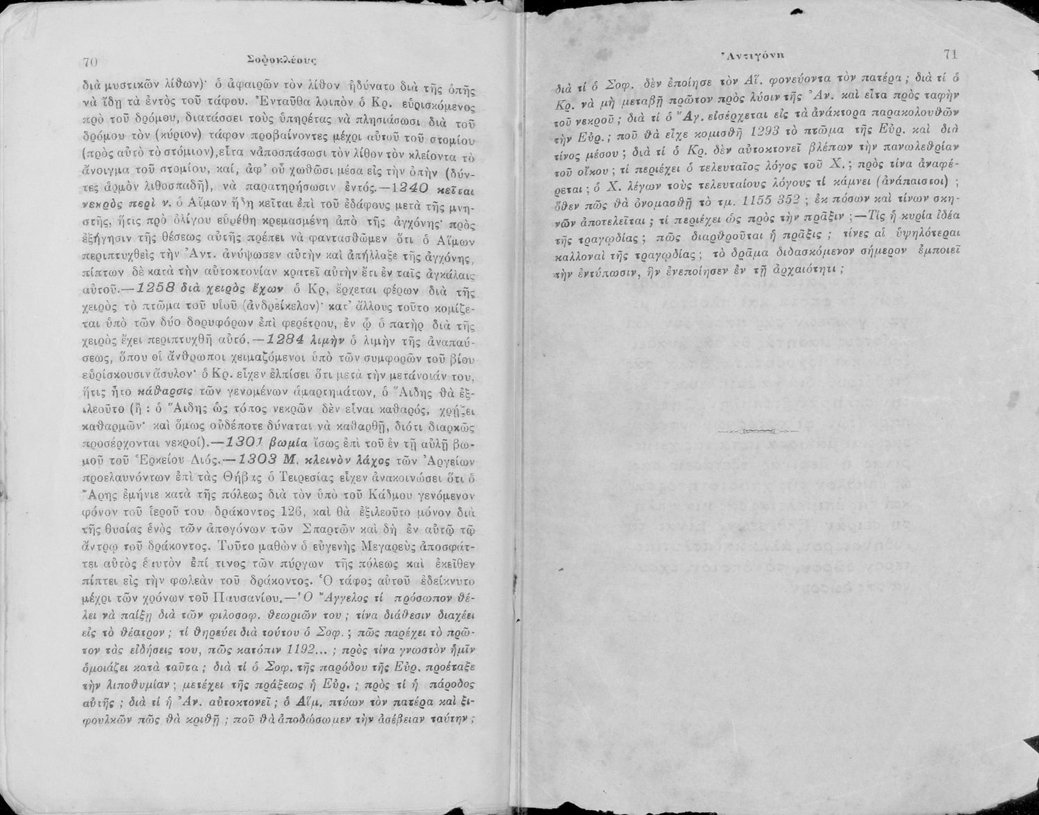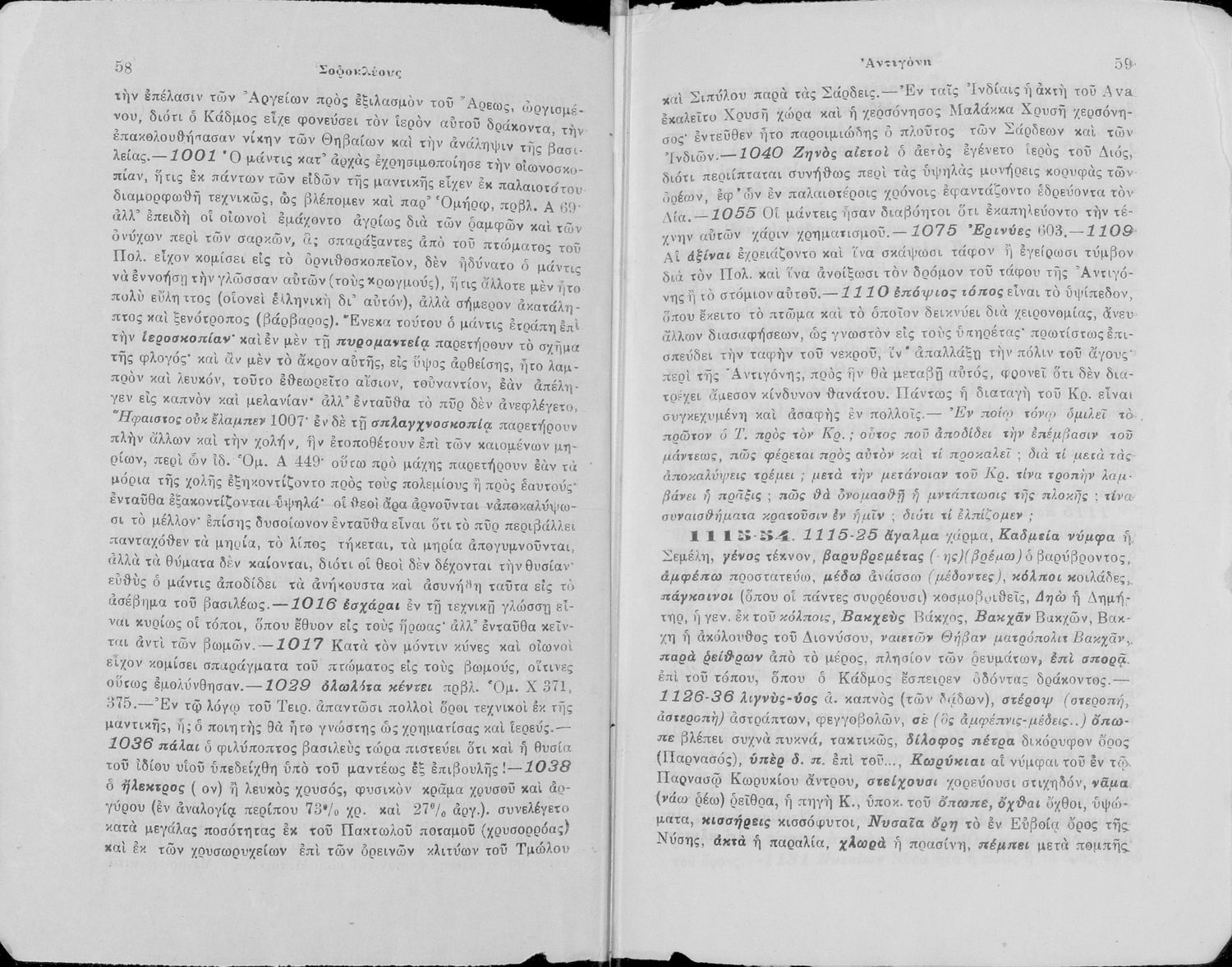 Παιδαγωγικό βοήθημα Αρχαίων Ελληνικών. Περιέχει τη τραγωδία του Σοφοκλή, την Αντιγόνη με σχόλια από τον Μιστριώτη που υπήρξε τακτικός καθηγητής των ελληνικών γραμμάτων στο εθνικό Πανεπιστήμιο.