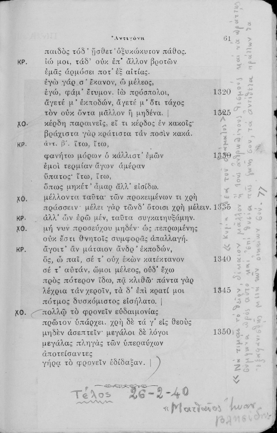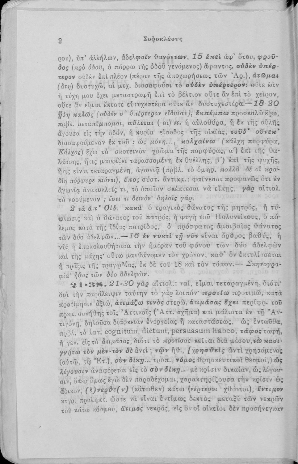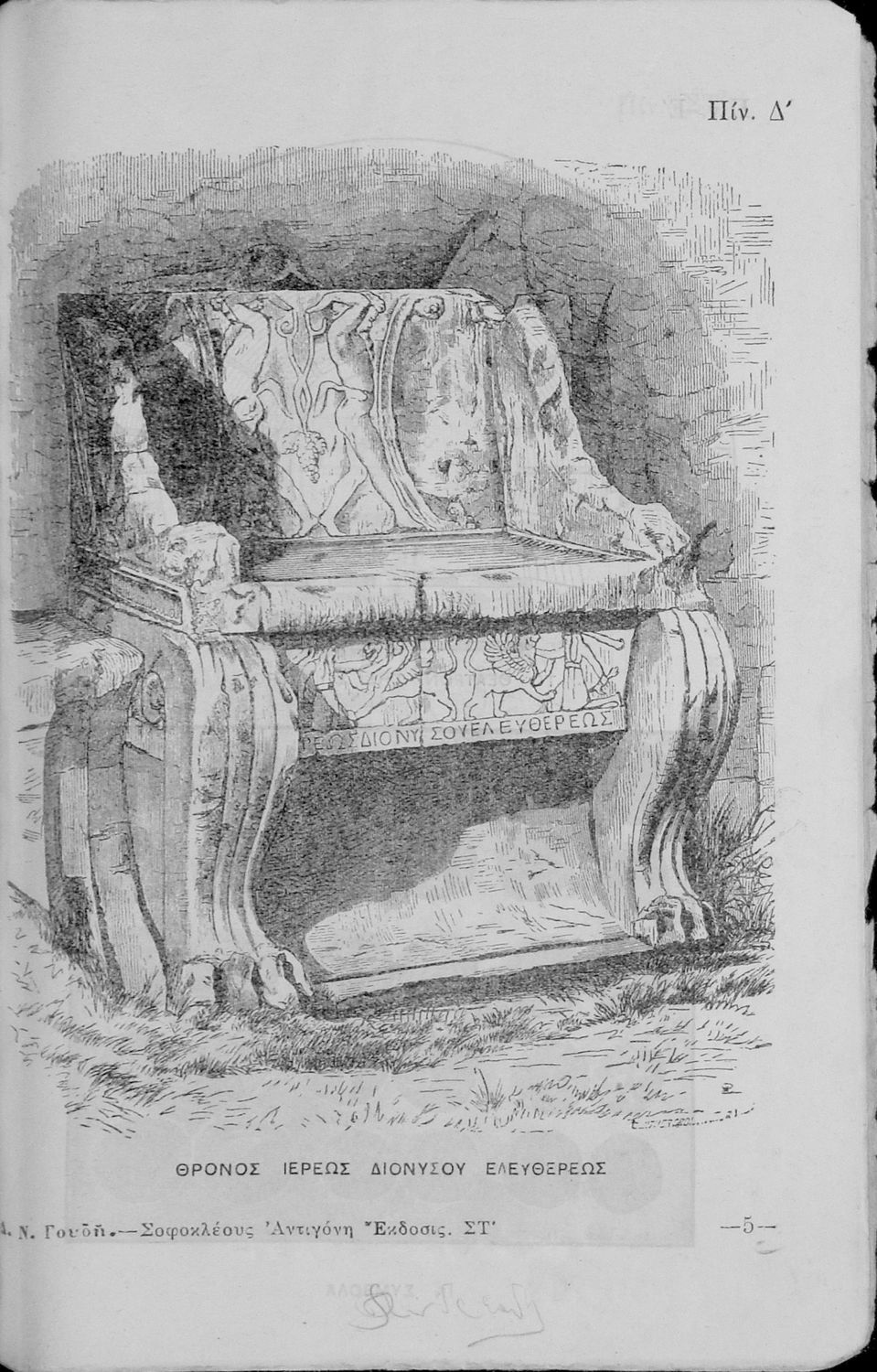 Μαθητικό βοήθημα Αρχαίων Ελληνικών που περιλαμβάνει την τραγωδία του Σοφοκλή Αντιγόνη με εισαγωγή, ερμηνευτικές και πραγματολογικές σημειώσεις. Ο συγγραφέας ήταν πρώτος Γυμνασιάρχης του Πρότυπου Κλασσικού Γυμνασίου και πρώτος Διευθυντής στη Βαρβάκειο Πρότυπο Σχολή.