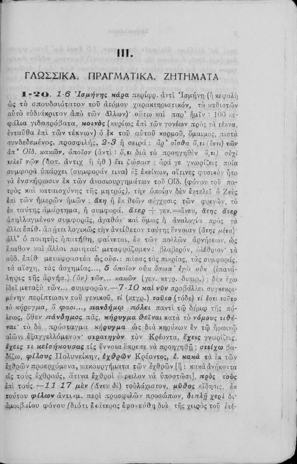 Βαθμίδα εκπαίδευσης: Δευτεροβάθμια Μάθημα: Αρχαία Ελληνικά Γλώσσα: Καθαρεύουσα Παρουσίαση περιεχομένου: Μαθητικό βοήθημα Αρχαίων Ελληνικών που περιλαμβάνει την τραγωδία του Σοφοκλή Αντιγόνη με εισαγωγή, ερμηνευτικές και πραγματολογικές σημειώσεις. Ο συγγραφέας ήταν πρώτος Γυμνασιάρχης του Πρότυπου Κλασσικού Γυμνασίου και πρώτος Διευθυντής στη Βαρβάκειο Πρότυπο Σχολή. |