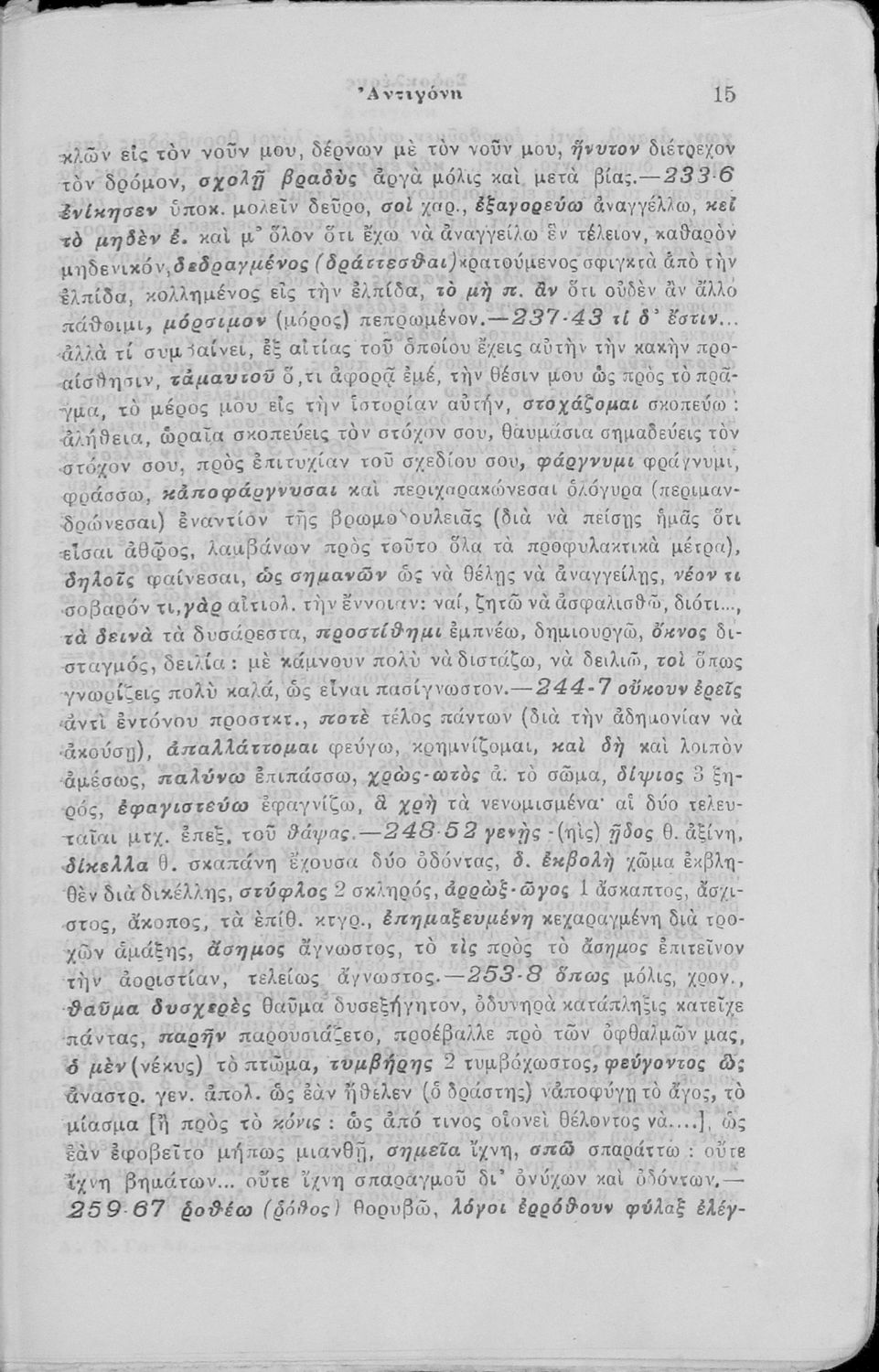 Παιδαγωγικό βοήθημα Αρχαίων Ελληνικών. Περιέχει τη τραγωδία του Σοφοκλή, την Αντιγόνη με σχόλια από τον Μιστριώτη που υπήρξε τακτικός καθηγητής των ελληνικών γραμμάτων στο εθνικό Πανεπιστήμιο.