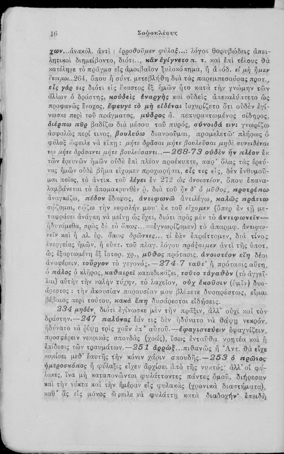 Σχολικό εγχειρίδιο Αρχαίων Ελληνικών ΣΤ΄ Γυμνασίου που περιέχει την Αντιγόνη του Σοφοκλή, ερμηνευτικά και πραγματολογικά σχόλια και λεξιλογικές παρατηρήσεις.