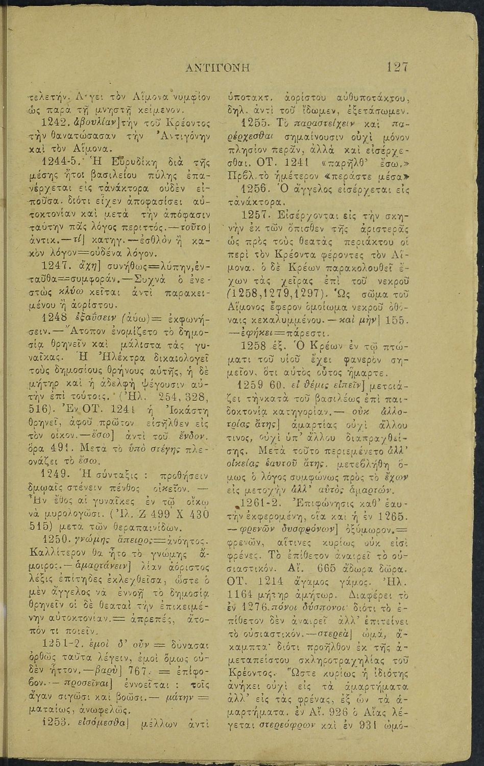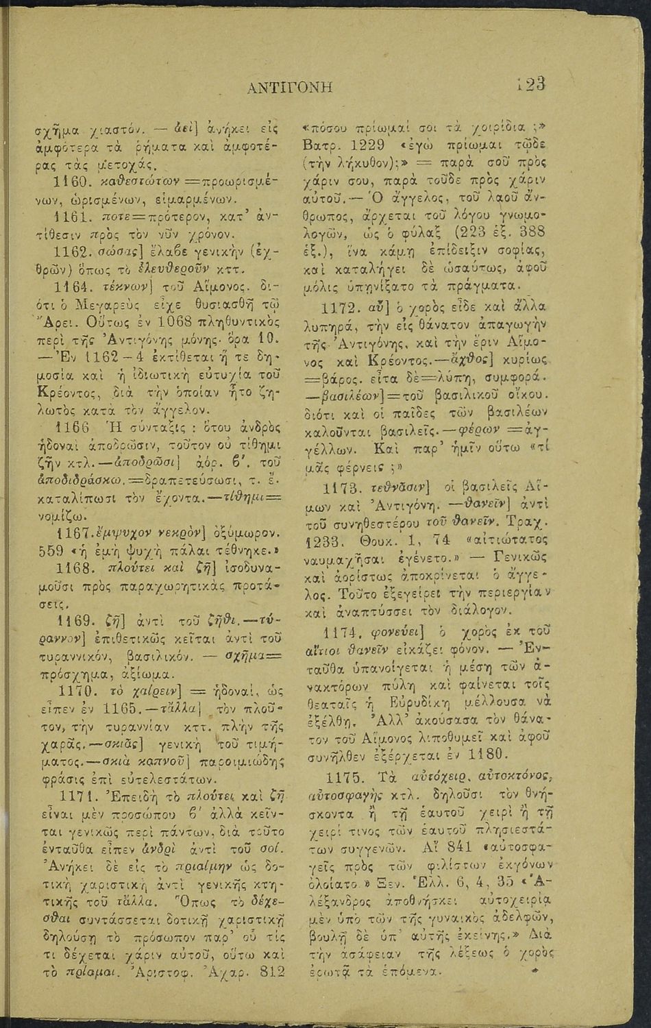 Μαθητικό βοήθημα για το μάθημα των Αρχαίων Ελληνικών. Περιέχει την Αντιγόνη του Σοφοκλή με ερμηνευτικές παρατηρήσεις.