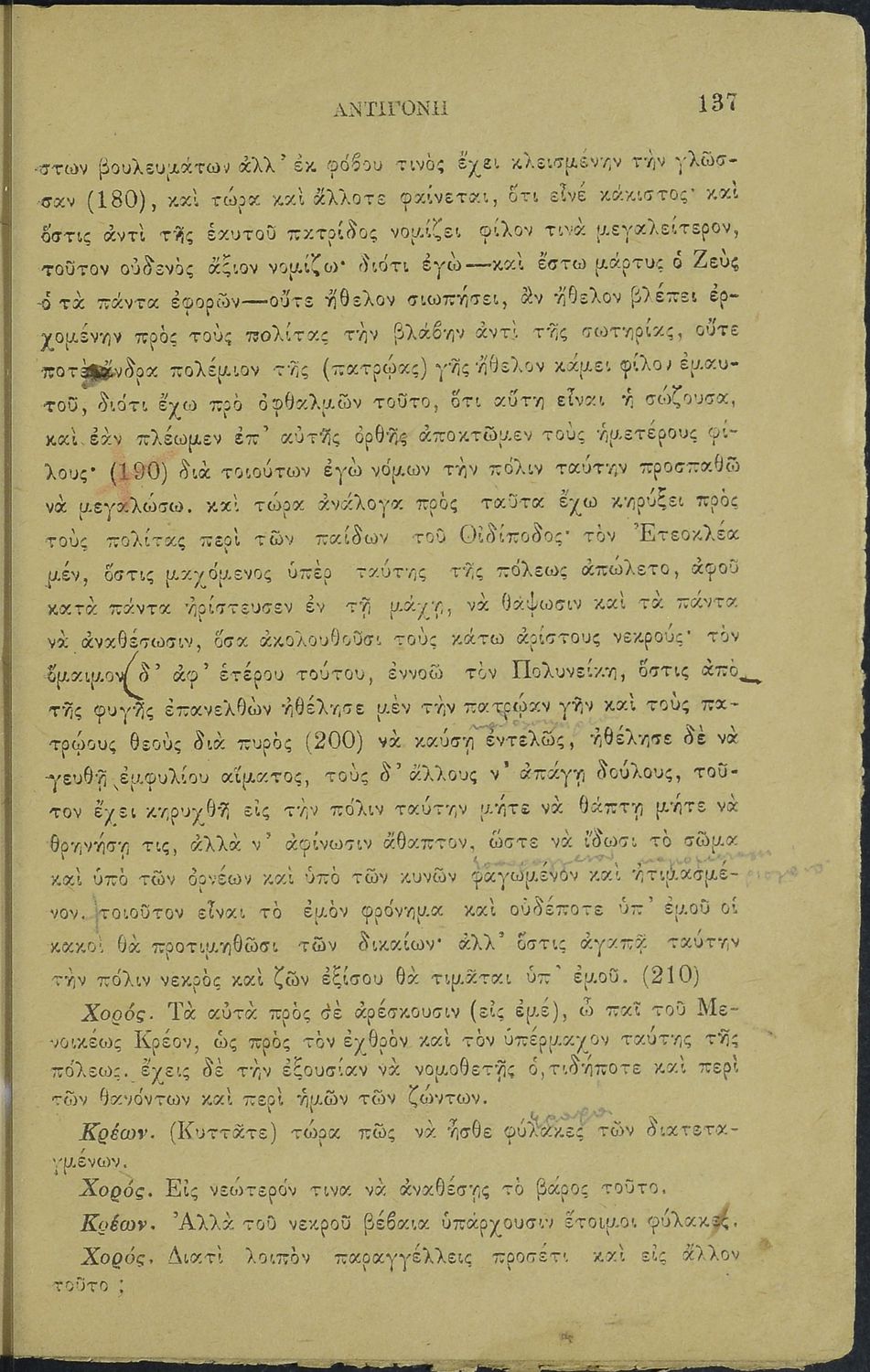 LDR 00919 2200181 4500 035 ## _a01-17281 040 ## _aΙνστιτούτο Εκπαιδευτικής Πολιτικής 041 ## _ael 100 ## _aΣοφοκλής _aΑ. Ξ Καραπαναγιώτης (σχόλια) 110 ## _a17281 245 0# _aΣοφοκλέους Αντιγόνη Εσχολιασμέναι και ηρμηνευμέναι 260 ## _aΑθήνα _bΤυπογραφείο: Παρ. Λεώνης _c1917 300 ## _a168 520 ## _aΜαθητικό βοήθημα για το μάθημα των Αρχαίων Ελληνικών. Περιέχει την Αντιγόνη του Σοφοκλή με ερμηνευτικές παρατηρήσεις. 522 ## _aΕλλάδα 546 ## _aΚαθαρεύουσα 563 ## _aΜαλακό Εξώφυλλο 650 #4 _aΑντιγόνη _aΚρέοντας _aΣοφοκλής _aΤραγωδία _aΧορός