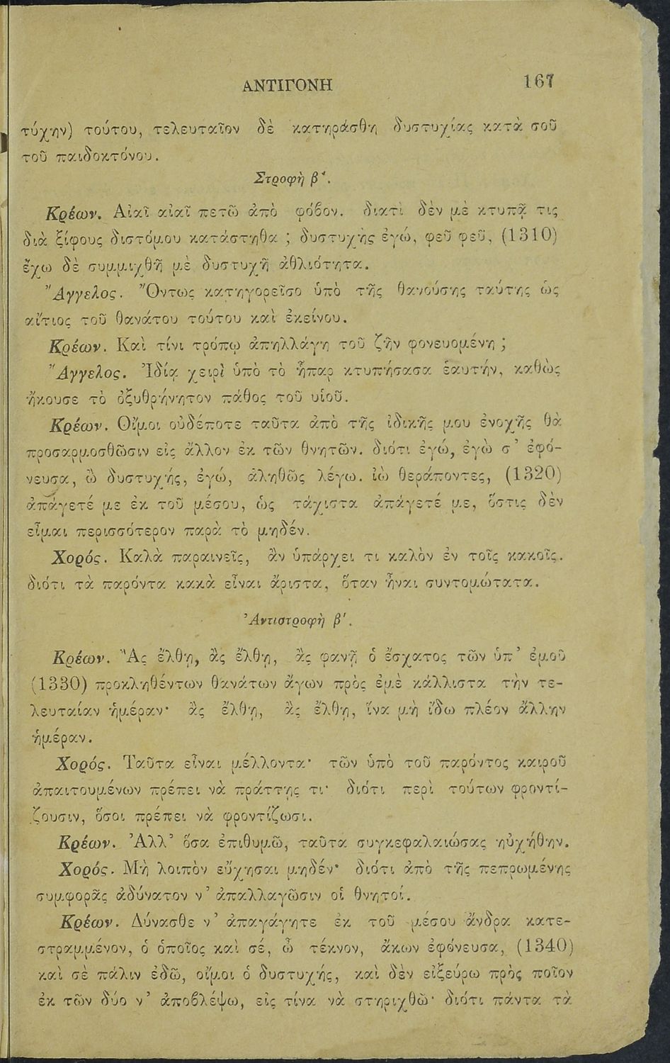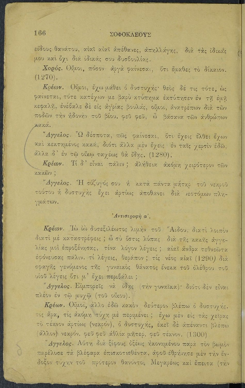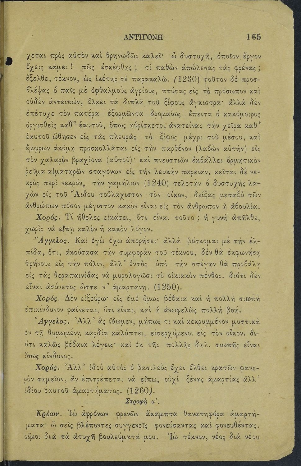 Παιδαγωγικό βοήθημα Αρχαίων Ελληνικών. Περιέχει τη τραγωδία του Σοφοκλή, την Αντιγόνη με σχόλια από τον Μιστριώτη που υπήρξε τακτικός καθηγητής των ελληνικών γραμμάτων στο εθνικό Πανεπιστήμιο.