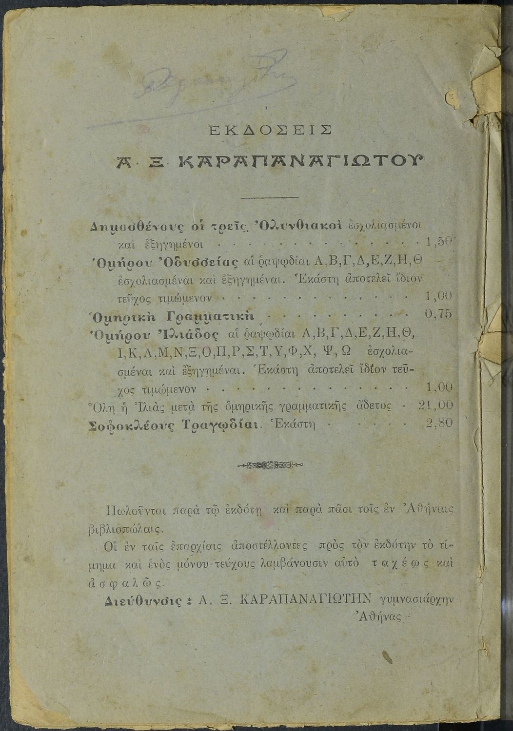 Συγγραφέας: Σοφοκλής, Α. Ξ Καραπαναγιώτης (σχόλια)