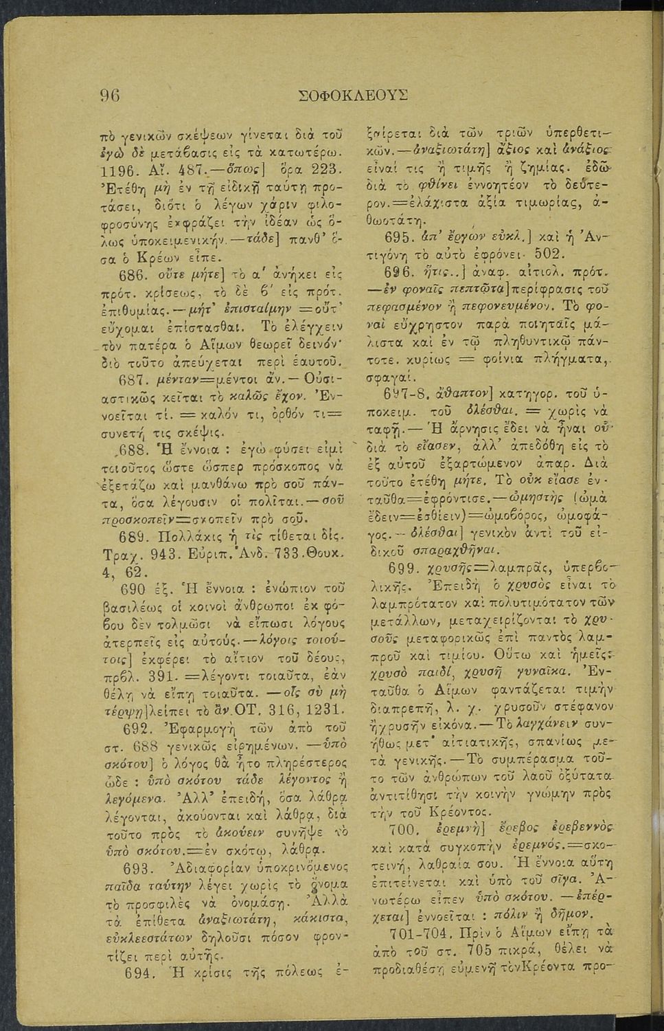 Σχολικό εγχειρίδιο Αρχαίων Ελληνικών που περιλαμβάνει τις τραγωδίες του Σοφοκλή Οιδίπους Τύραννος και Αντιγόνη, εισαγωγή και ερμηνευτικά σχόλια.
