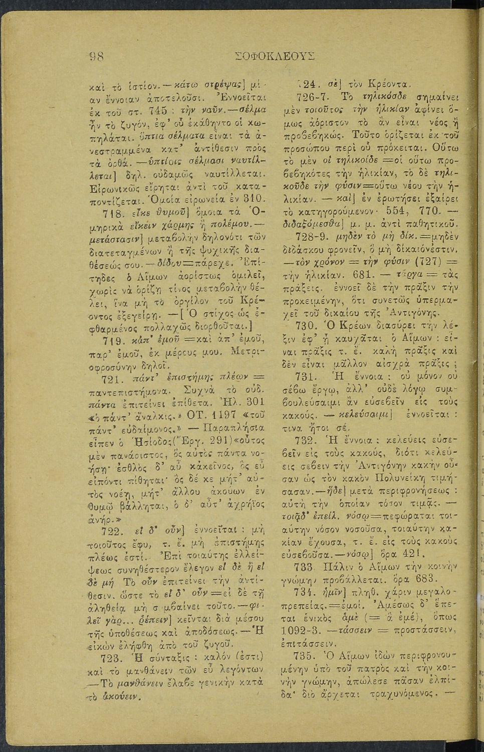 Παιδαγωγικό βοήθημα Αρχαίων Ελληνικών. Περιέχει τη τραγωδία του Σοφοκλή, την Αντιγόνη με σχόλια από τον Μιστριώτη που υπήρξε τακτικός καθηγητής των ελληνικών γραμμάτων στο εθνικό Πανεπιστήμιο.