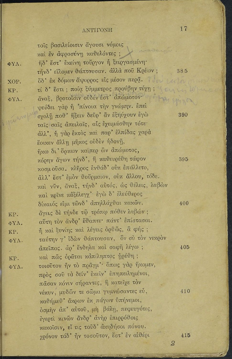 Μαθητικό βοήθημα για το μάθημα των Αρχαίων Ελληνικών. Περιέχει την Αντιγόνη του Σοφοκλή με ερμηνευτικές παρατηρήσεις.