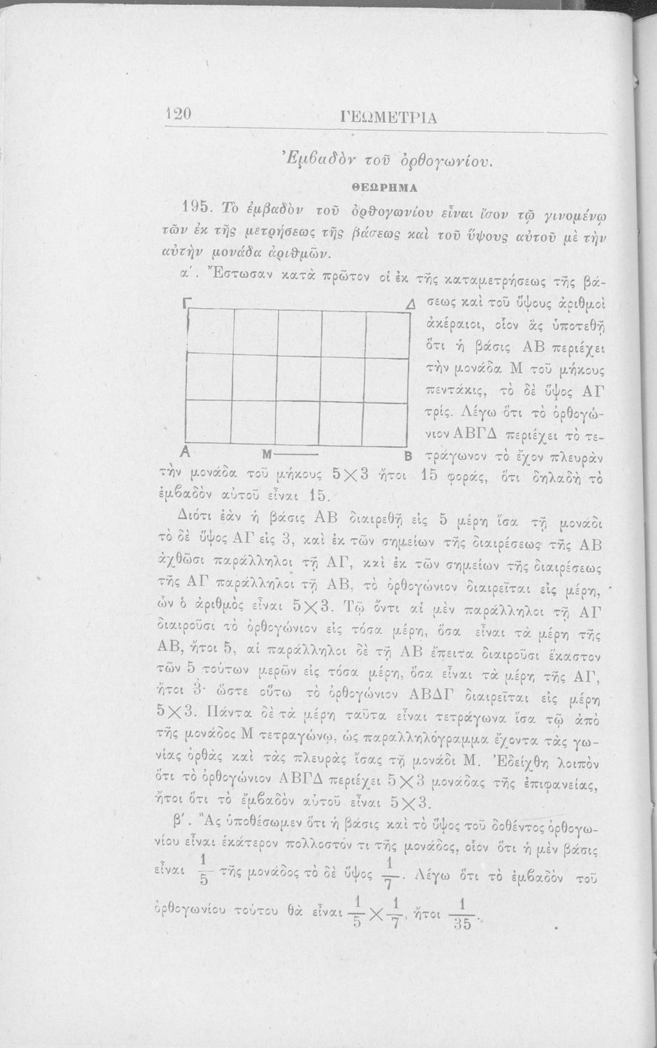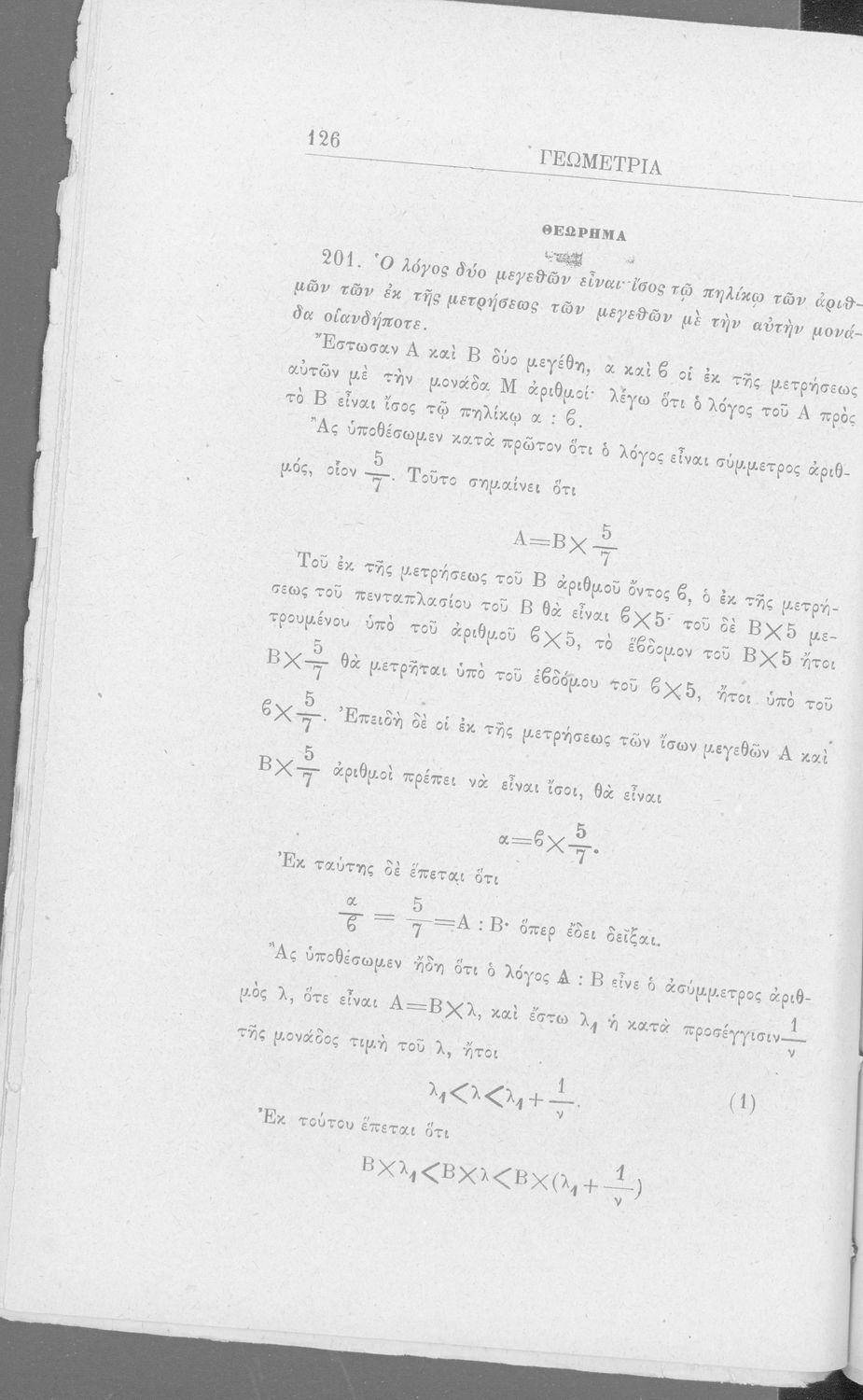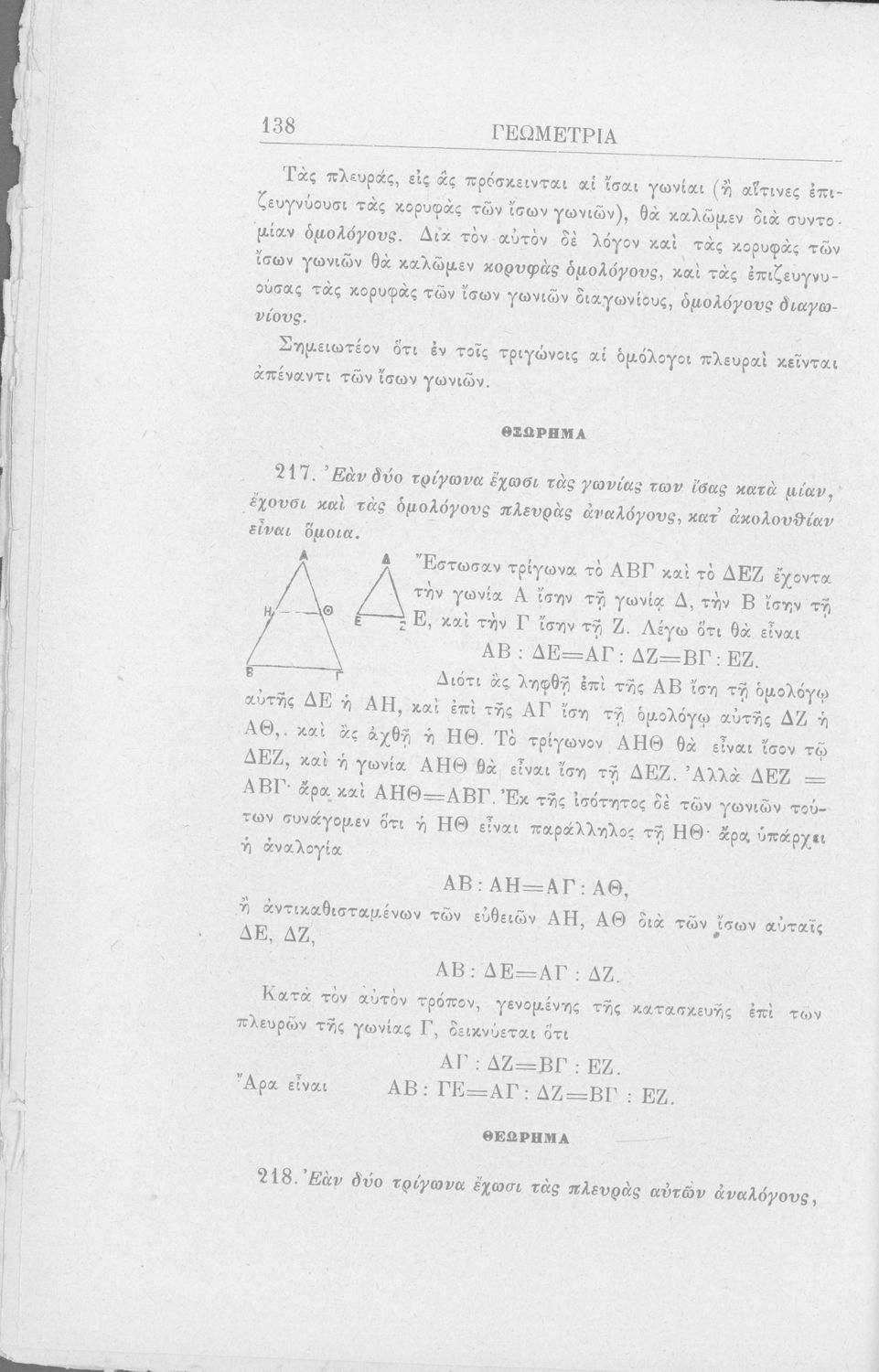 Σχολικό εγχειρίδιο Γεωμετρίας που είναι χωρισμένο σε αξιώματα, θεωρήματα και πορίσματα και εστιάζει στην Επίπεδη Γεωμετρία και τη Στερεομετρία.