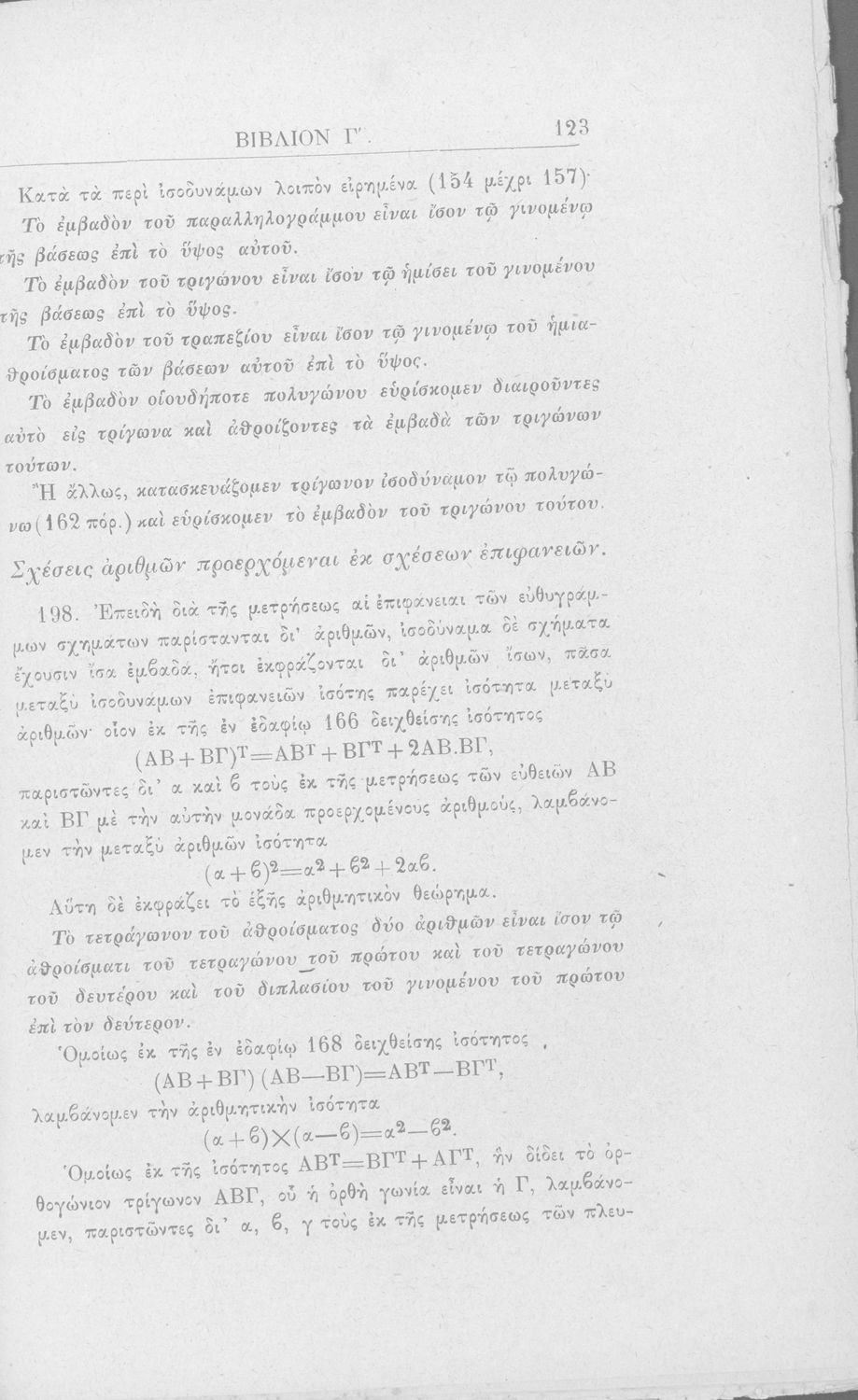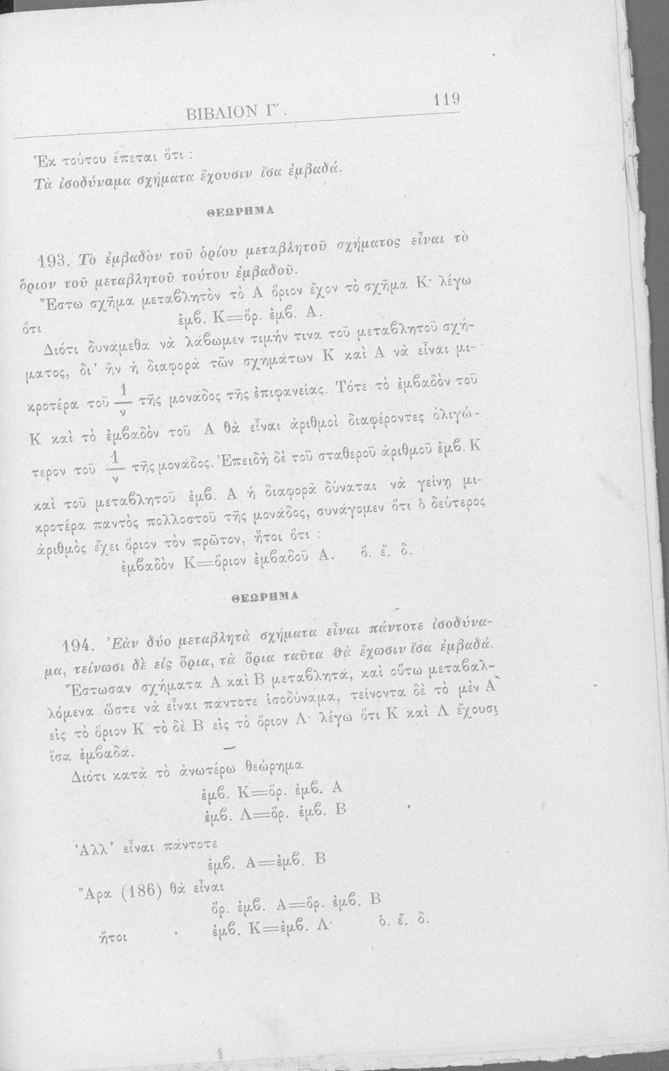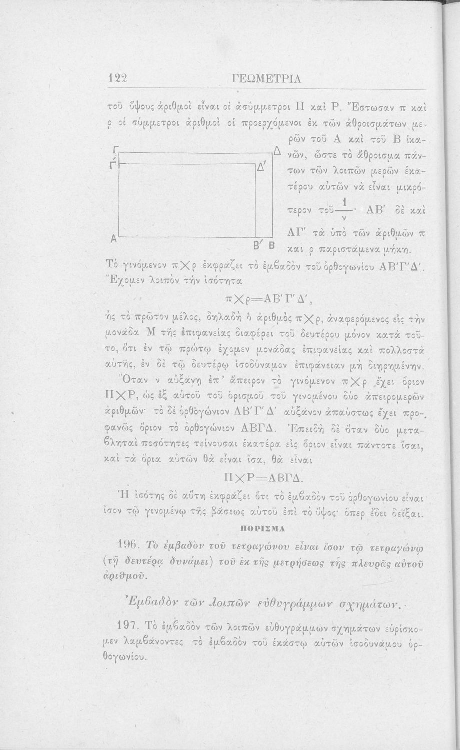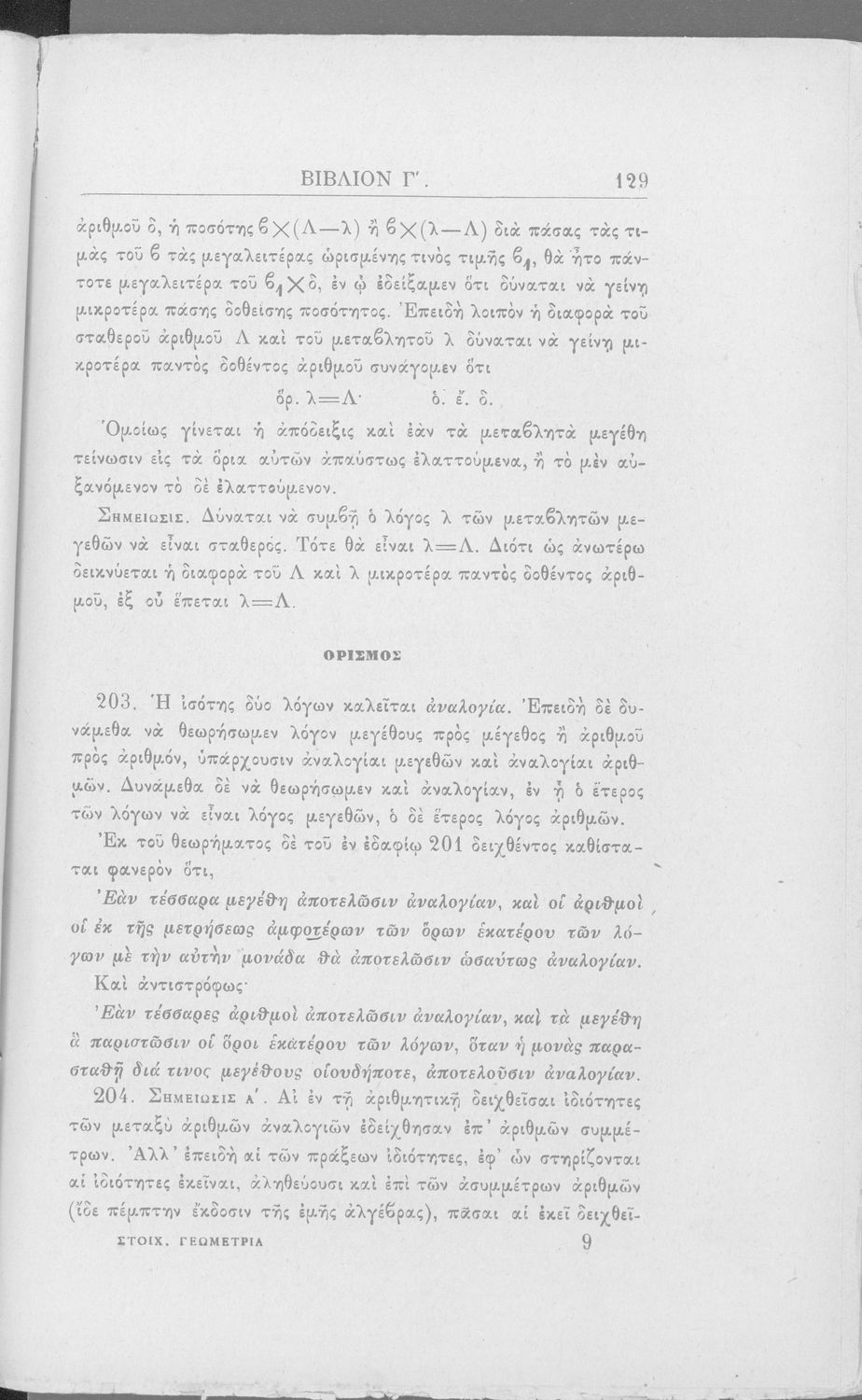 Σχολικό εγχειρίδιο Γεωμετρίας που είναι χωρισμένο σε αξιώματα, θεωρήματα και πορίσματα και εστιάζει στην Επίπεδη Γεωμετρία και τη Στερεομετρία.