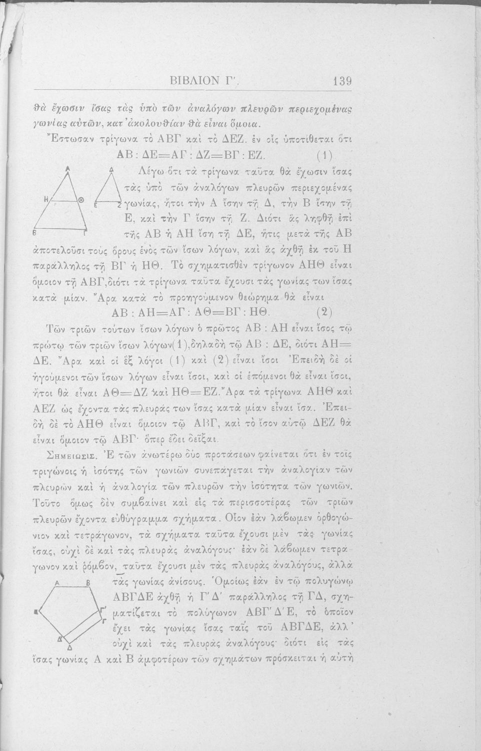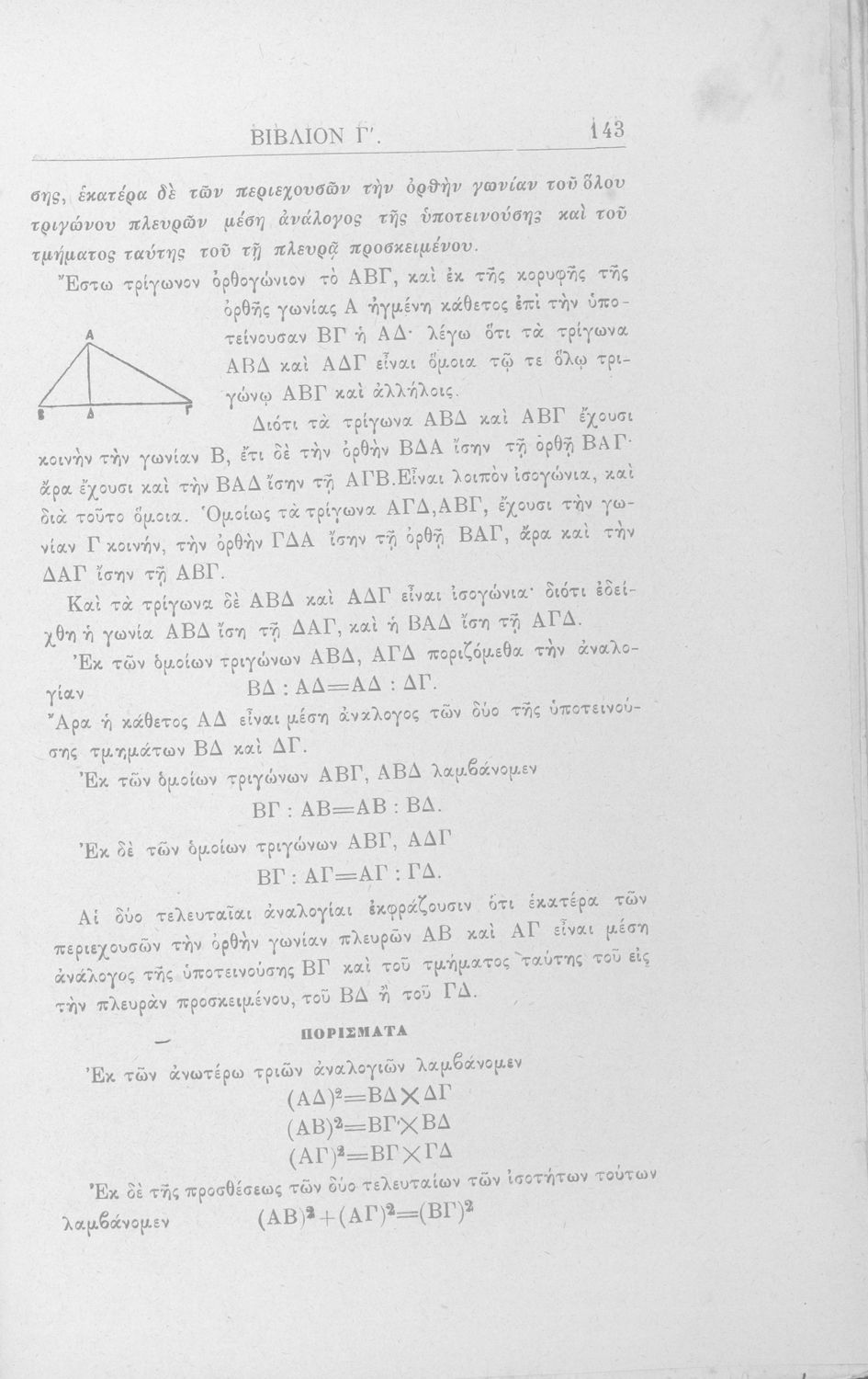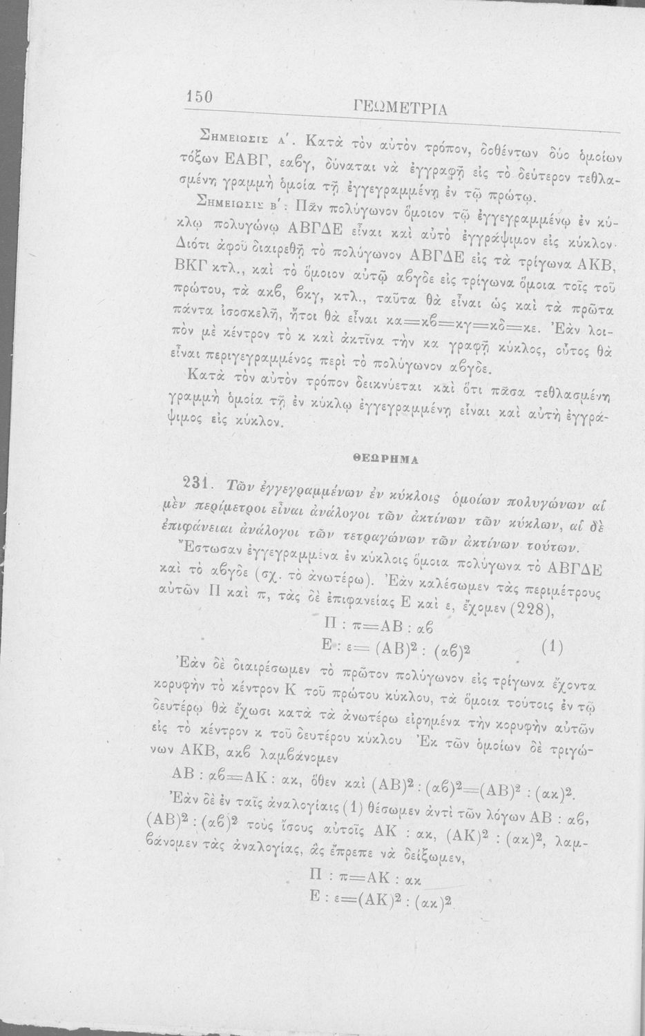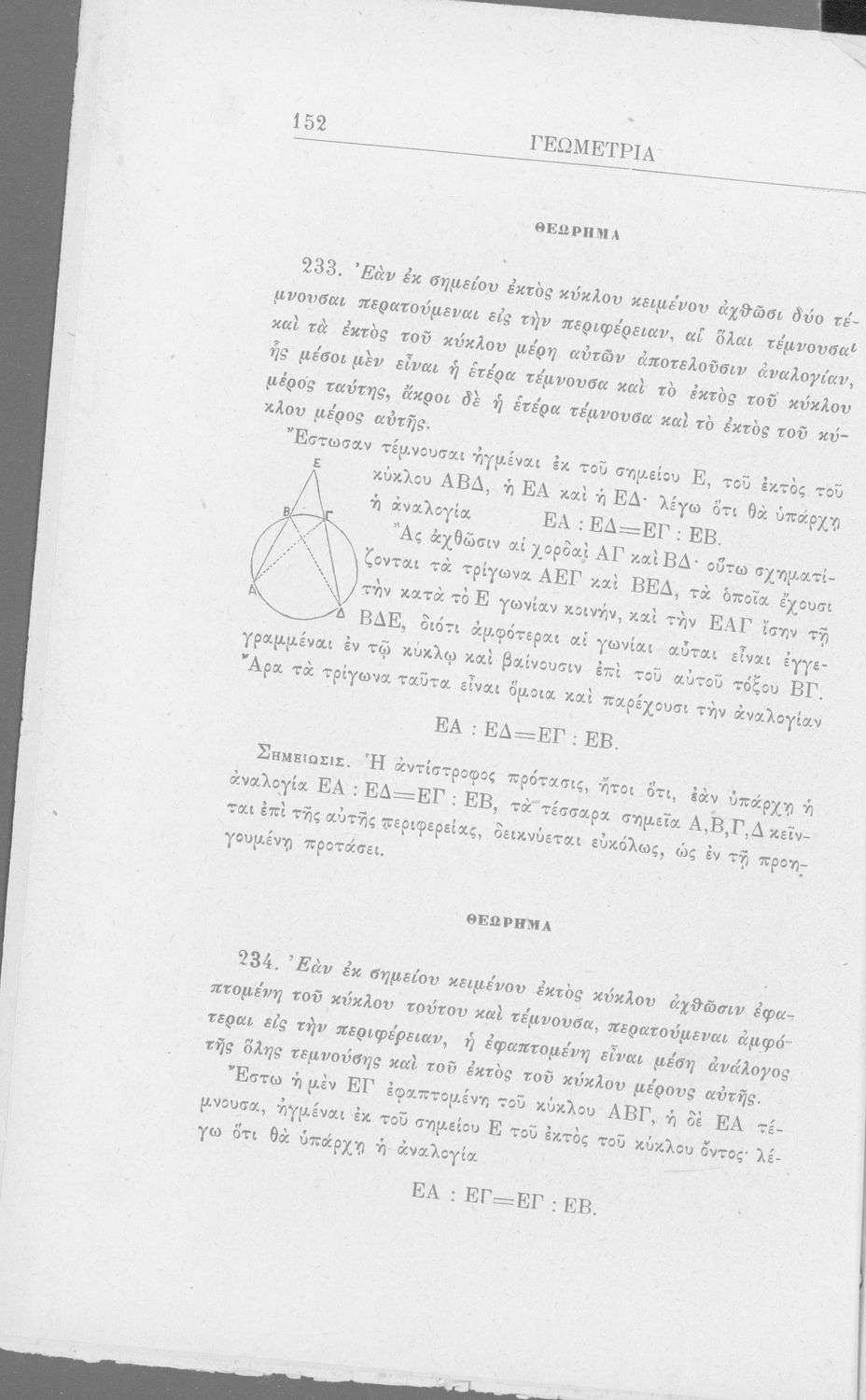 Σχολικό εγχειρίδιο Γεωμετρίας που είναι χωρισμένο σε αξιώματα, θεωρήματα και πορίσματα και εστιάζει στην Επίπεδη Γεωμετρία και τη Στερεομετρία.