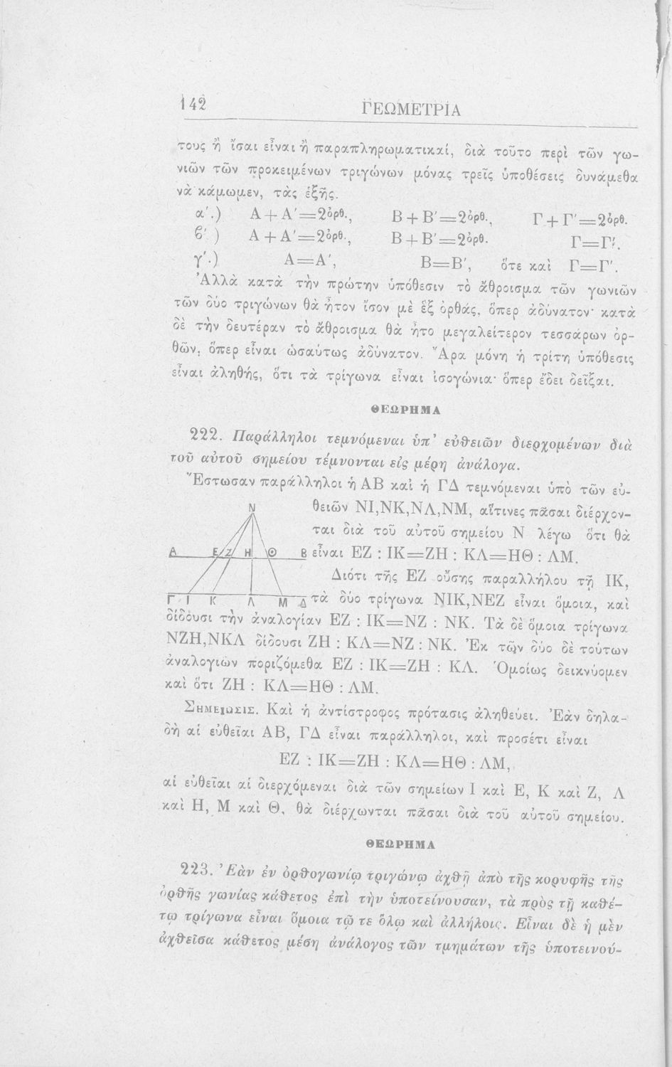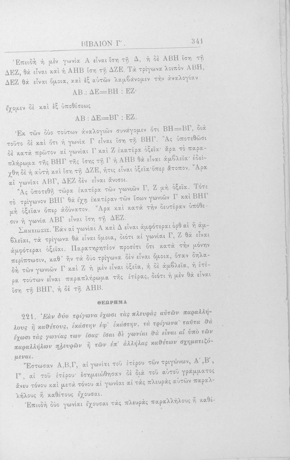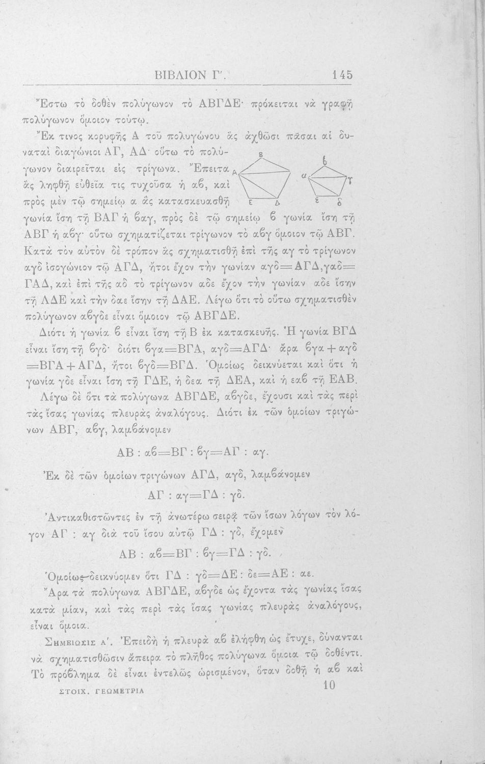 Σχολικό εγχειρίδιο Γεωμετρίας που είναι χωρισμένο σε αξιώματα, θεωρήματα και πορίσματα και εστιάζει στην Επίπεδη Γεωμετρία και τη Στερεομετρία.