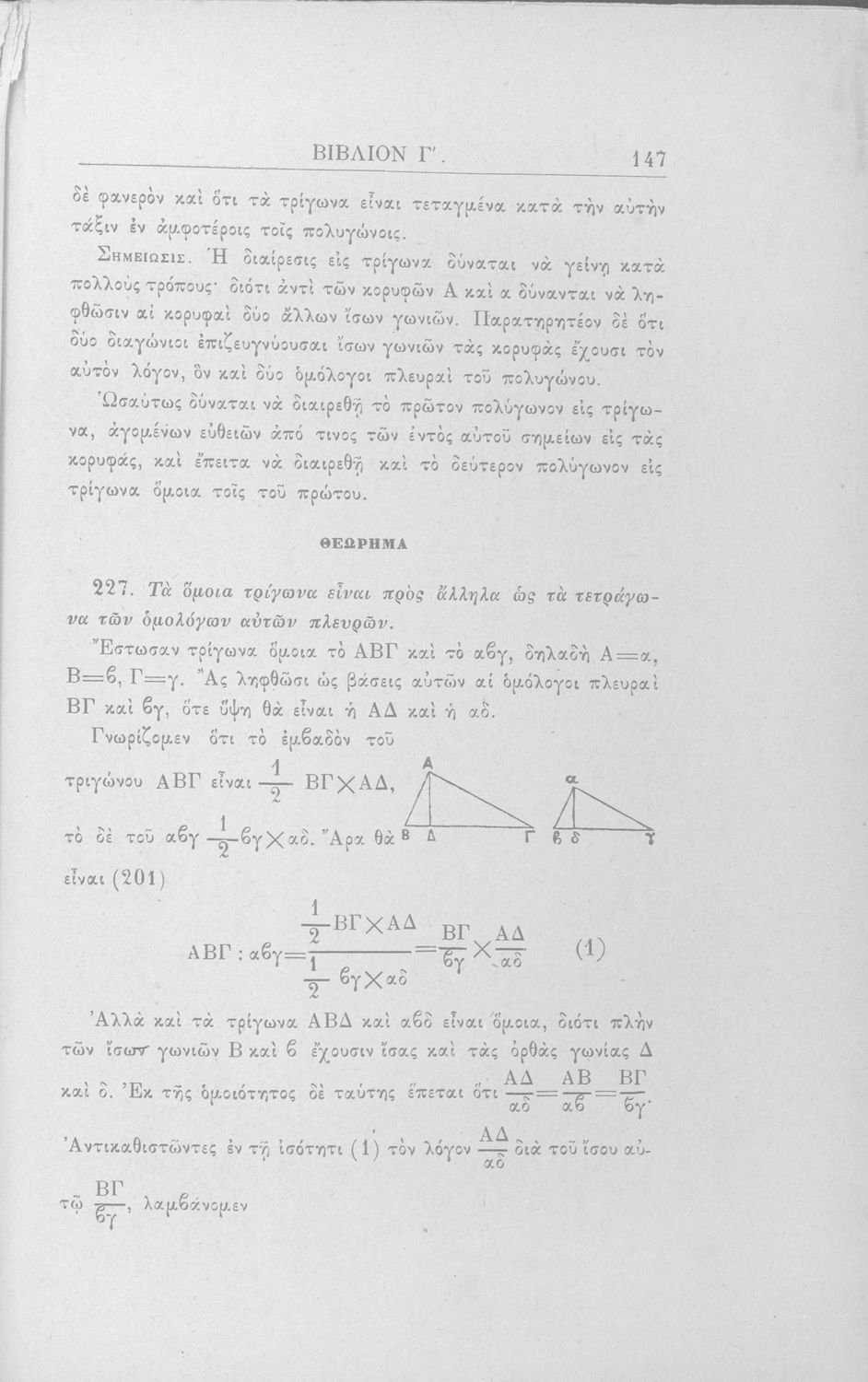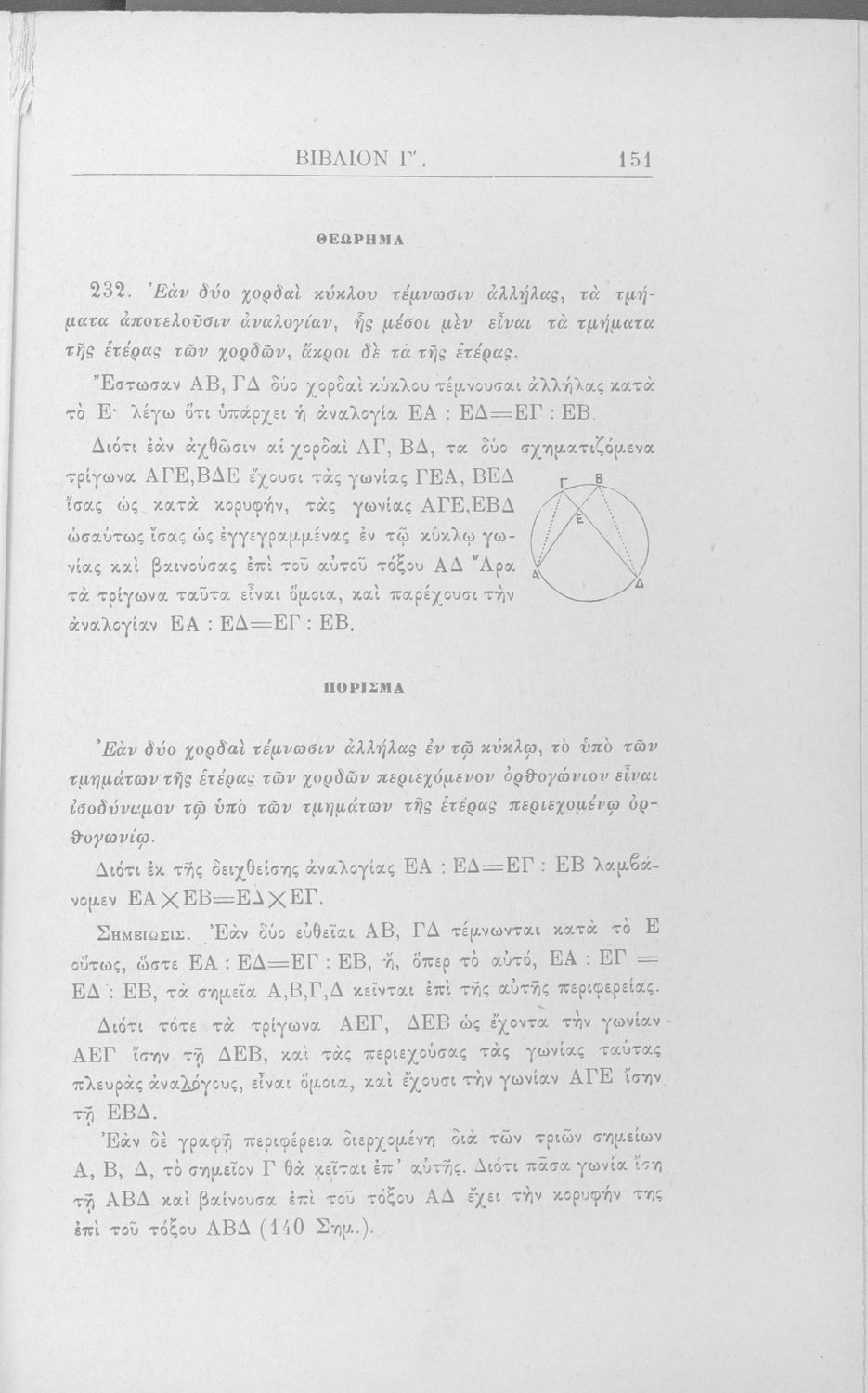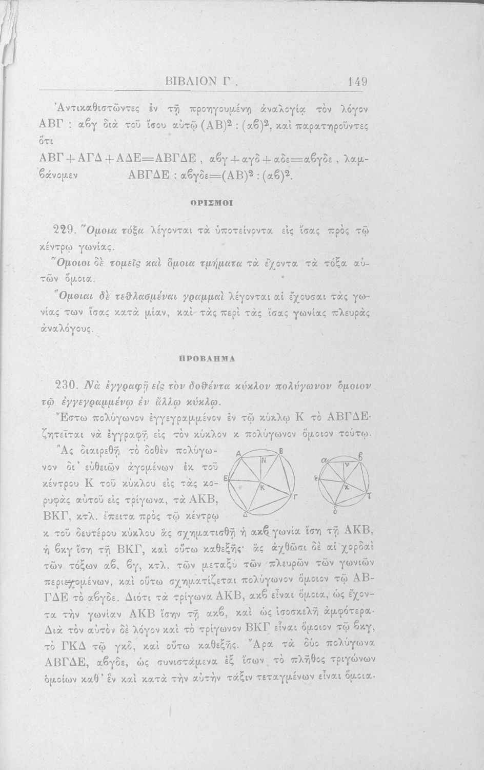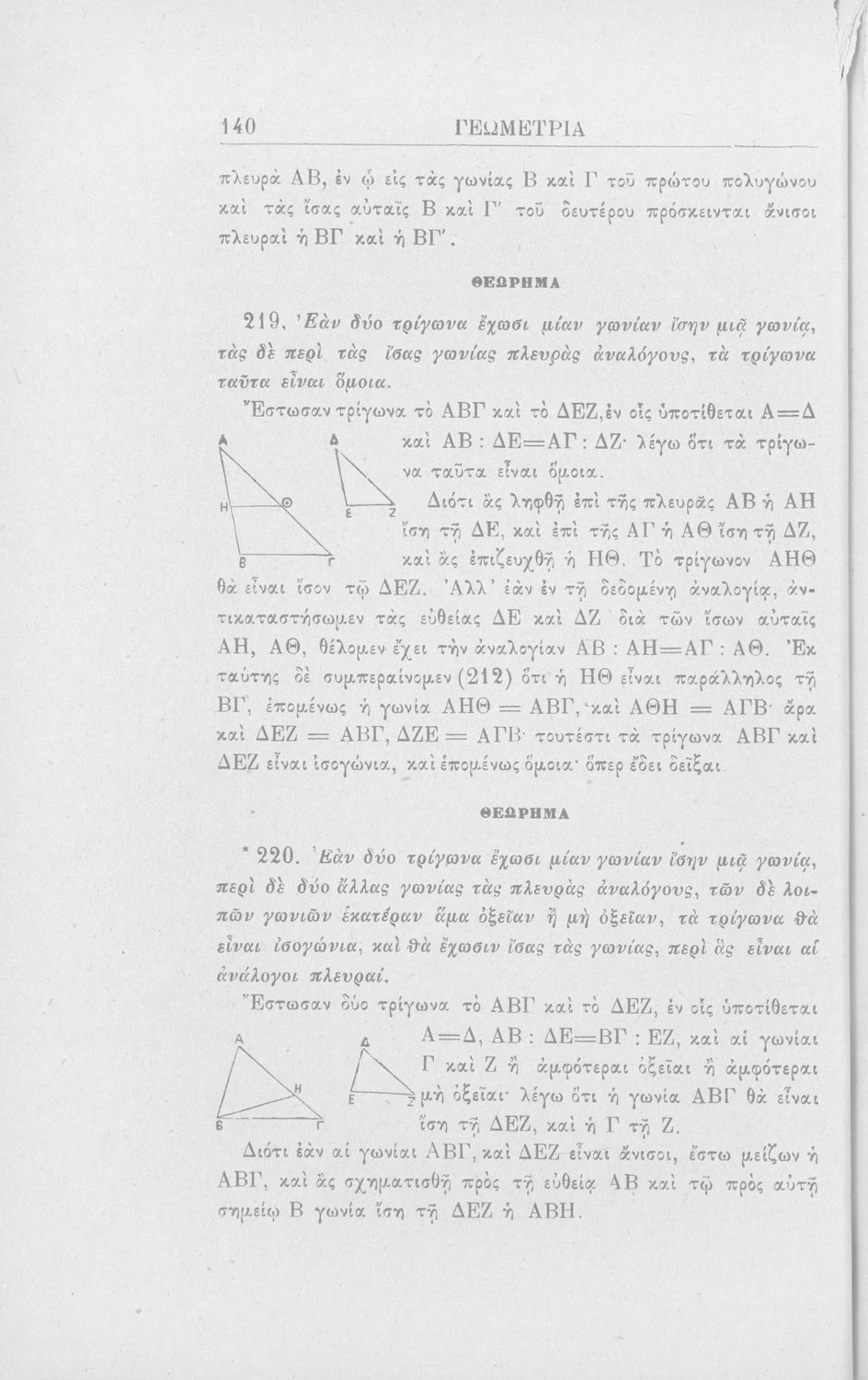 Σχολικό εγχειρίδιο Γεωμετρίας που είναι χωρισμένο σε αξιώματα, θεωρήματα και πορίσματα και εστιάζει στην Επίπεδη Γεωμετρία και τη Στερεομετρία.