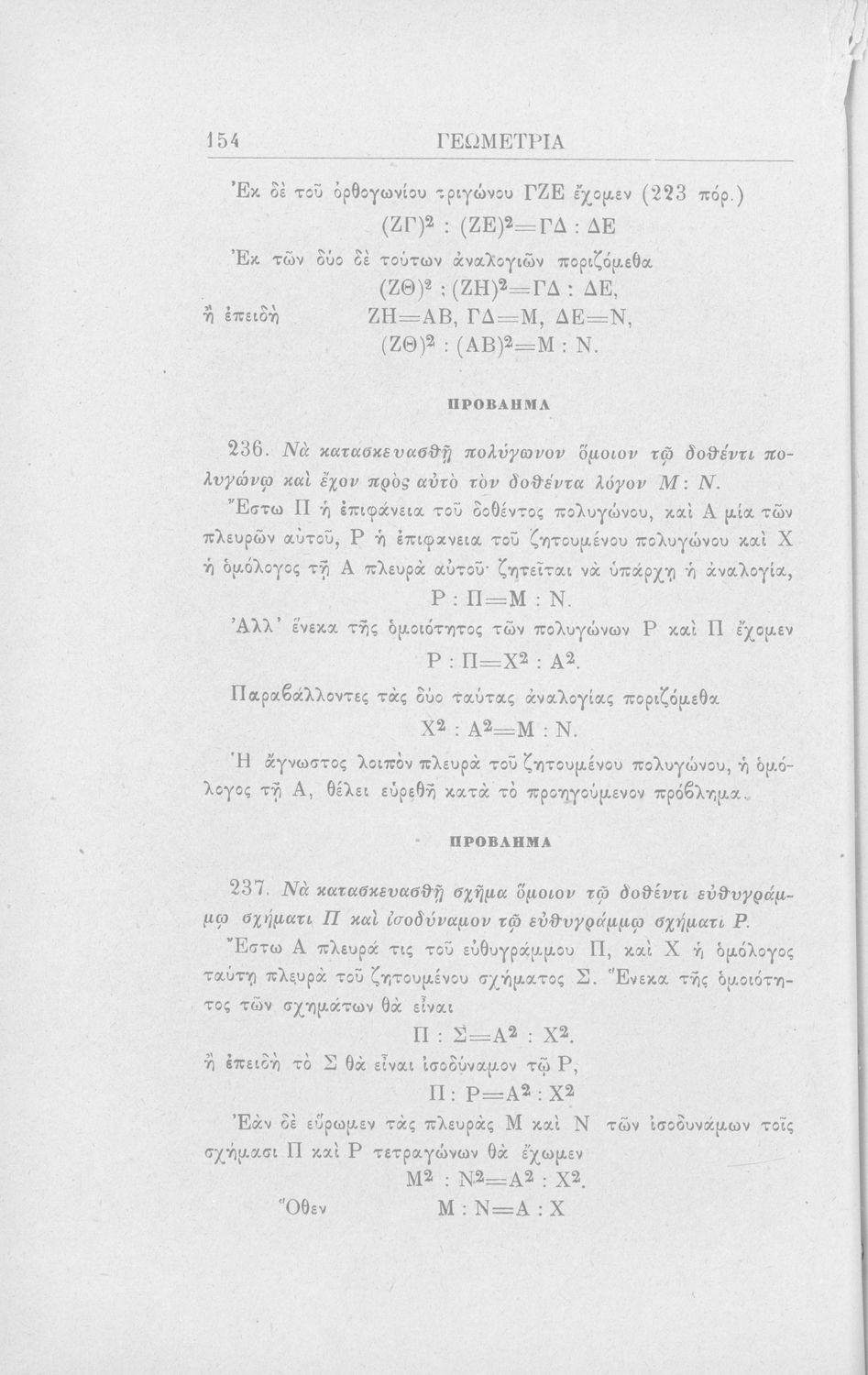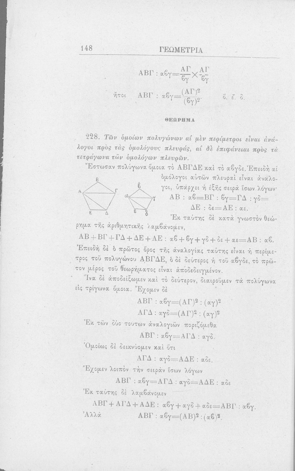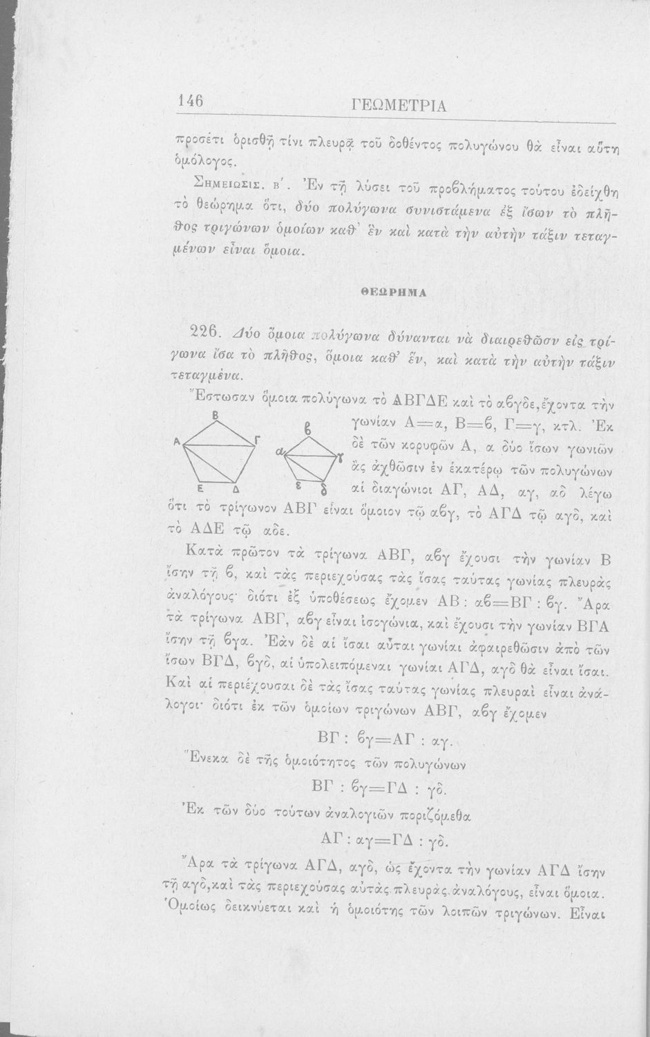 Σχολικό εγχειρίδιο Γεωμετρίας Γυμνασίου χωρισμένο σε ορισμούς, θεωρήματα, πορίσματα και ασκήσεις που εστιάζει στην Επιπεδομετρία και τη Στερεομετρία. Διαθέτει και παράρτημα εφαρμογής της Άλγεβρας στη Γεωμετρία.