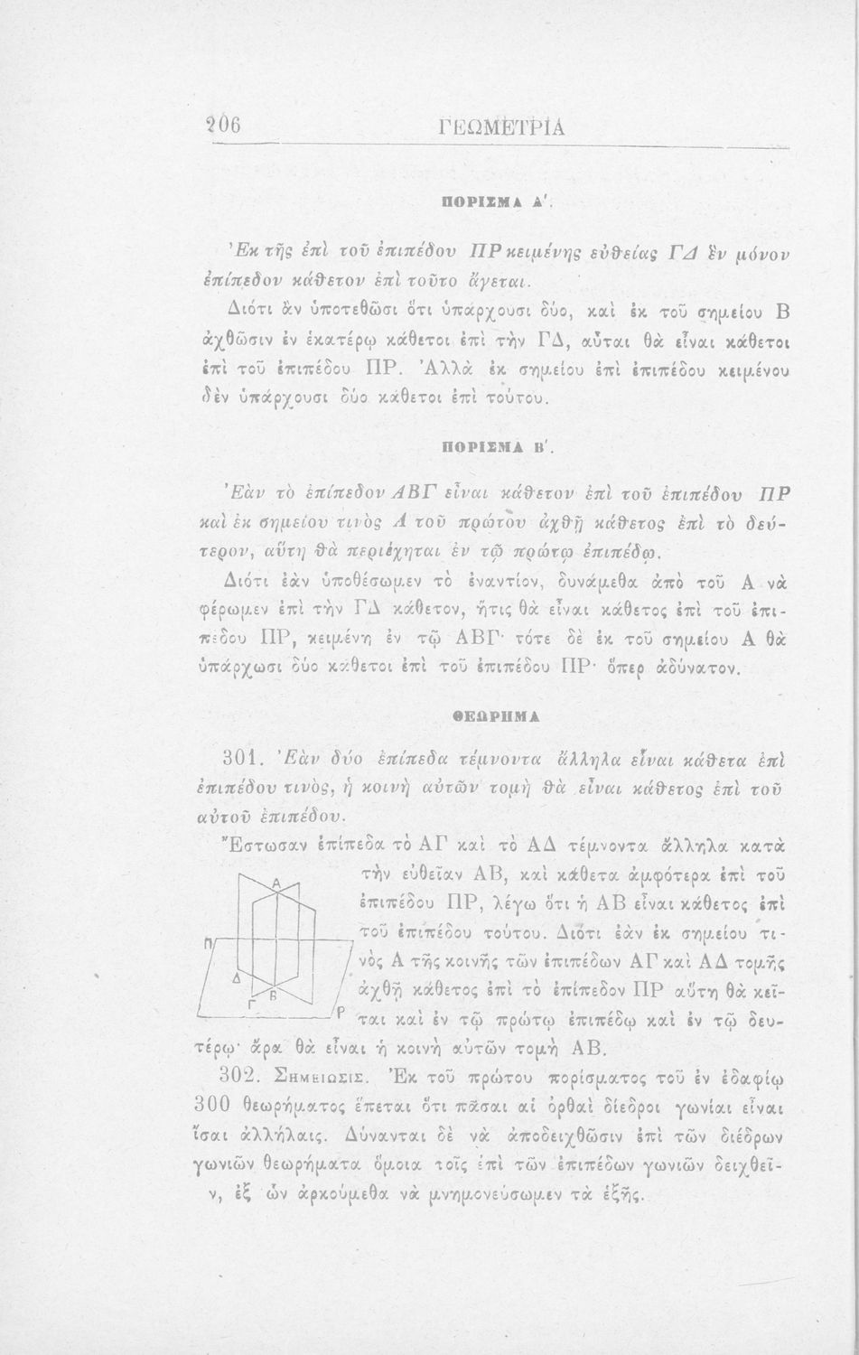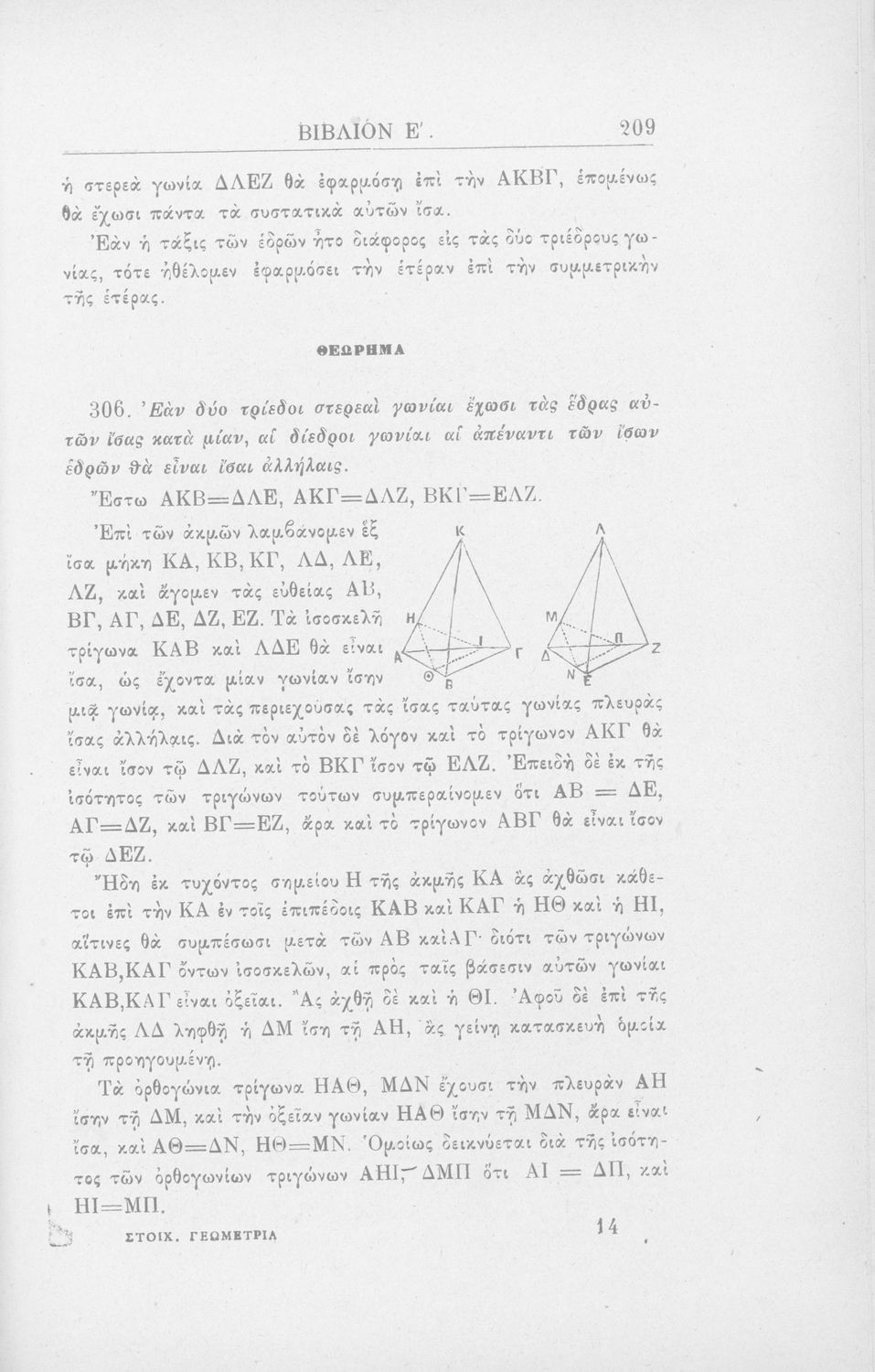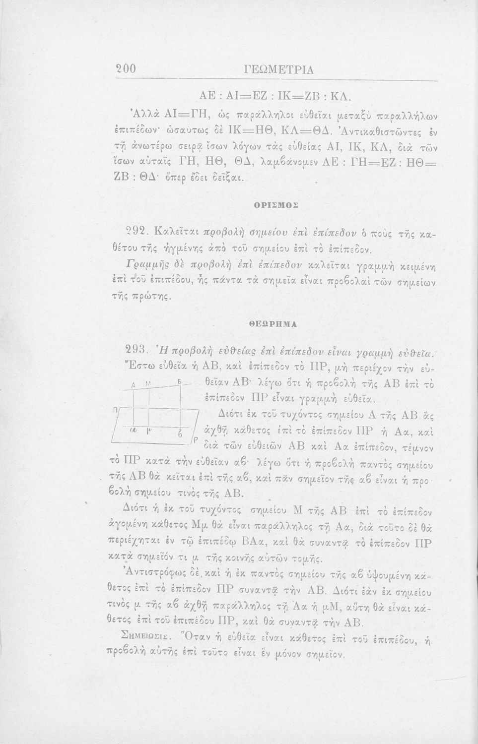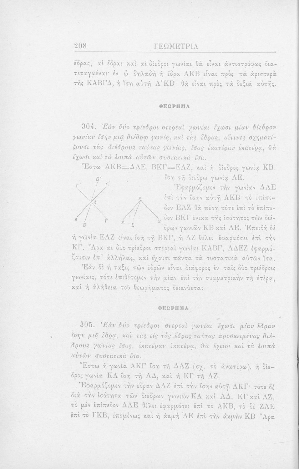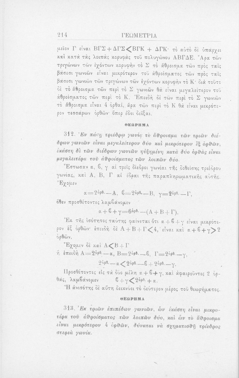 Σχολικό εγχειρίδιο Γεωμετρίας που είναι χωρισμένο σε αξιώματα, θεωρήματα και πορίσματα και εστιάζει στην Επίπεδη Γεωμετρία και τη Στερεομετρία.