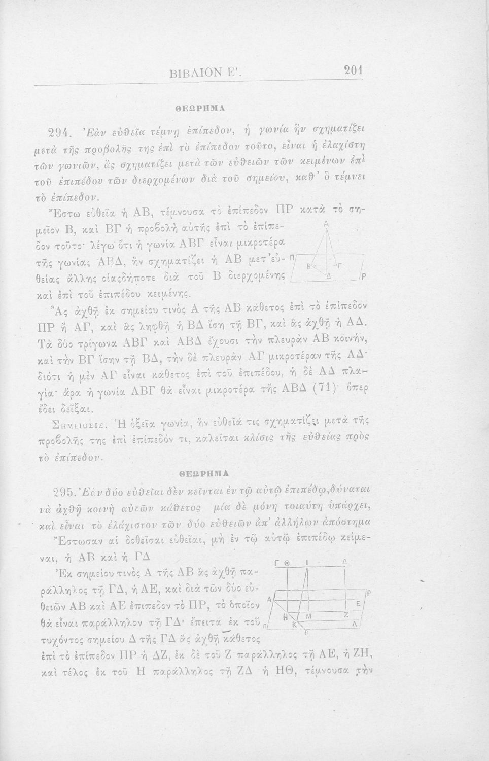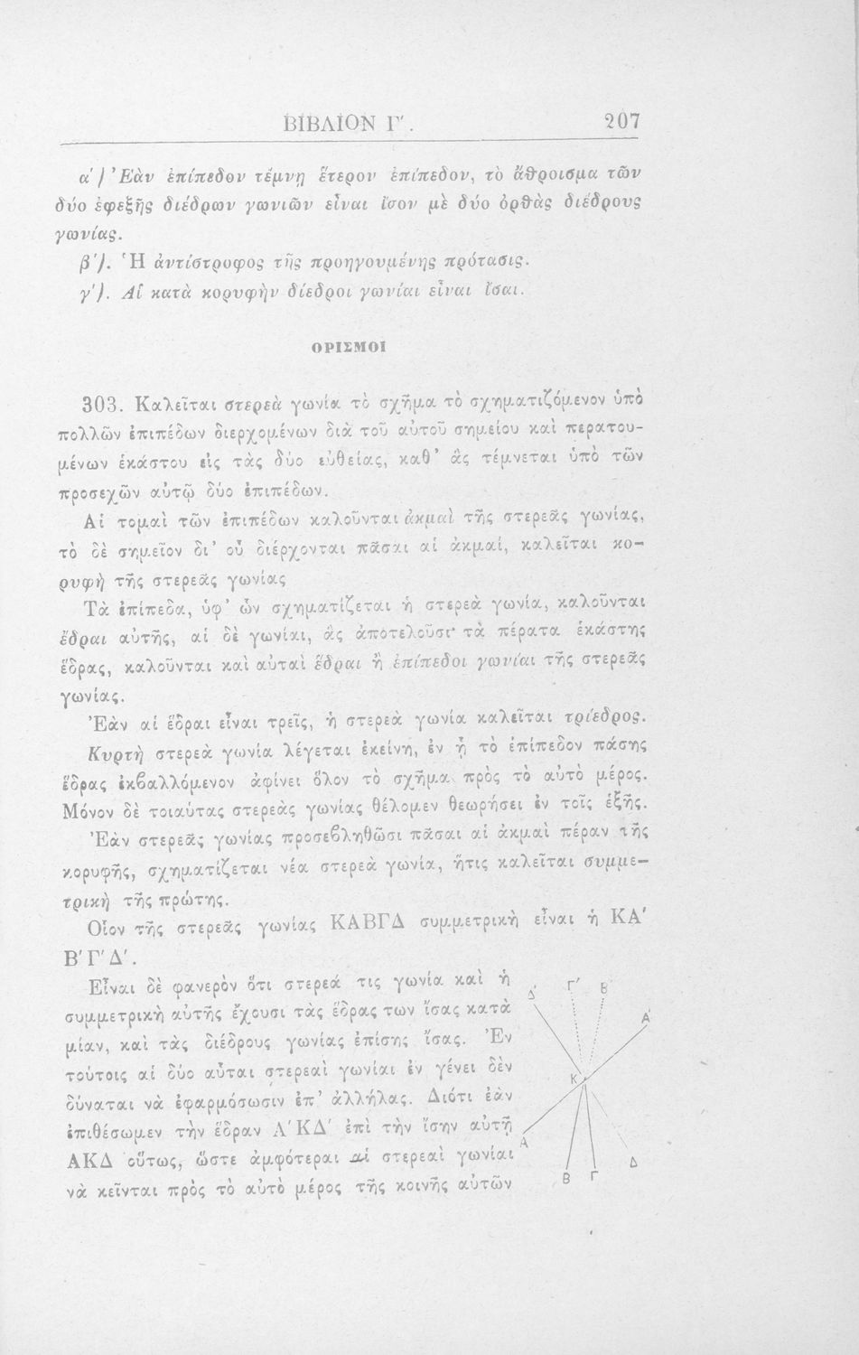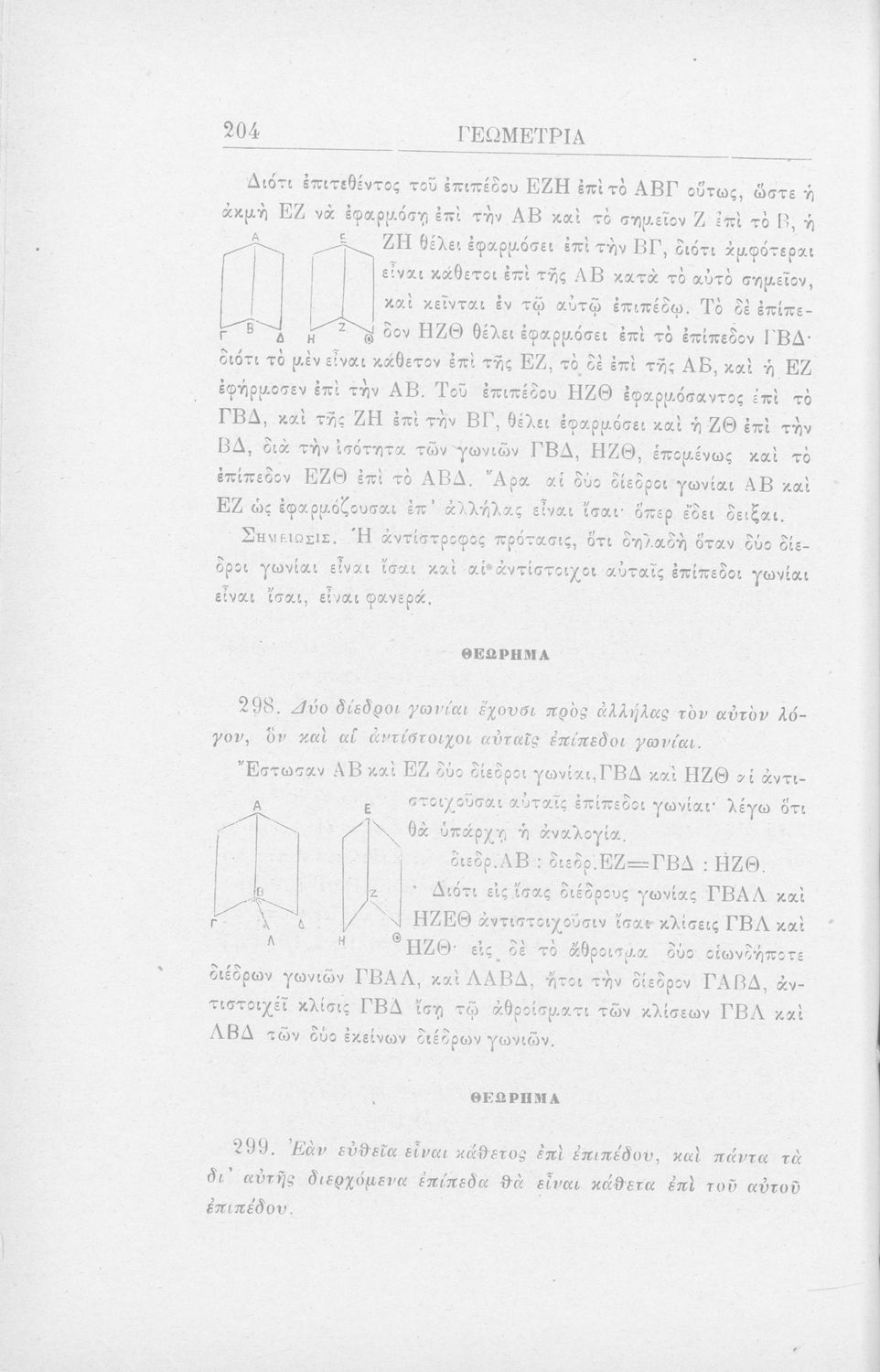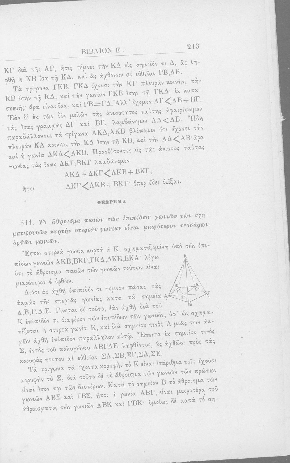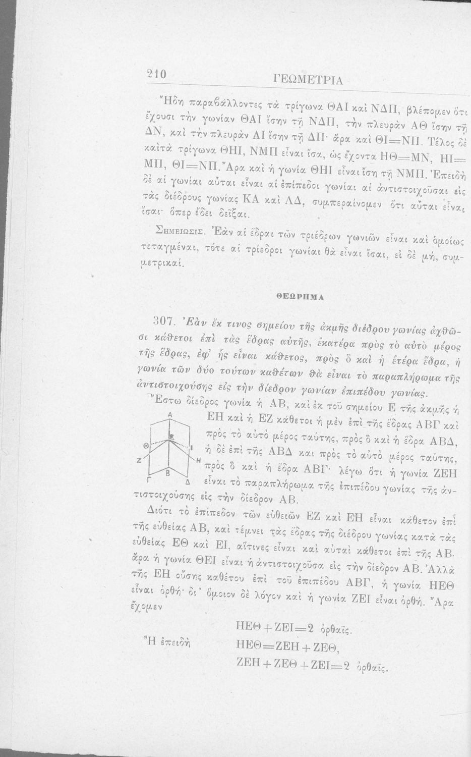 Σχολικό εγχειρίδιο Γεωμετρίας που είναι χωρισμένο σε αξιώματα, θεωρήματα και πορίσματα και εστιάζει στην Επίπεδη Γεωμετρία και τη Στερεομετρία.
