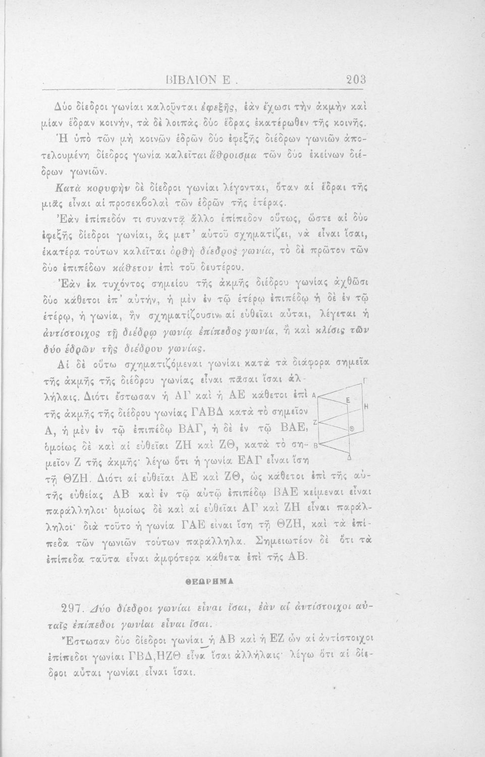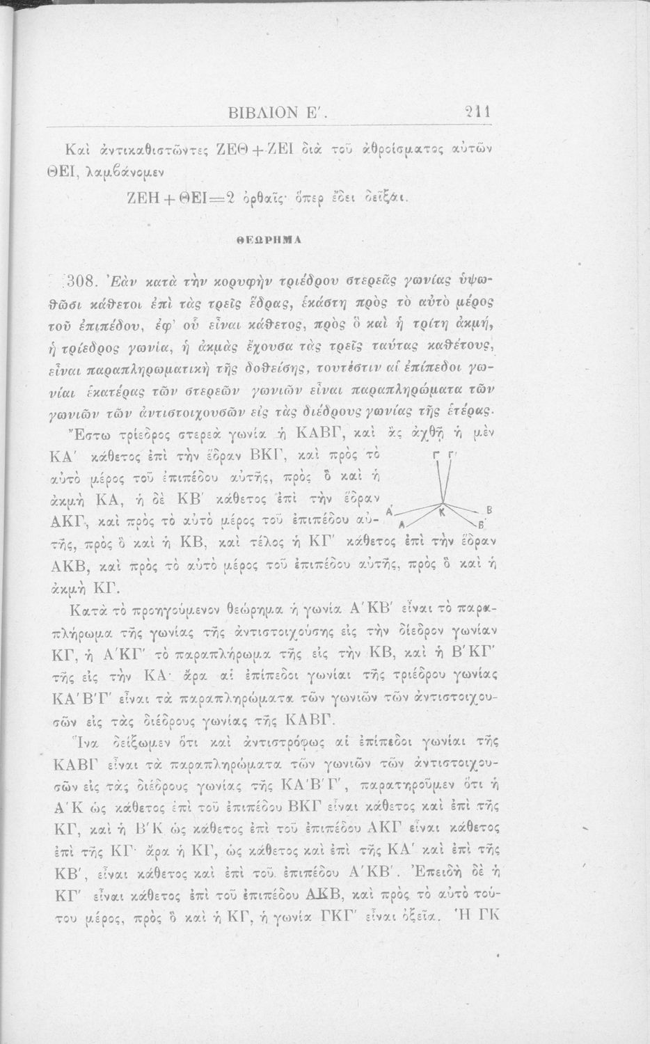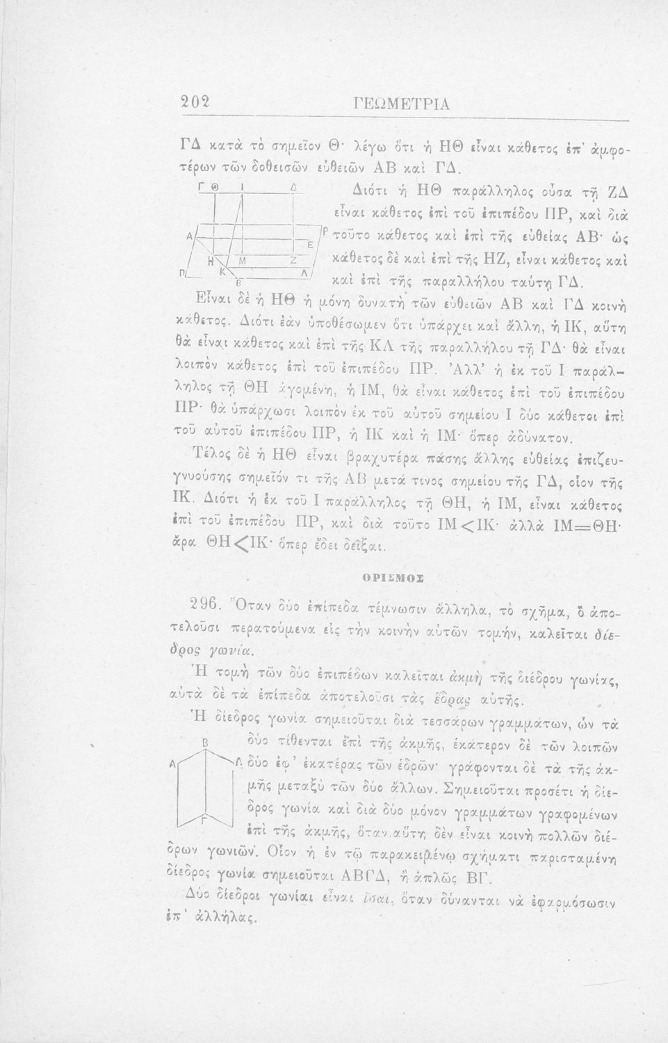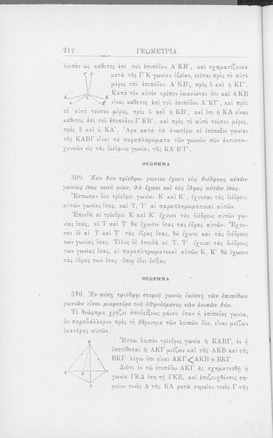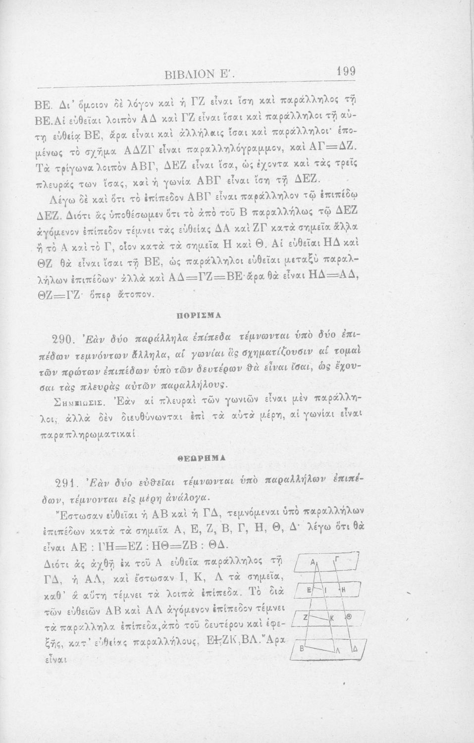 Σχολικό εγχειρίδιο Γεωμετρίας που είναι χωρισμένο σε αξιώματα, θεωρήματα και πορίσματα και εστιάζει στην Επίπεδη Γεωμετρία και τη Στερεομετρία.
