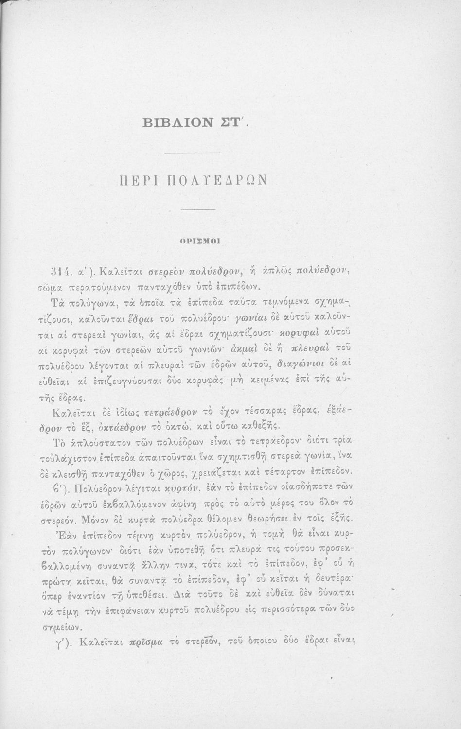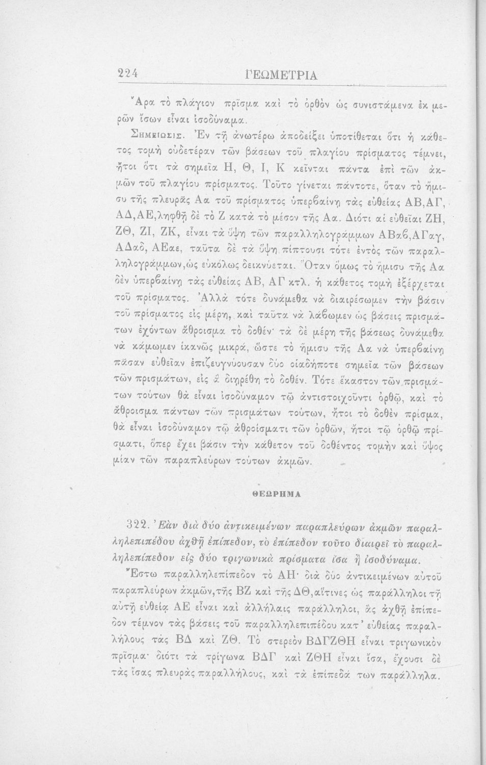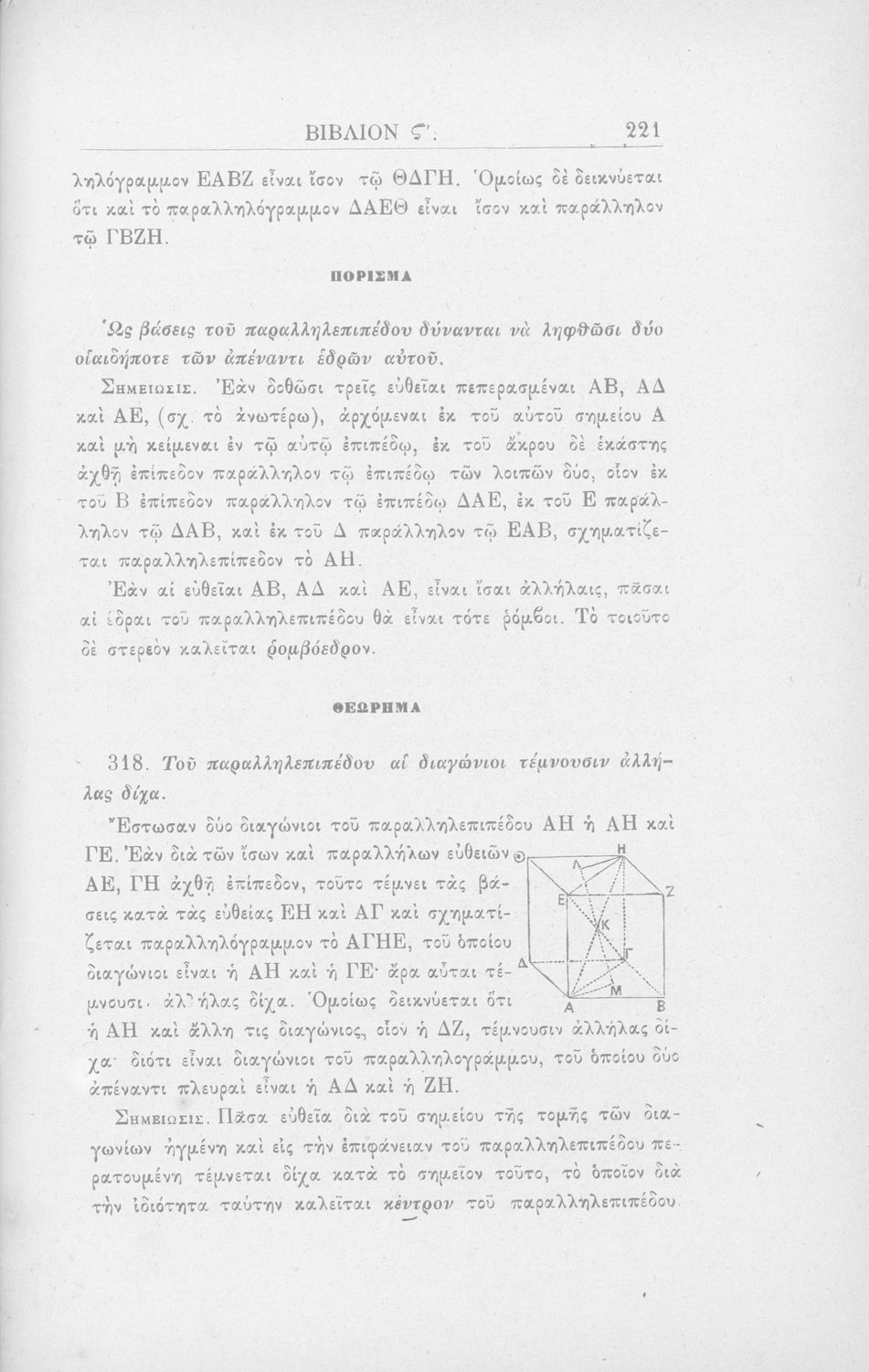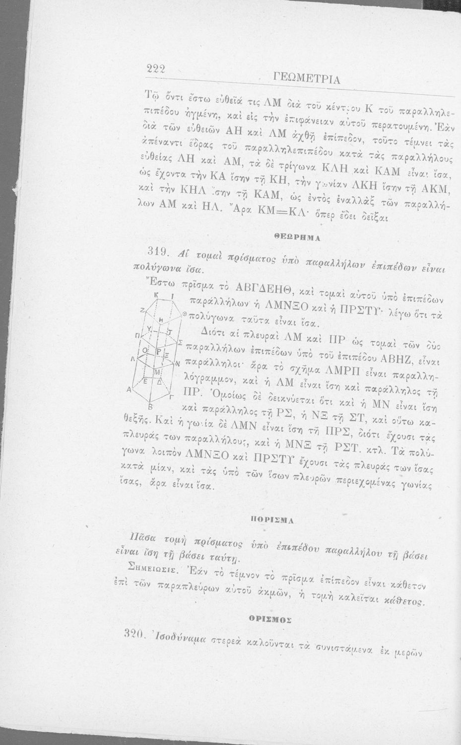 Σχολικό εγχειρίδιο Γεωμετρίας που είναι χωρισμένο σε αξιώματα, θεωρήματα και πορίσματα και εστιάζει στην Επίπεδη Γεωμετρία και τη Στερεομετρία.