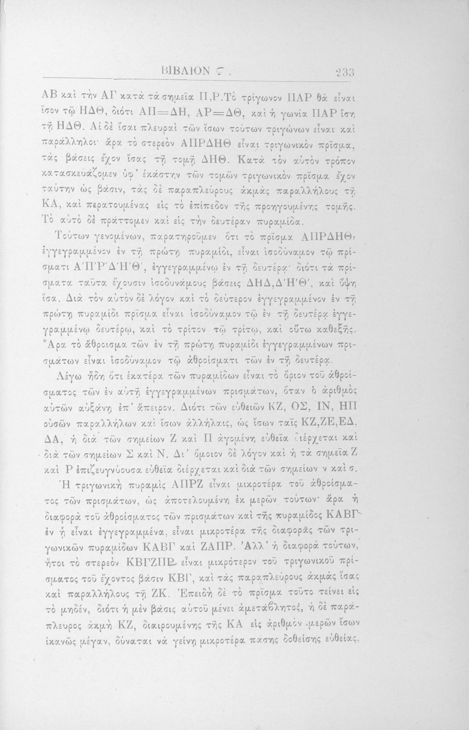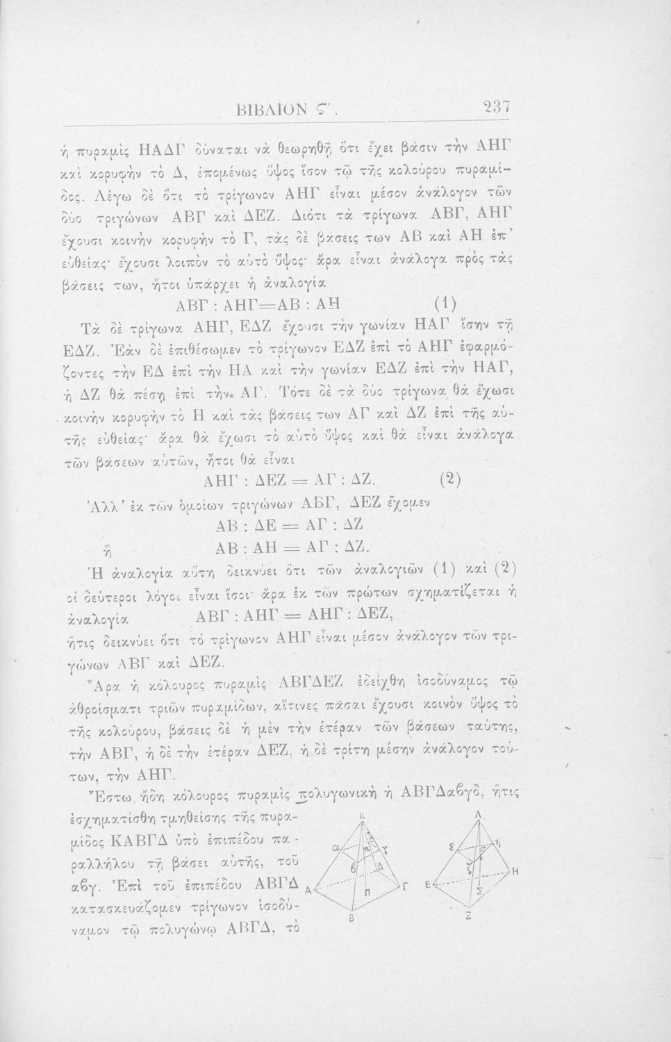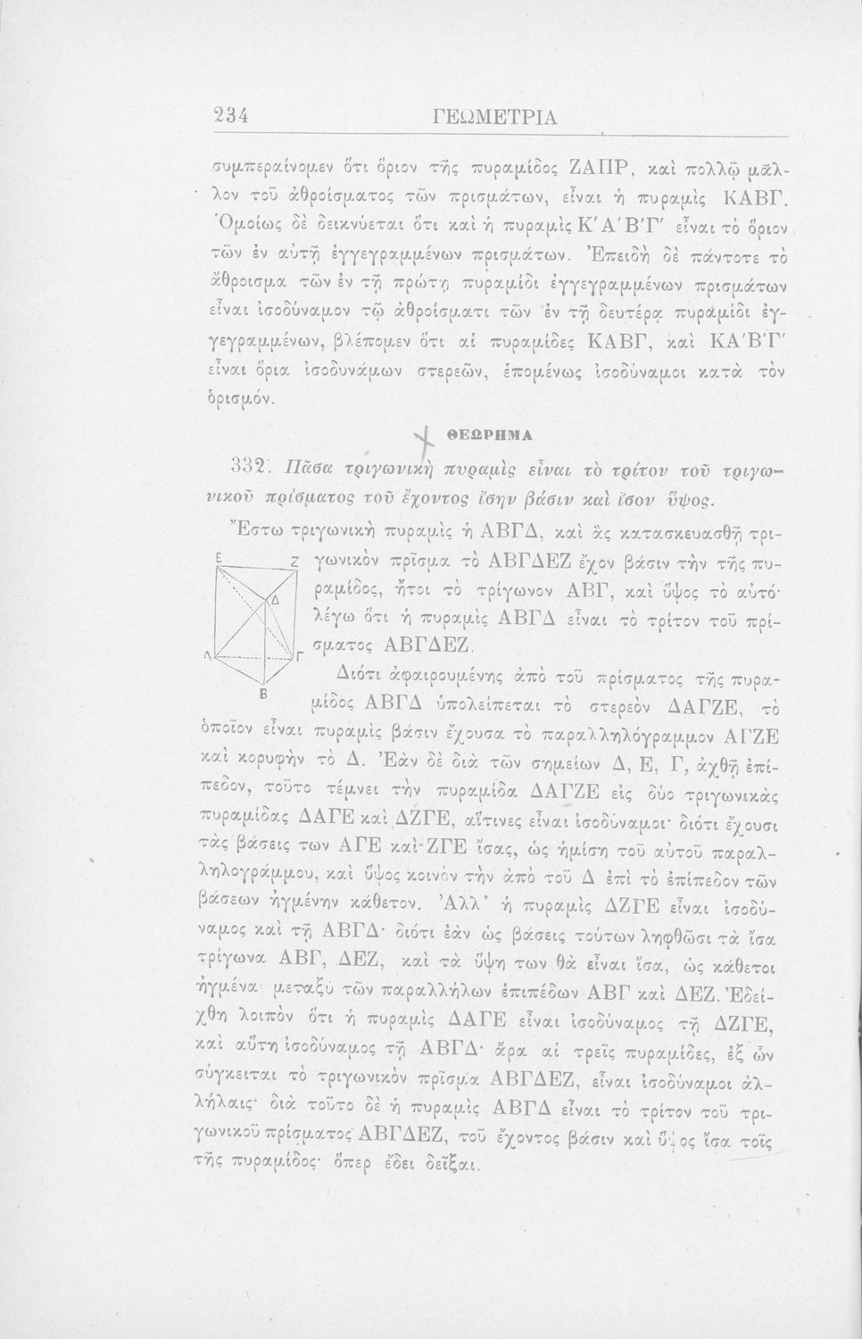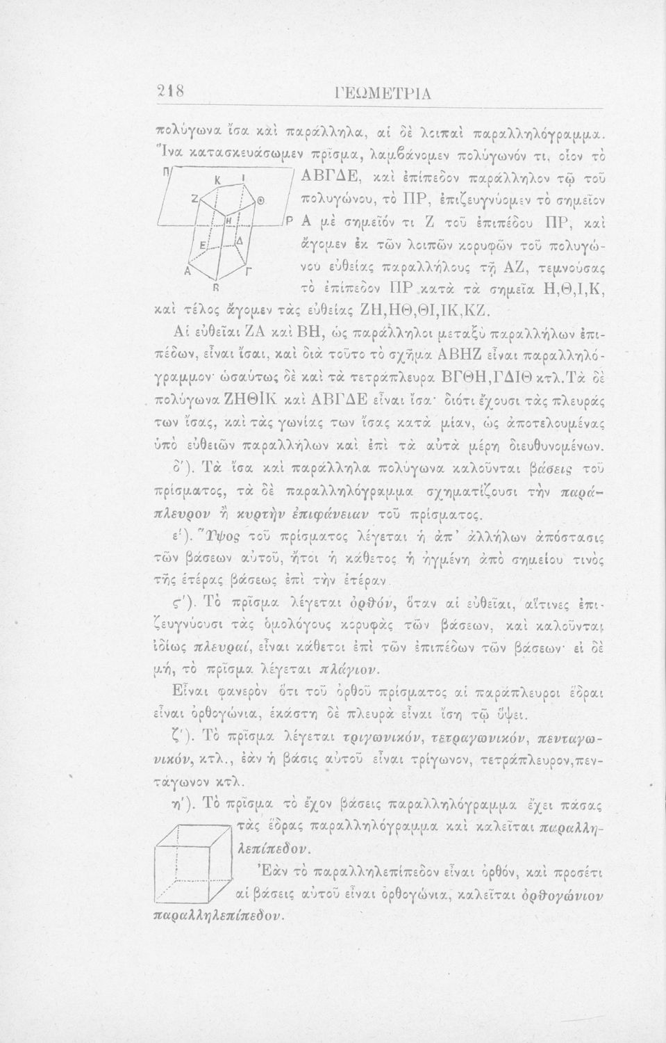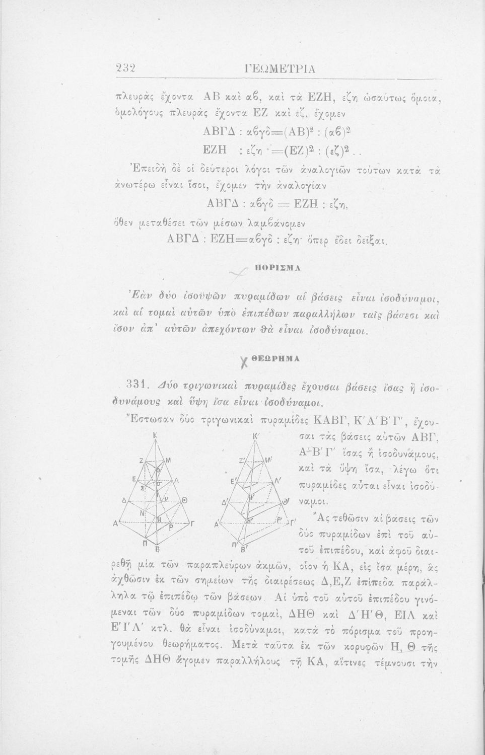 Σχολικό εγχειρίδιο Γεωμετρίας που είναι χωρισμένο σε αξιώματα, θεωρήματα και πορίσματα και εστιάζει στην Επίπεδη Γεωμετρία και τη Στερεομετρία.