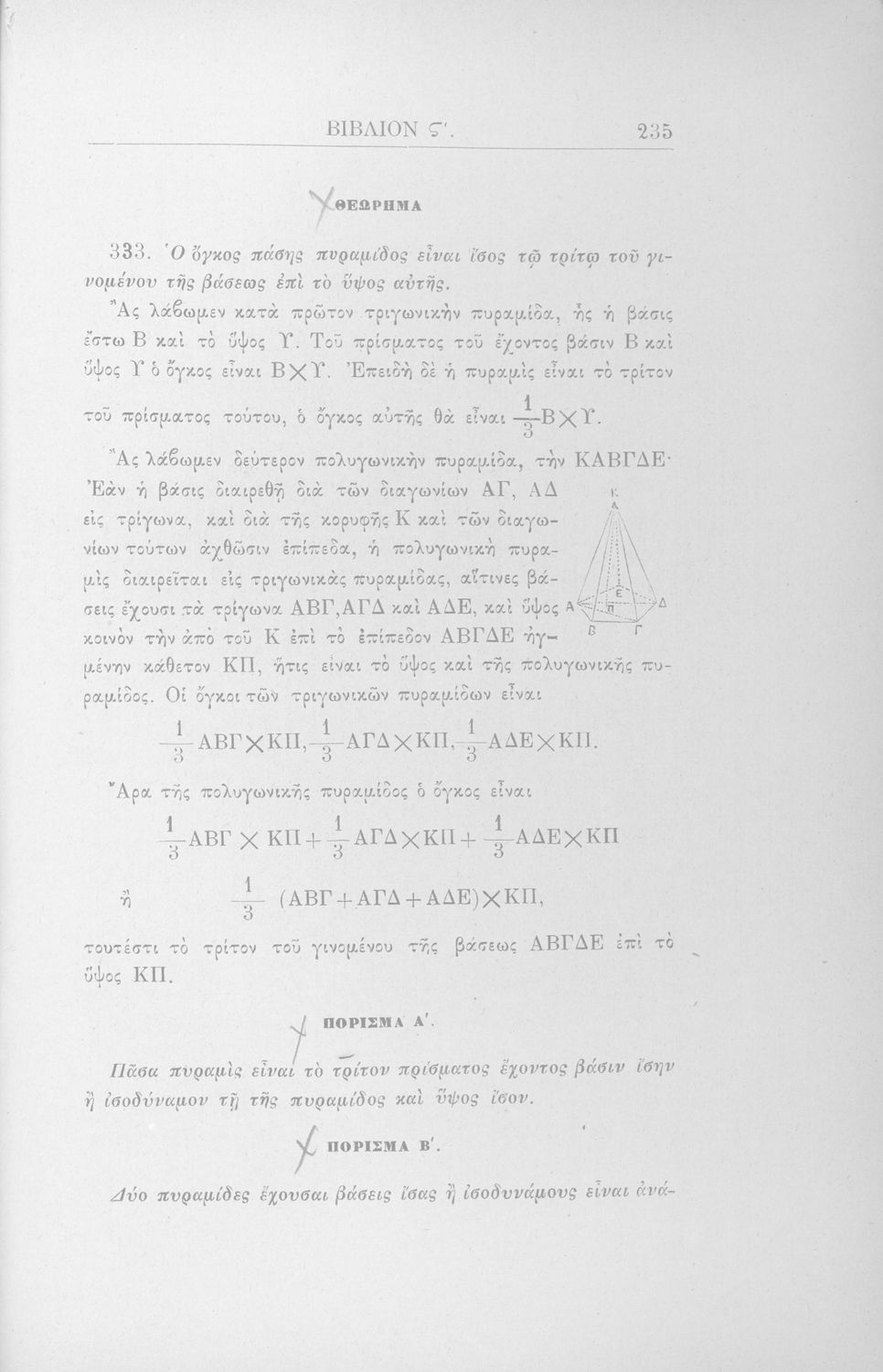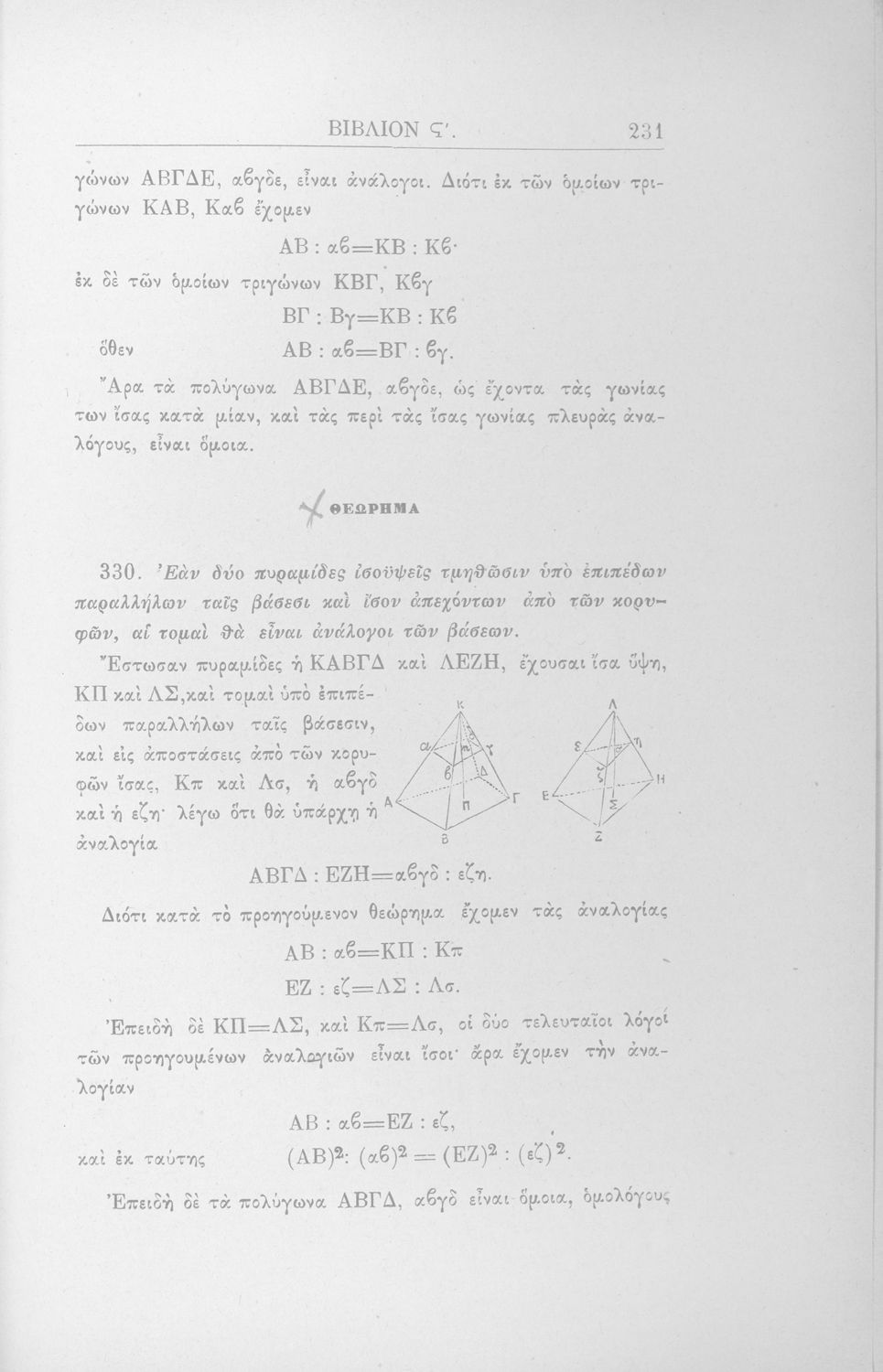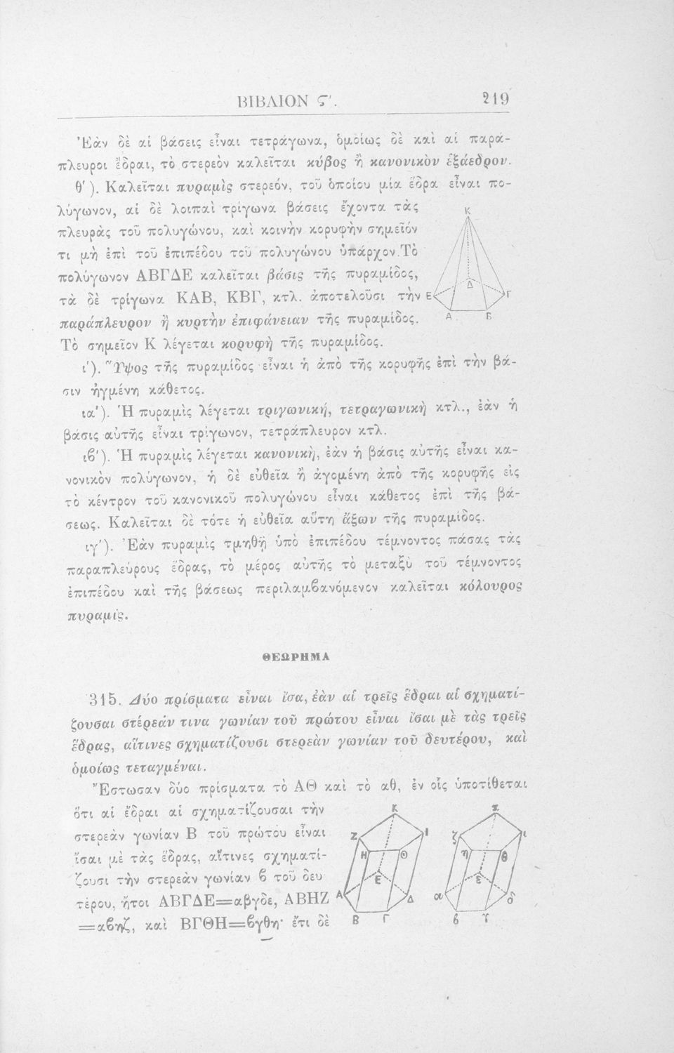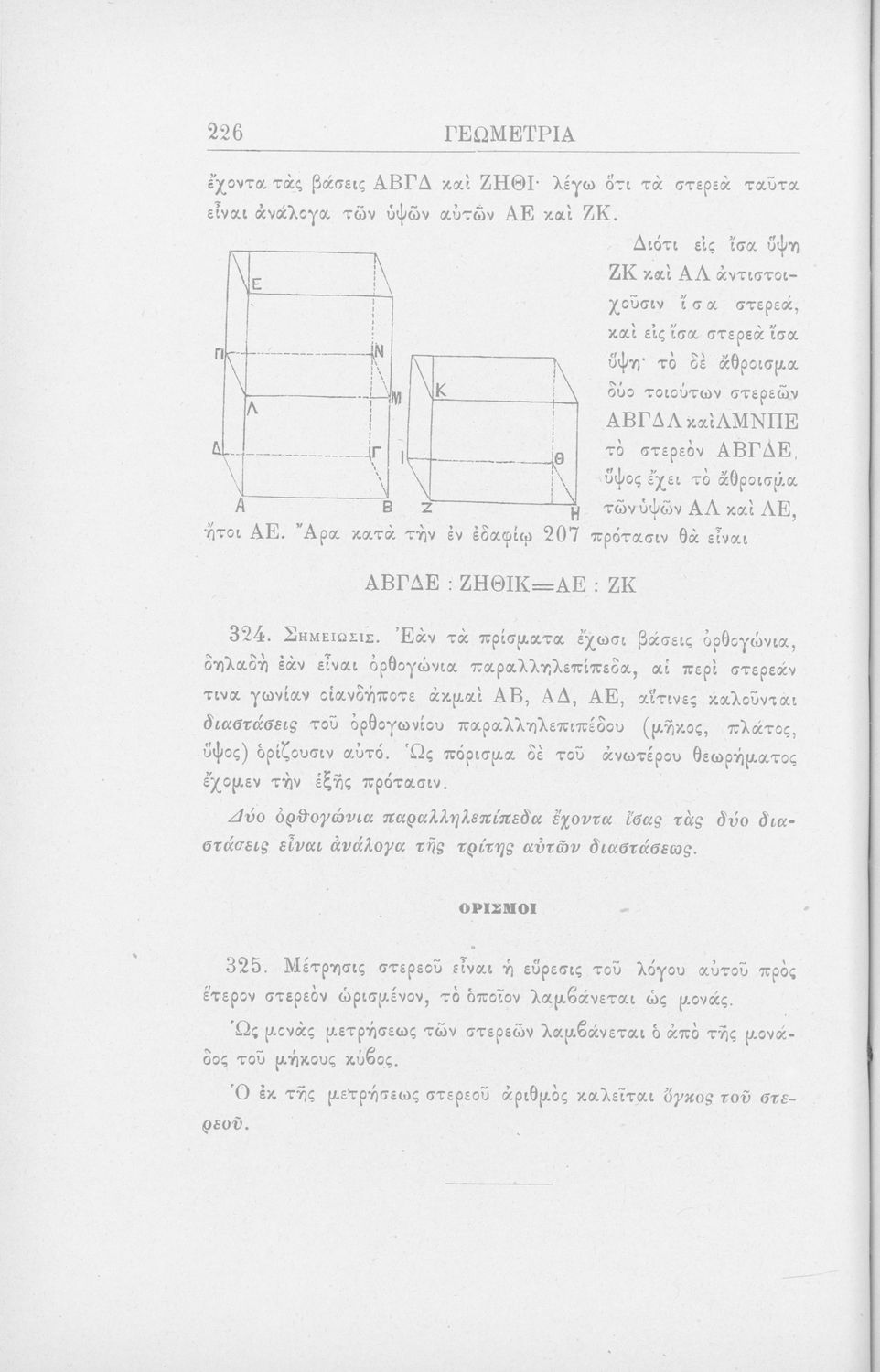 Σχολικό εγχειρίδιο Γεωμετρίας που είναι χωρισμένο σε αξιώματα, θεωρήματα και πορίσματα και εστιάζει στην Επίπεδη Γεωμετρία και τη Στερεομετρία.