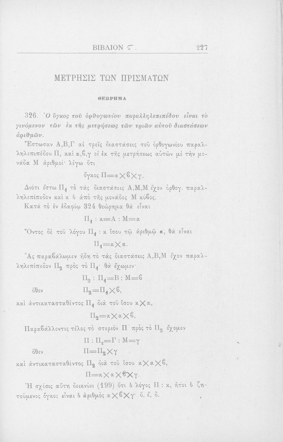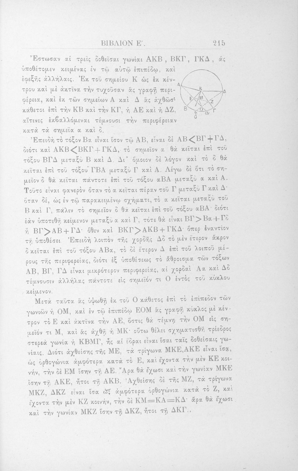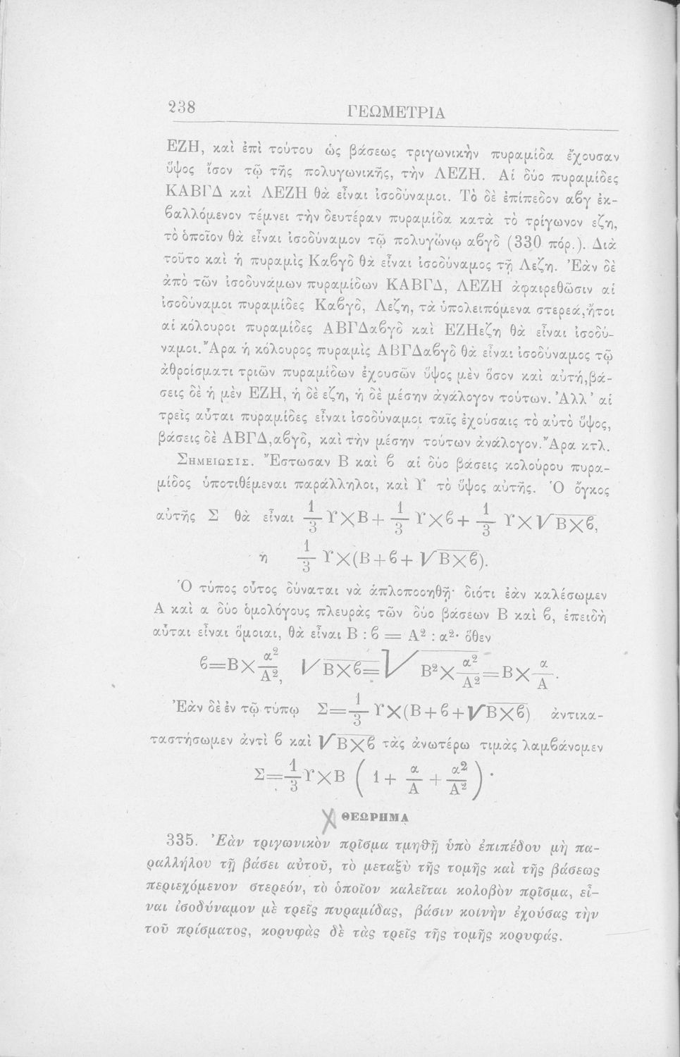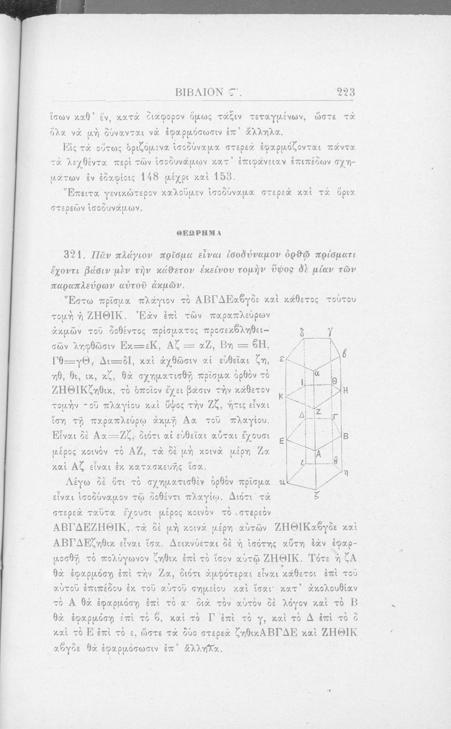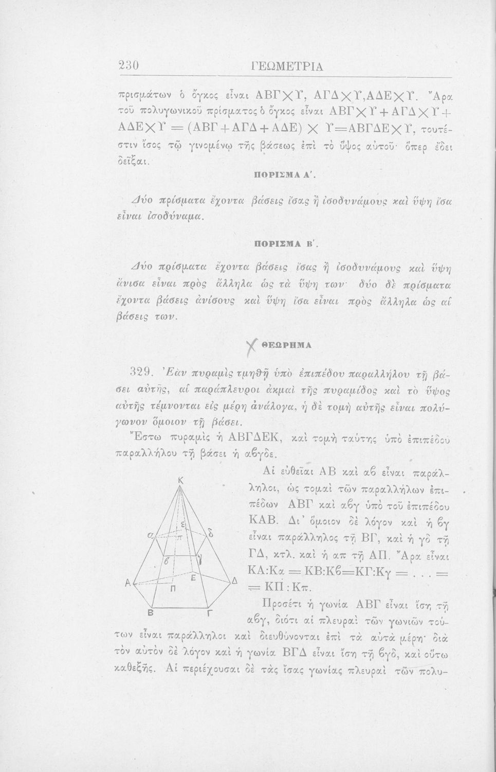 Σχολικό εγχειρίδιο Γεωμετρίας που είναι χωρισμένο σε αξιώματα, θεωρήματα και πορίσματα και εστιάζει στην Επίπεδη Γεωμετρία και τη Στερεομετρία.