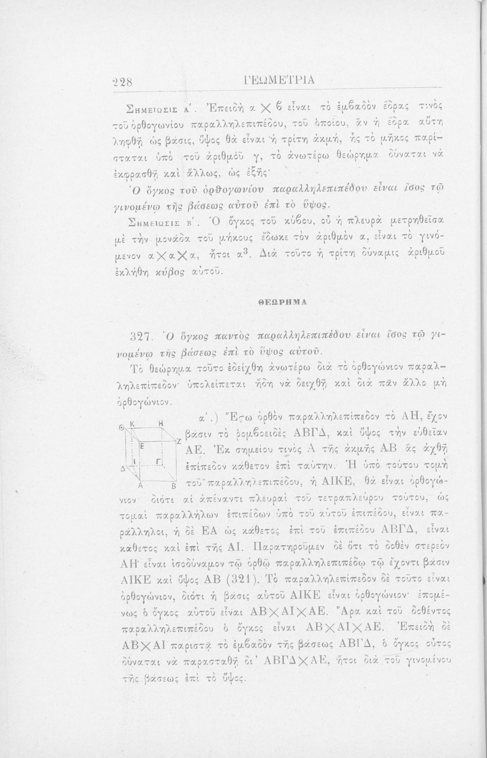 Παρουσίαση περιεχομένου: Σχολικό εγχειρίδιο Γεωμετρίας που είναι χωρισμένο σε αξιώματα, θεωρήματα και πορίσματα και εστιάζει στην Επίπεδη Γεωμετρία και τη Στερεομετρία.