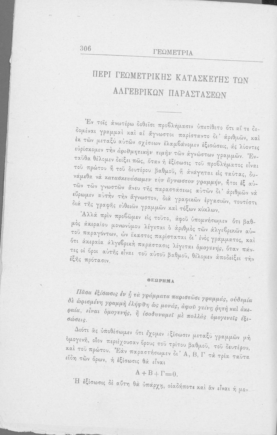 Σχολικό εγχειρίδιο Γεωμετρίας που είναι χωρισμένο σε αξιώματα, θεωρήματα και πορίσματα και εστιάζει στην Επίπεδη Γεωμετρία και τη Στερεομετρία.