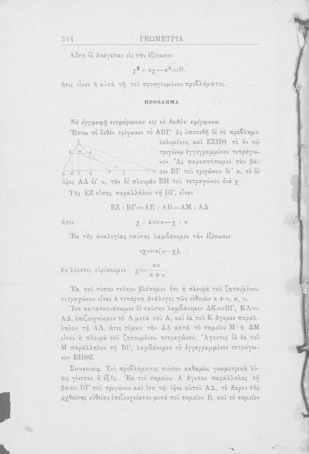 Σχολικό εγχειρίδιο Γεωμετρίας που είναι χωρισμένο σε αξιώματα, θεωρήματα και πορίσματα και εστιάζει στην Επίπεδη Γεωμετρία και τη Στερεομετρία.
