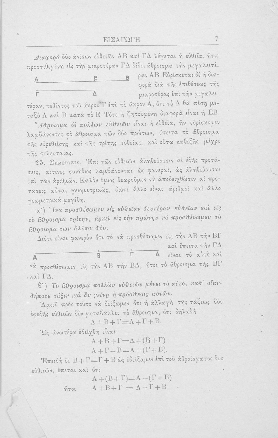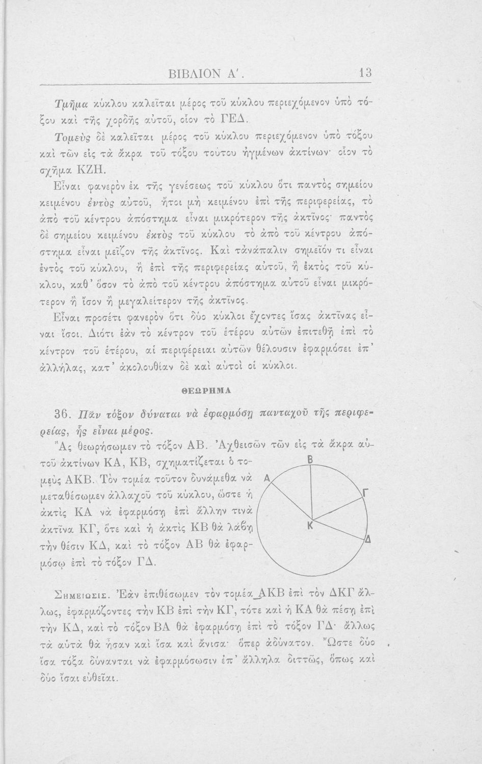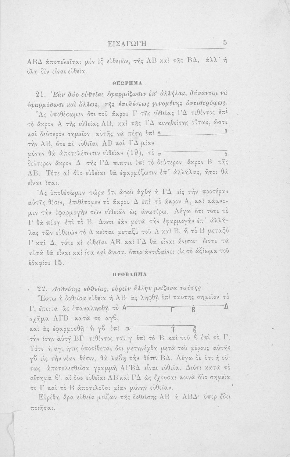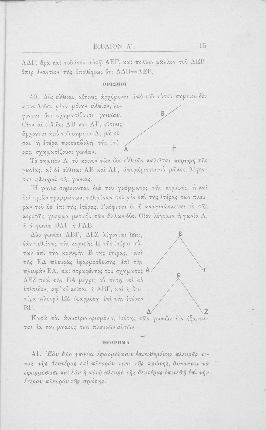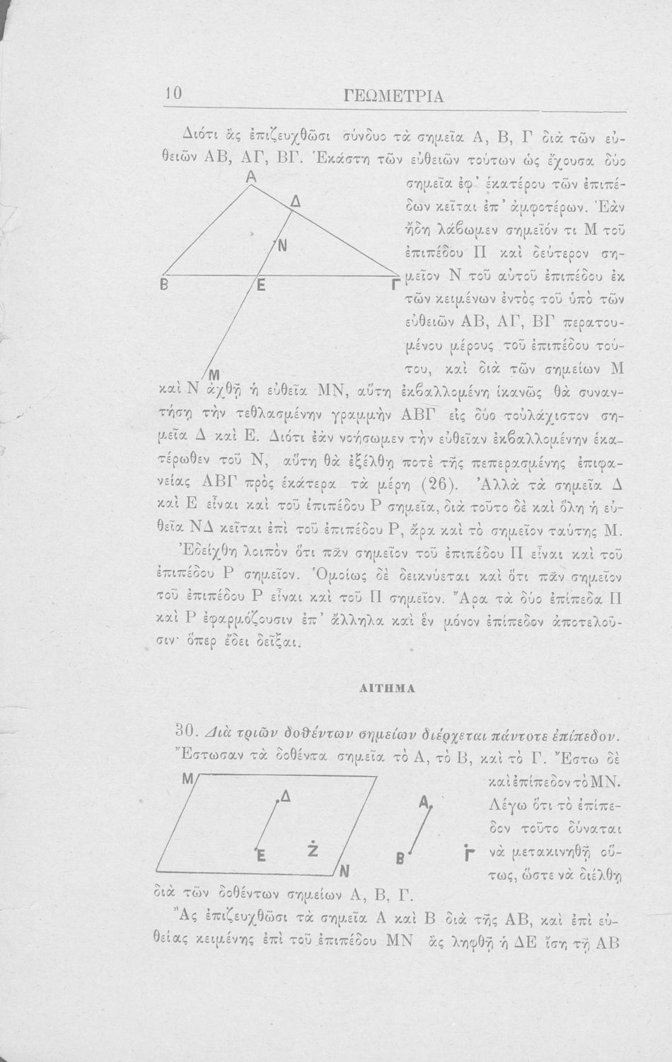 Σχολικό εγχειρίδιο Γεωμετρίας που είναι χωρισμένο σε αξιώματα, θεωρήματα και πορίσματα και εστιάζει στην Επίπεδη Γεωμετρία και τη Στερεομετρία.