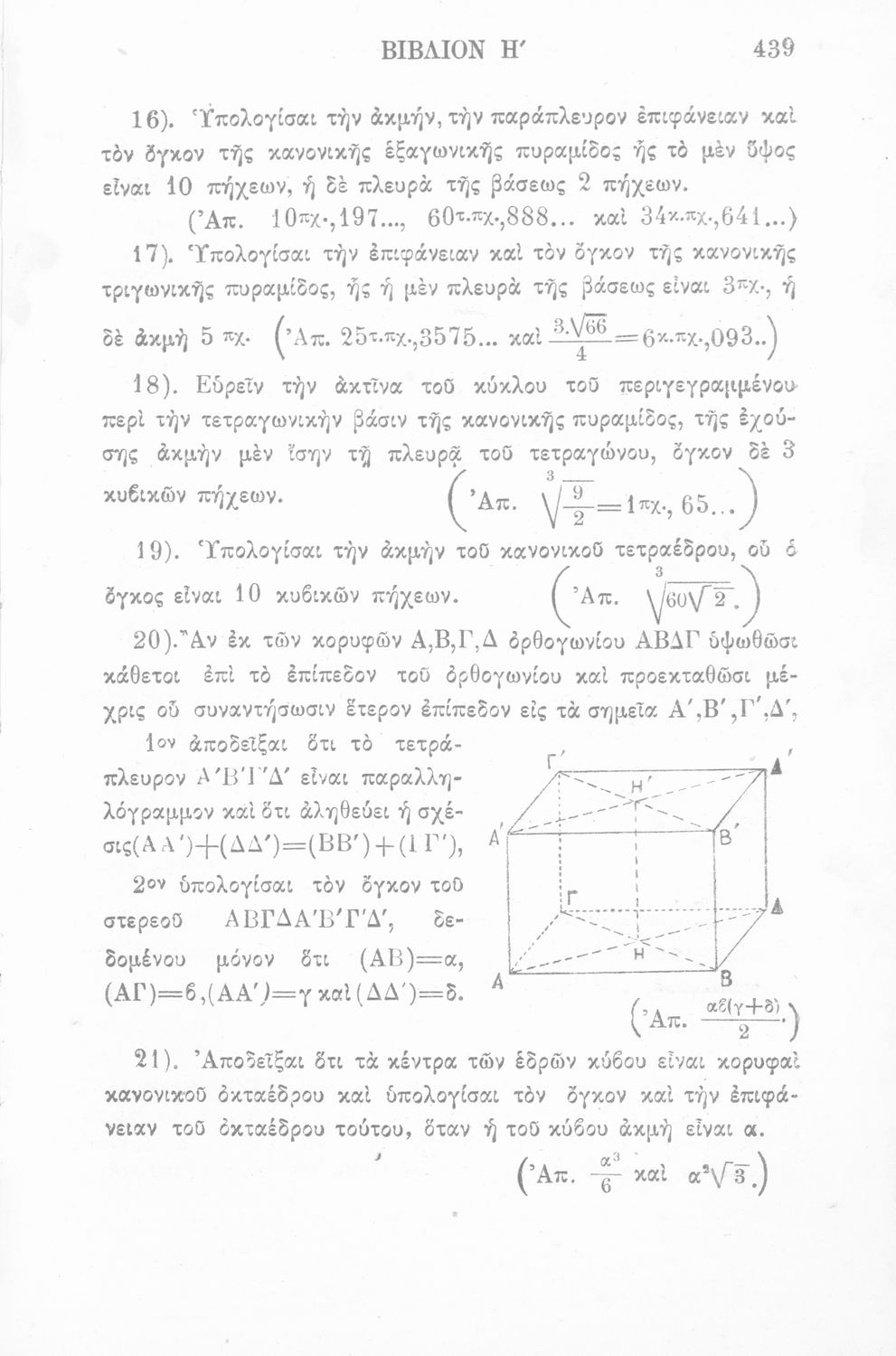 Μαθητικό βοήθημα Γεωμετρίας για τους μαθητές των Γυμνασίων και τους υποψηφίους των Ανωτέρων και Ανωτάτων σχολών του κράτους. Το βιβλίο πραγματεύεται διεξοδικά την Ευκλείδεια Γεωμετρία του χώρου (Στερεομετρία) ...
