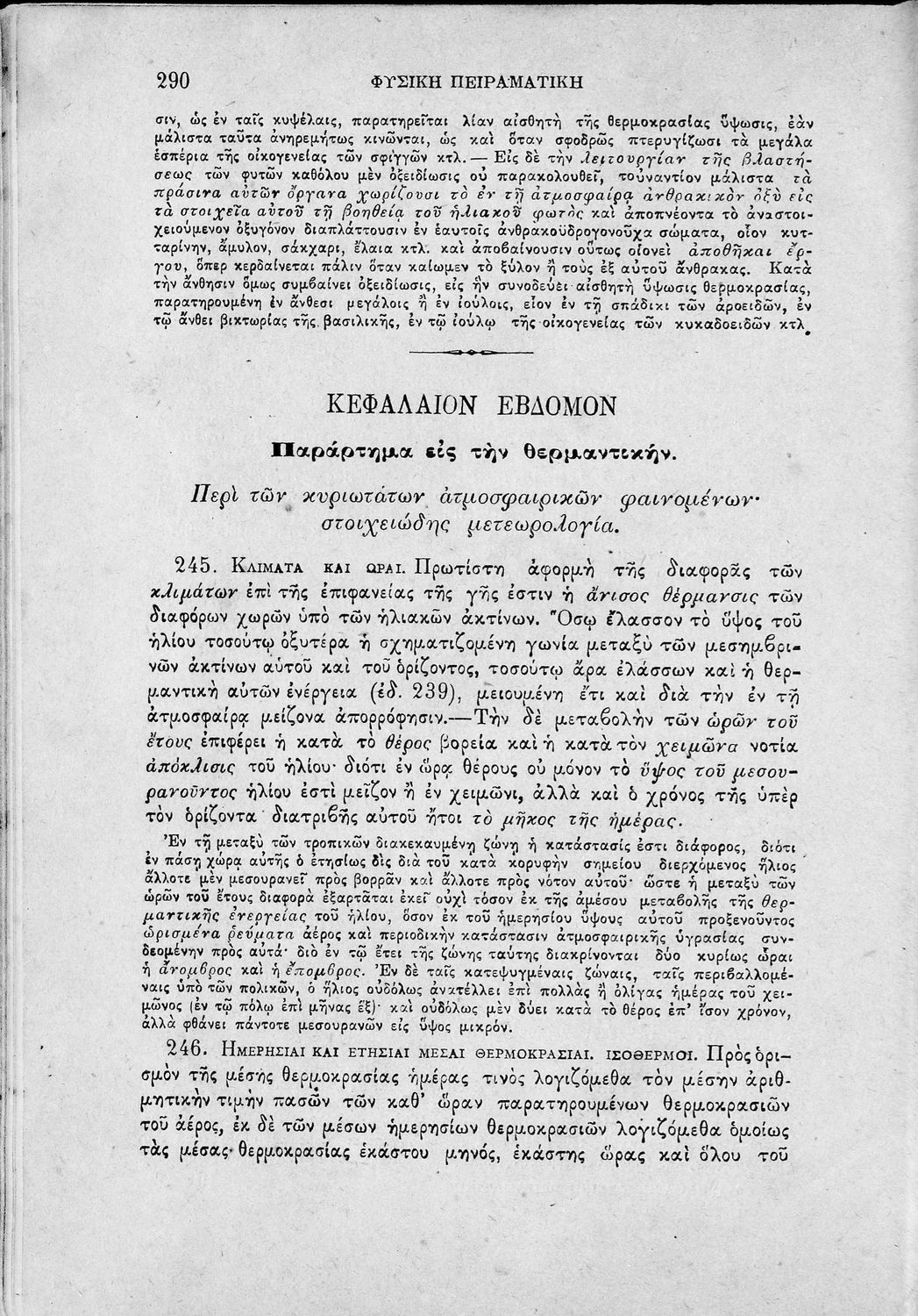 Παιδαγωγικό βοήθημα, το οποίο απευθυνόταν κυρίως στους εκπαιδευτικούς για τη μελέτη της Φυσικής επιστήμης και τη διευκόλυνση της διδακτικής πρακτικής. Περιέχει πληροφορίες σχετικές με τις ιδιότητες των σωμάτων, τη μηχανική, την ακουστική, την οπτική, την ηλεκτρική και τη μαγνητική, καθώς και τα στοιχεία, τις δυνάμεις, τα φαινόμενα, τα κύματα κ.α. Επίσης περιέχει σχήματα και σχεδιαγράμματα για την διευκόλυνση της κατανόησης.