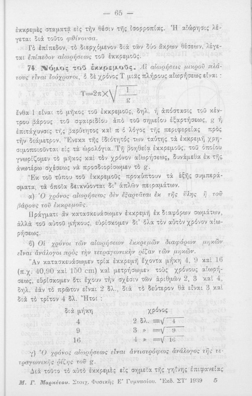 Σχολικό εγχειρίδιο της Ε΄ Τάξης των Γυμνασίων Παλαιού Τύπου για το μάθημα της Φυσικής. Παρέχει βασικές γνώσεις της Φυσικής επιστήμης. Αναλύει τα φαινόμενα της μηχανικής, της βαρύτητας, της υδροστατικής της ...