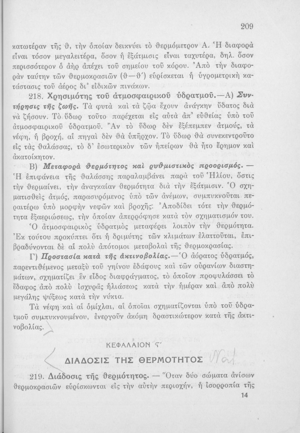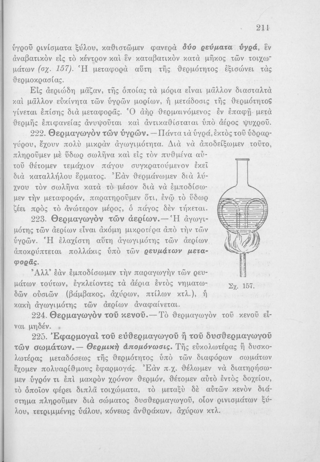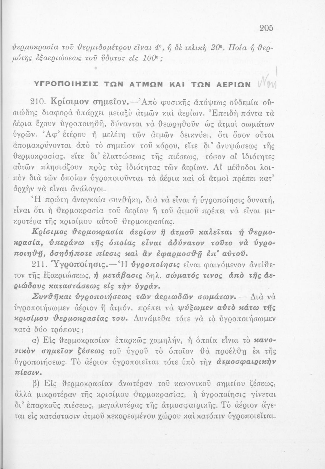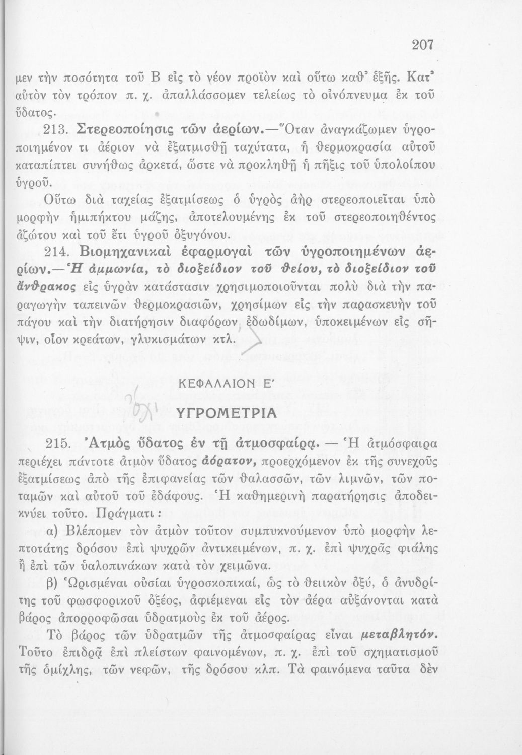 Σχολικό εγχειρίδιο της Ε΄ Τάξης των Γυμνασίων Παλαιού Τύπου για το μάθημα της Φυσικής. Παρέχει βασικές γνώσεις της Φυσικής επιστήμης. Αναλύει τα φαινόμενα της μηχανικής, της βαρύτητας, της υδροστατικής της αεροστατικής, της θερμότητας και τέλος της μετεωρολογίας. Αναφέρεται στην πρακτική εφαρμογή της φυσικής στην καθημερινότητά. Επίσης, περιλαμβάνει πολλά από τα όργανα, που χρησιμοποιούνται στη φυσική. Περιέχει εικόνες και σχεδιαγράμματα τα οποία βοηθούν τη διδασκαλία.