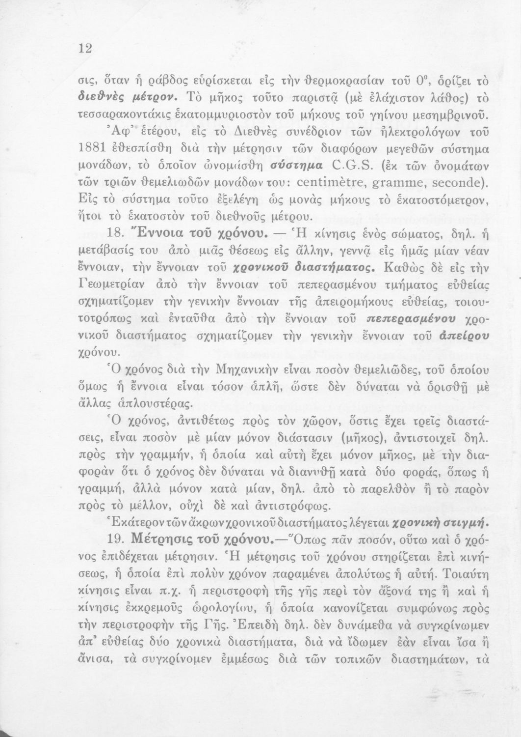 Σχολικό εγχειρίδιο της Ε΄ Τάξης των Γυμνασίων Παλαιού Τύπου για το μάθημα της Φυσικής. Παρέχει βασικές γνώσεις της Φυσικής επιστήμης. Αναλύει τα φαινόμενα της μηχανικής, της βαρύτητας, της υδροστατικής της αεροστατικής, της θερμότητας και τέλος της μετεωρολογίας. Αναφέρεται στην πρακτική εφαρμογή της φυσικής στην καθημερινότητά. Επίσης, περιλαμβάνει πολλά από τα όργανα, που χρησιμοποιούνται στη φυσική. Περιέχει εικόνες και σχεδιαγράμματα τα οποία βοηθούν τη διδασκαλία.