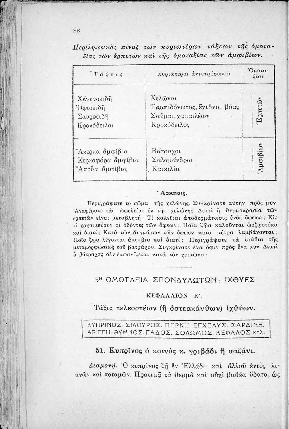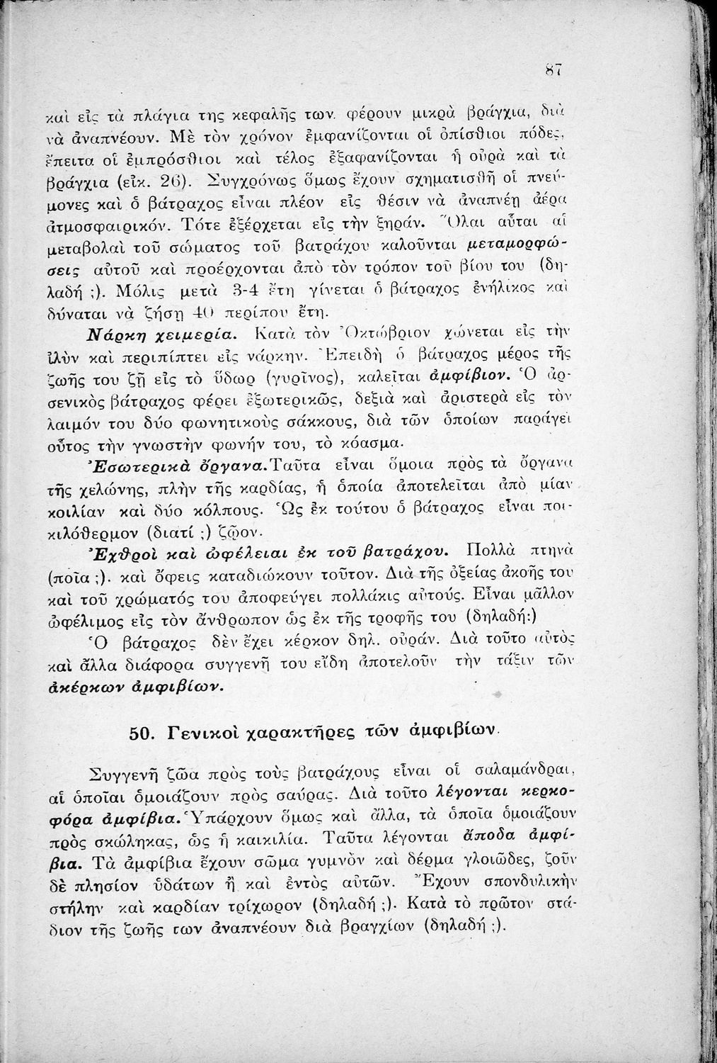 Σχολικό εγχειρίδιο για τη Β΄ Γυμνασίου των Εξατάξιων Εμπορικών Σχολών για το μάθημα της Φυσικής Ιστορίας. Αναφέρει τα χαρακτηριστικά γνωρίσματα και τις ιδιότητες των φυτών και μετά αναφέρει στοιχεία γεωλογίας,