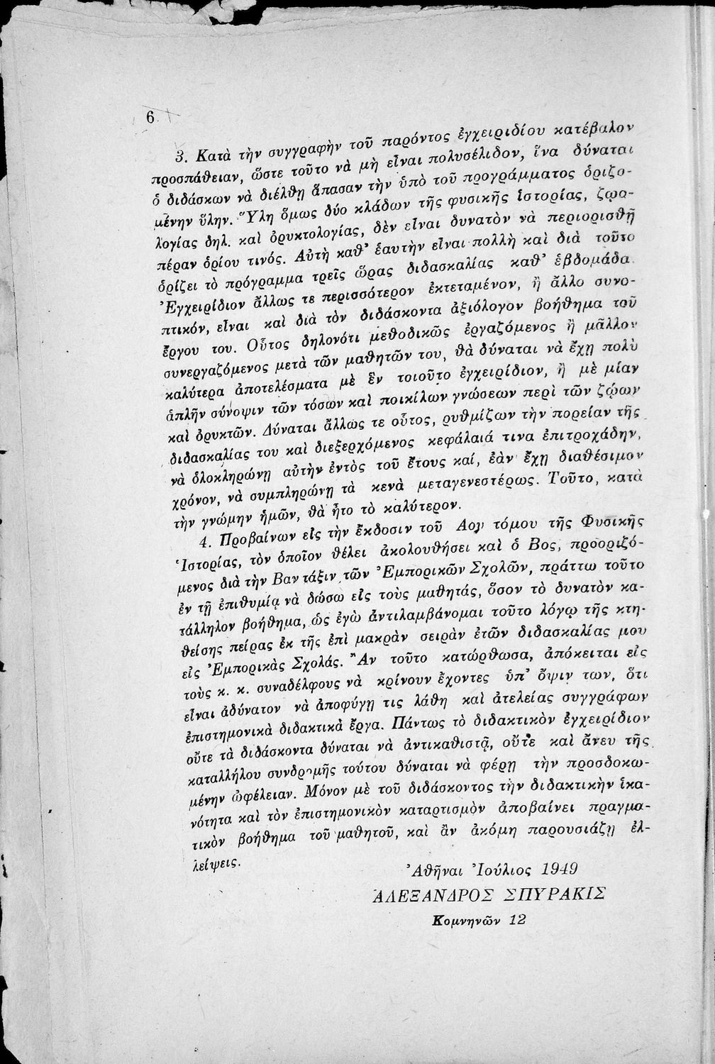 Σχολικό εγχειρίδιο για τη Β΄ Γυμνασίου των Εξατάξιων Εμπορικών Σχολών για το μάθημα της Φυσικής Ιστορίας. Αναφέρει τα χαρακτηριστικά γνωρίσματα και τις ιδιότητες των φυτών και μετά αναφέρει στοιχεία γεωλογίας,